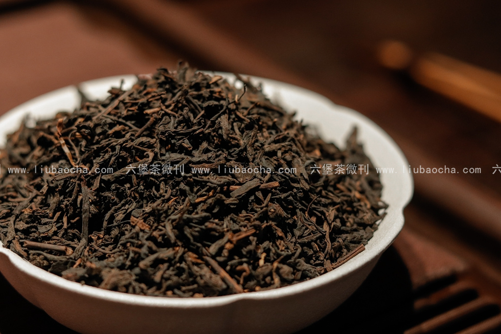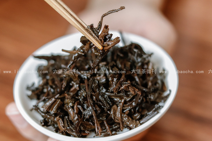 干茶条索紧结、粗壮、色泽黑褐油亮,非常干净干爽。经过漫长岁月的陈化,如今散发出沉稳的木香和槟榔香,香气很纯正。