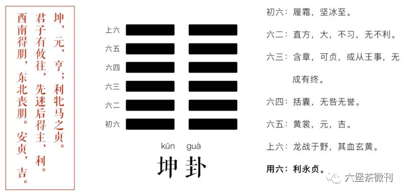 有一种说法认为,“六六大顺”源自《易经·坤卦》,因为坤卦的六爻都是阴爻(六),即由六个「六」组成。“坤卦”为至柔至顺之卦,因以柔顺之德而事阳刚,故无往不利,有“顺利”之意,所以才有「六六大顺」之说。