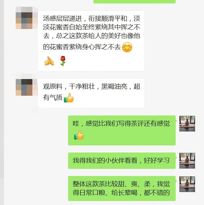 前几泡,茶汤入口爽、滑、顺;木香、清爽槟榔香中偶尔萦绕着淡淡的花蜜香,茶汤盈润鲜活,富有层次感;