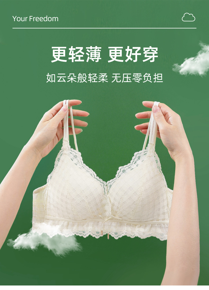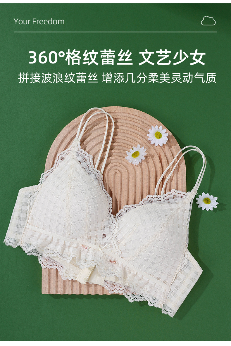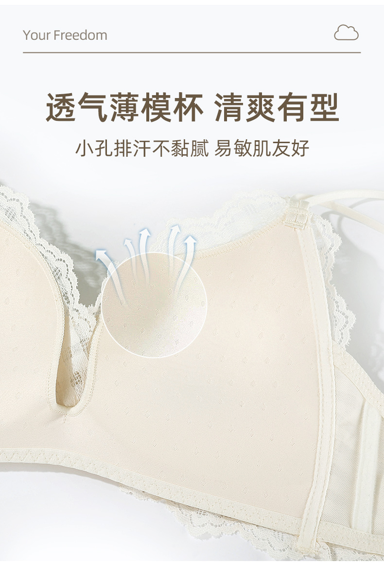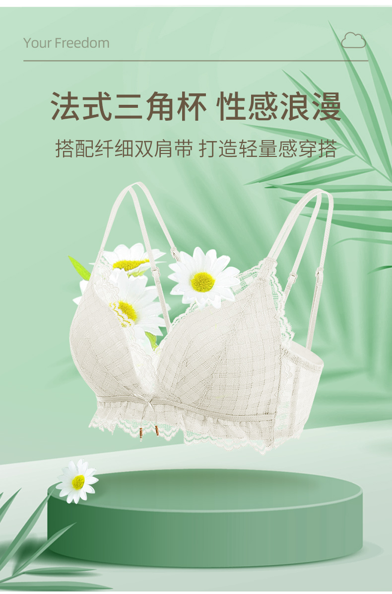雅黛丽内衣夏季薄款少女风美背新款2021文胸无钢圈蕾丝性感女胸罩