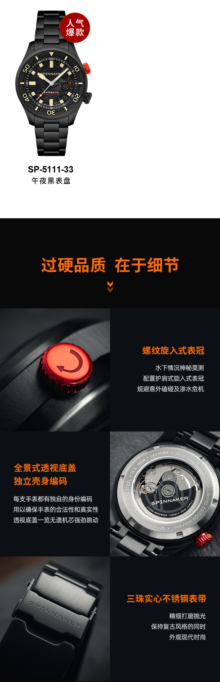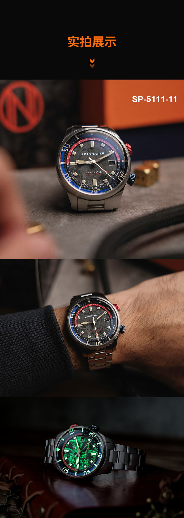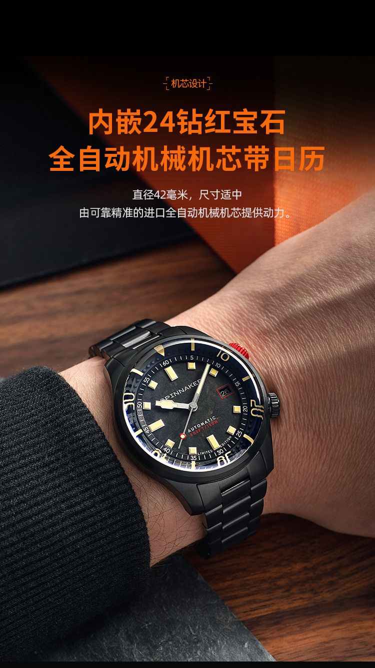 新款限量版SPINNAKER三角帆夜光锻造碳纤维盘面自动机械手表5111