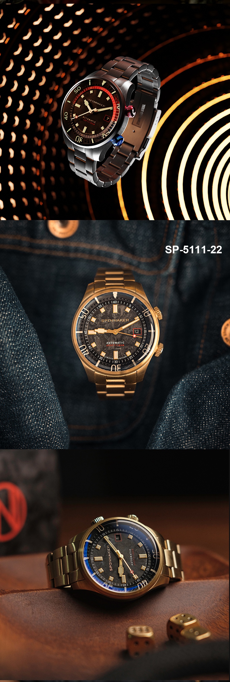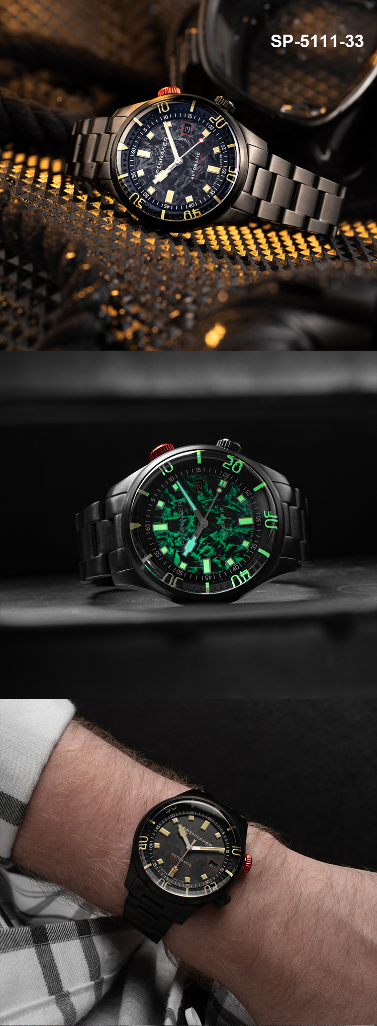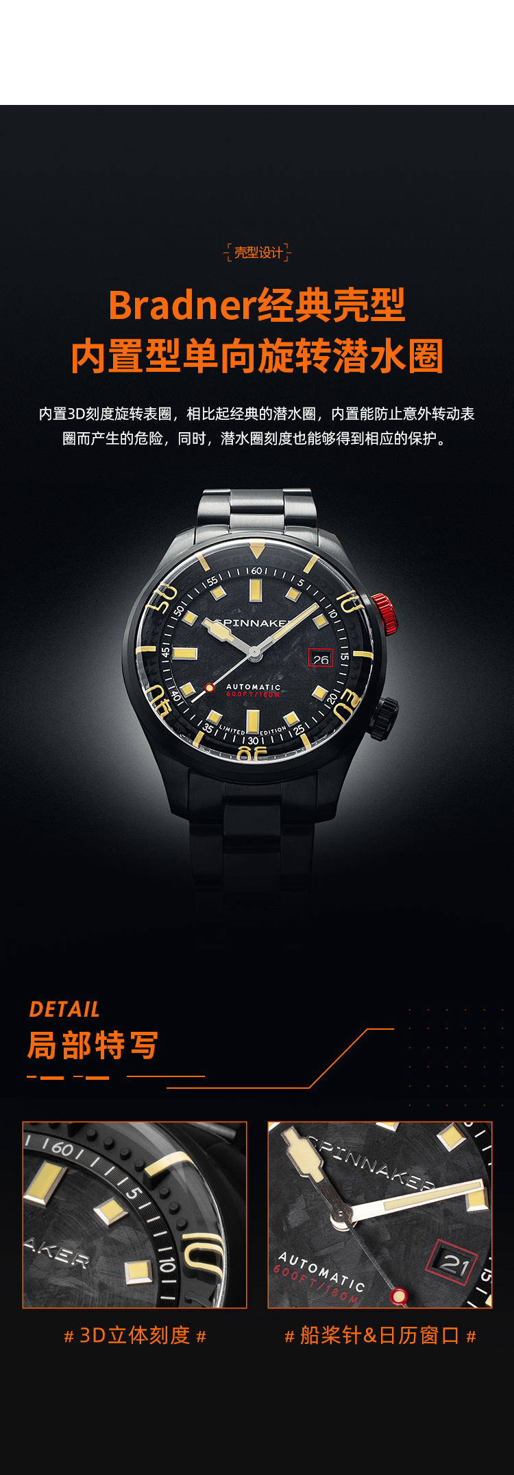 新款限量版SPINNAKER三角帆夜光锻造碳纤维盘面自动机械手表5111