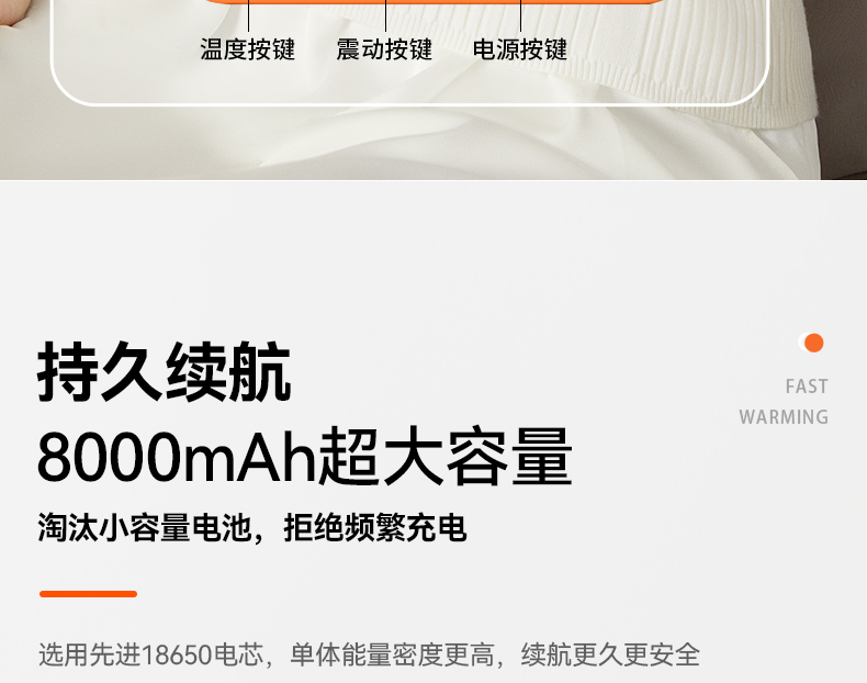 使用很简单,就三个按键,分别是电源、按摩、加热的控制,也可以扫一扫这个二维码,有具体的使用视频。