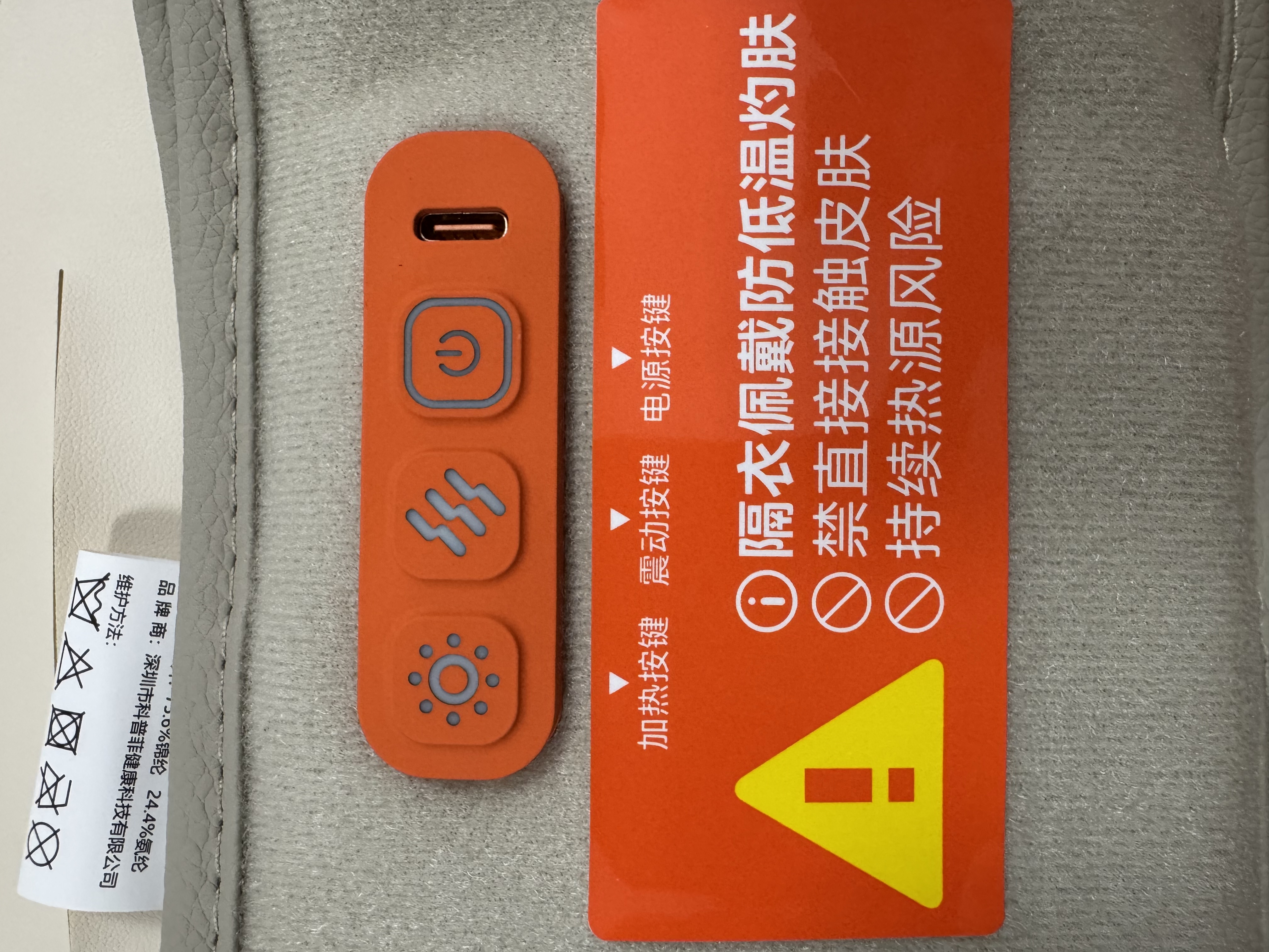 打开包装,又惊又喜,刚开始我担心腰带能按摩能加热,会不会太厚太笨重,实物让我满意,真的是薄薄一片,就是操作面板这里稍微厚一些。