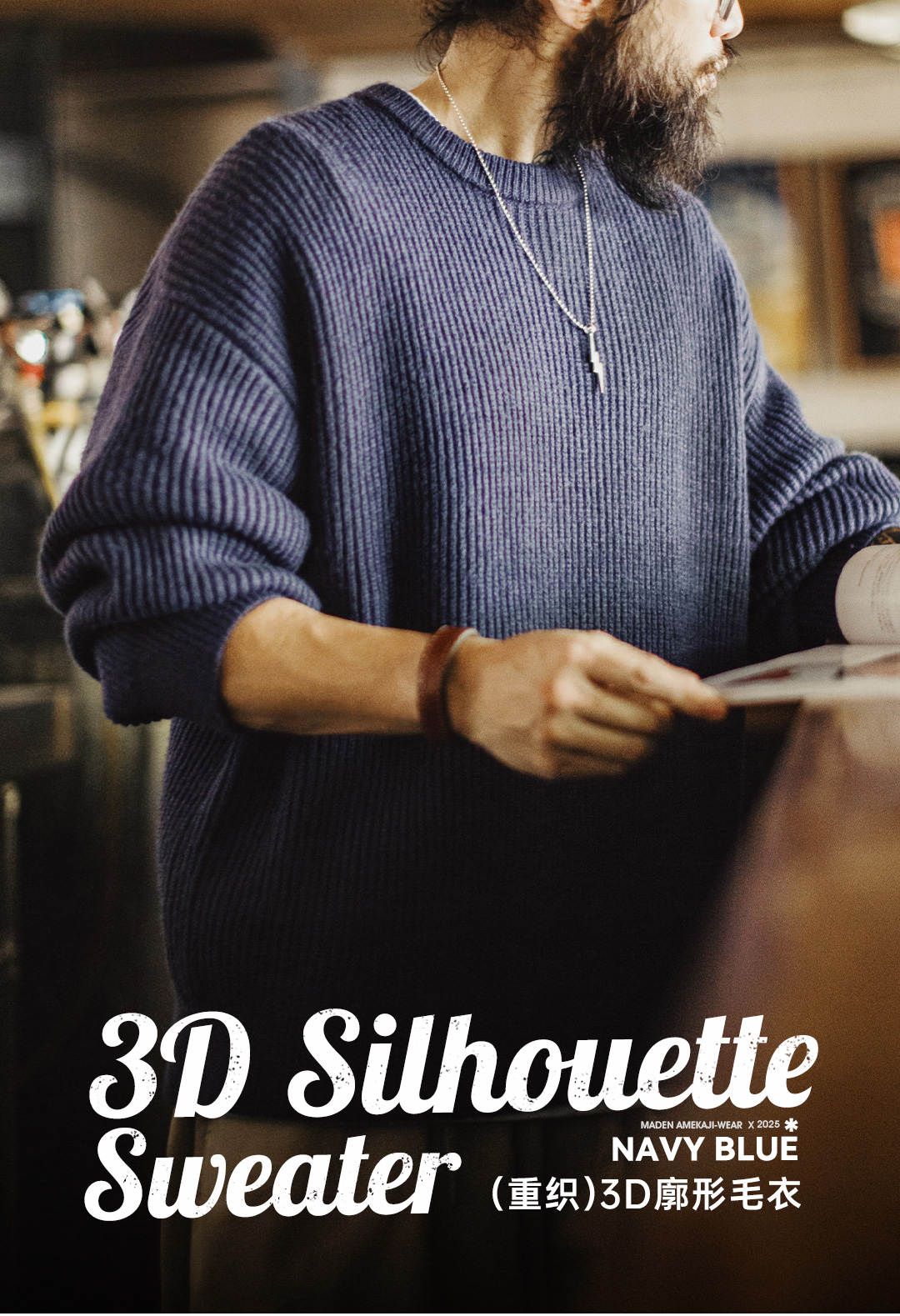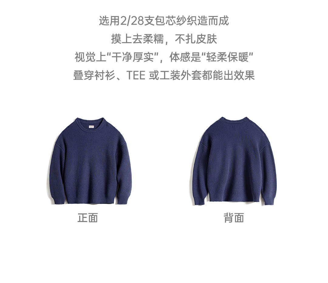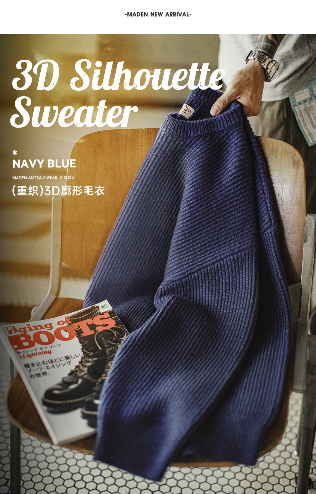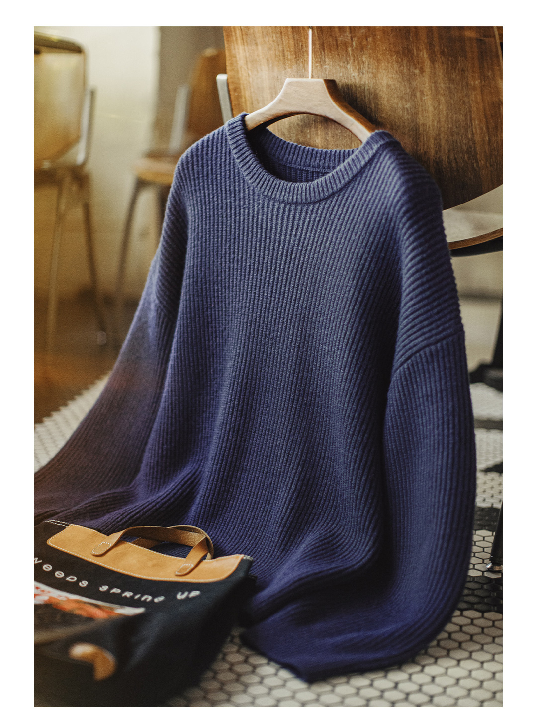 马登工装美式蓝色坑条毛衣圆领套头垂感外穿条纹上衣针织外套男冬