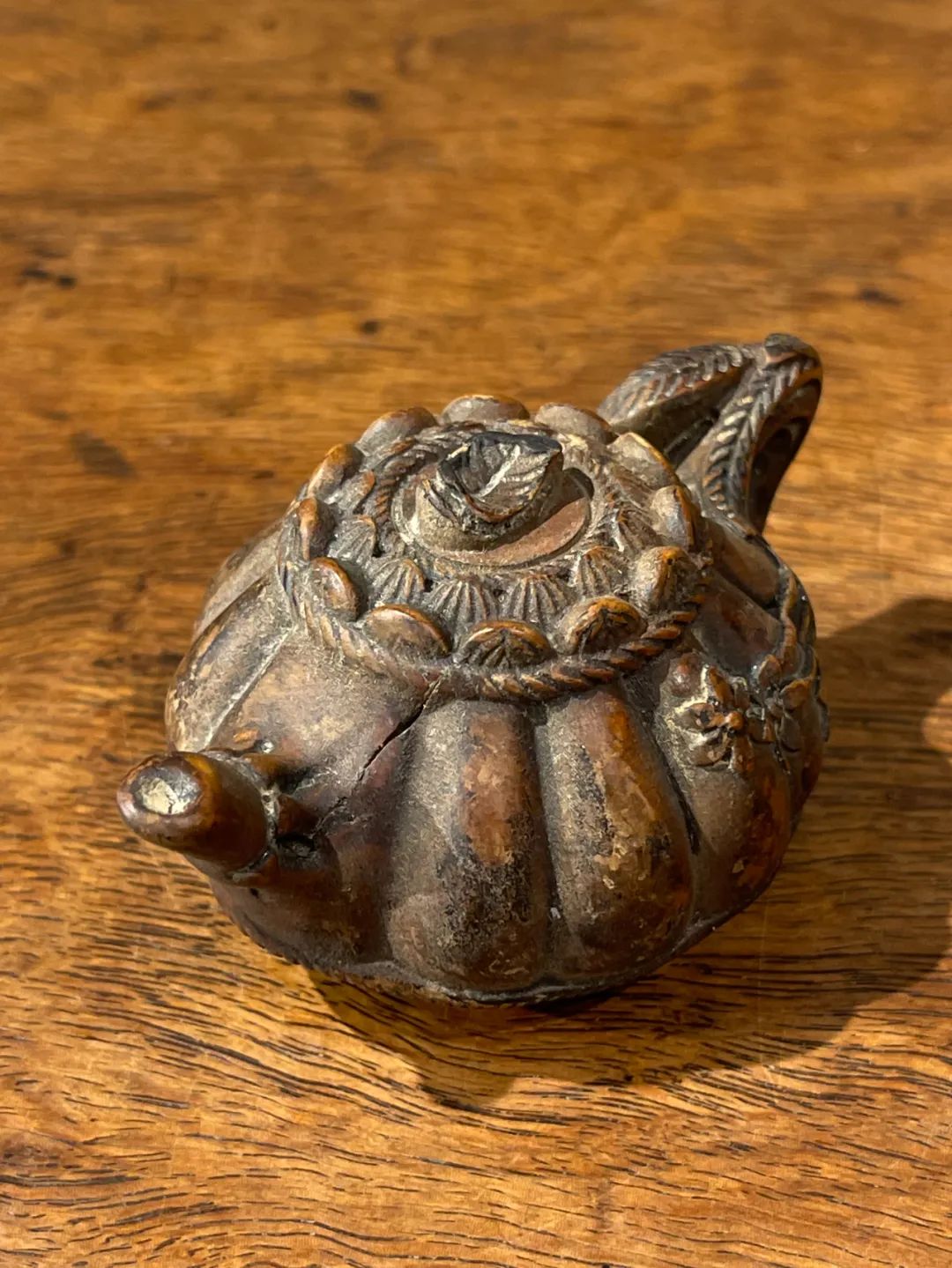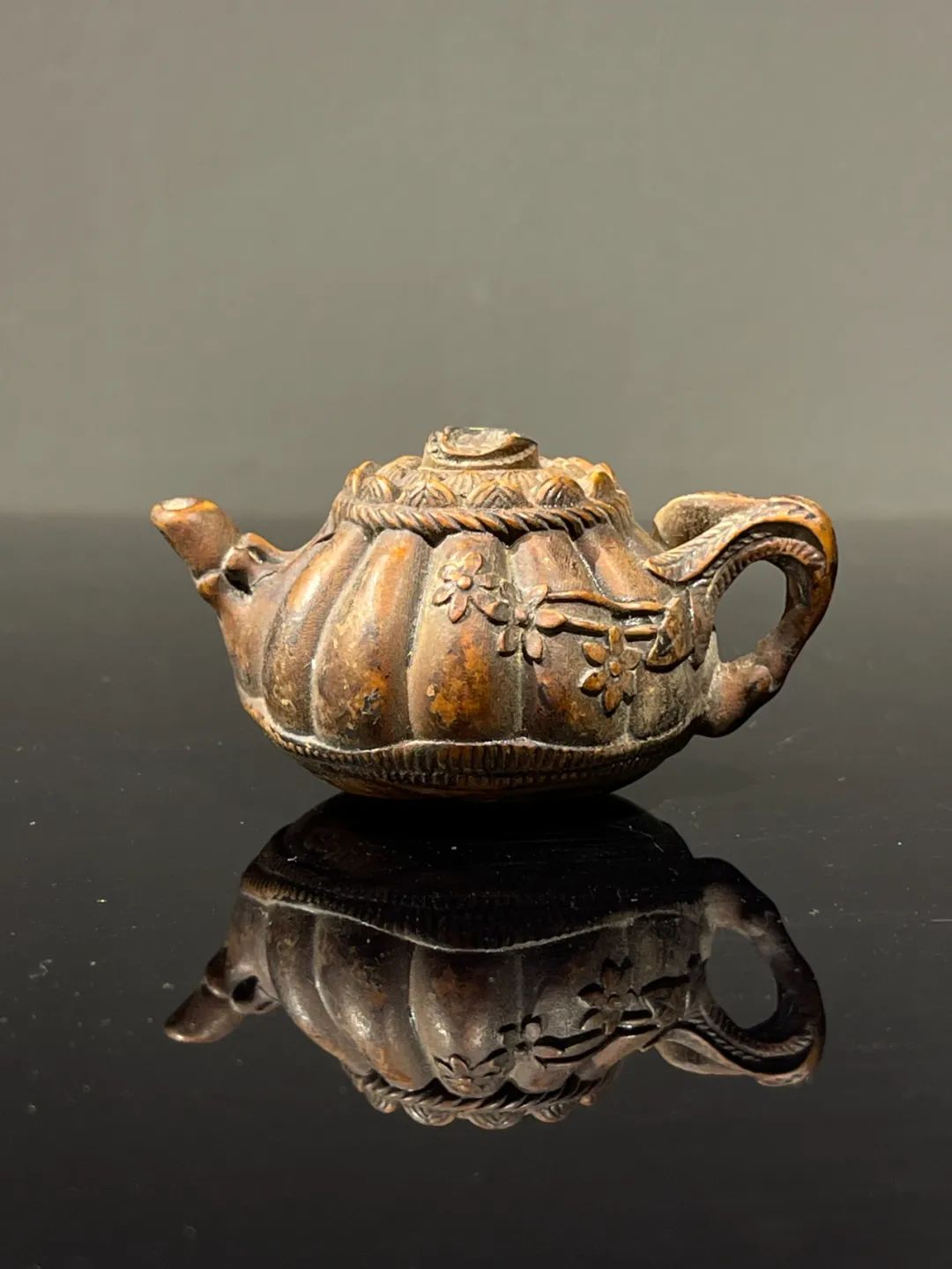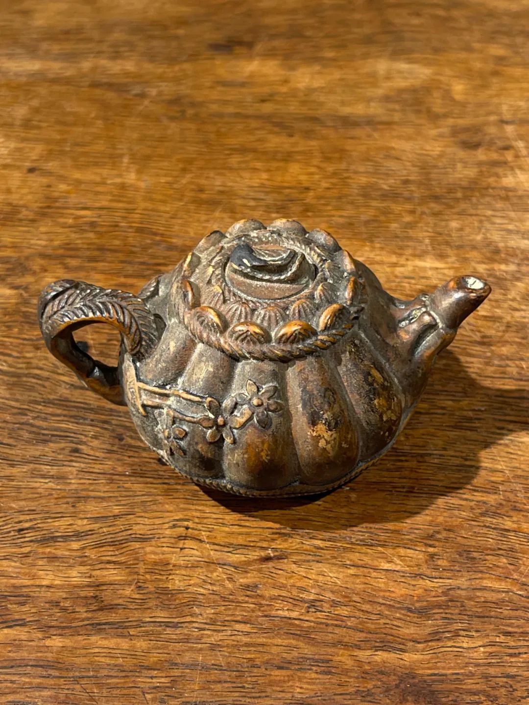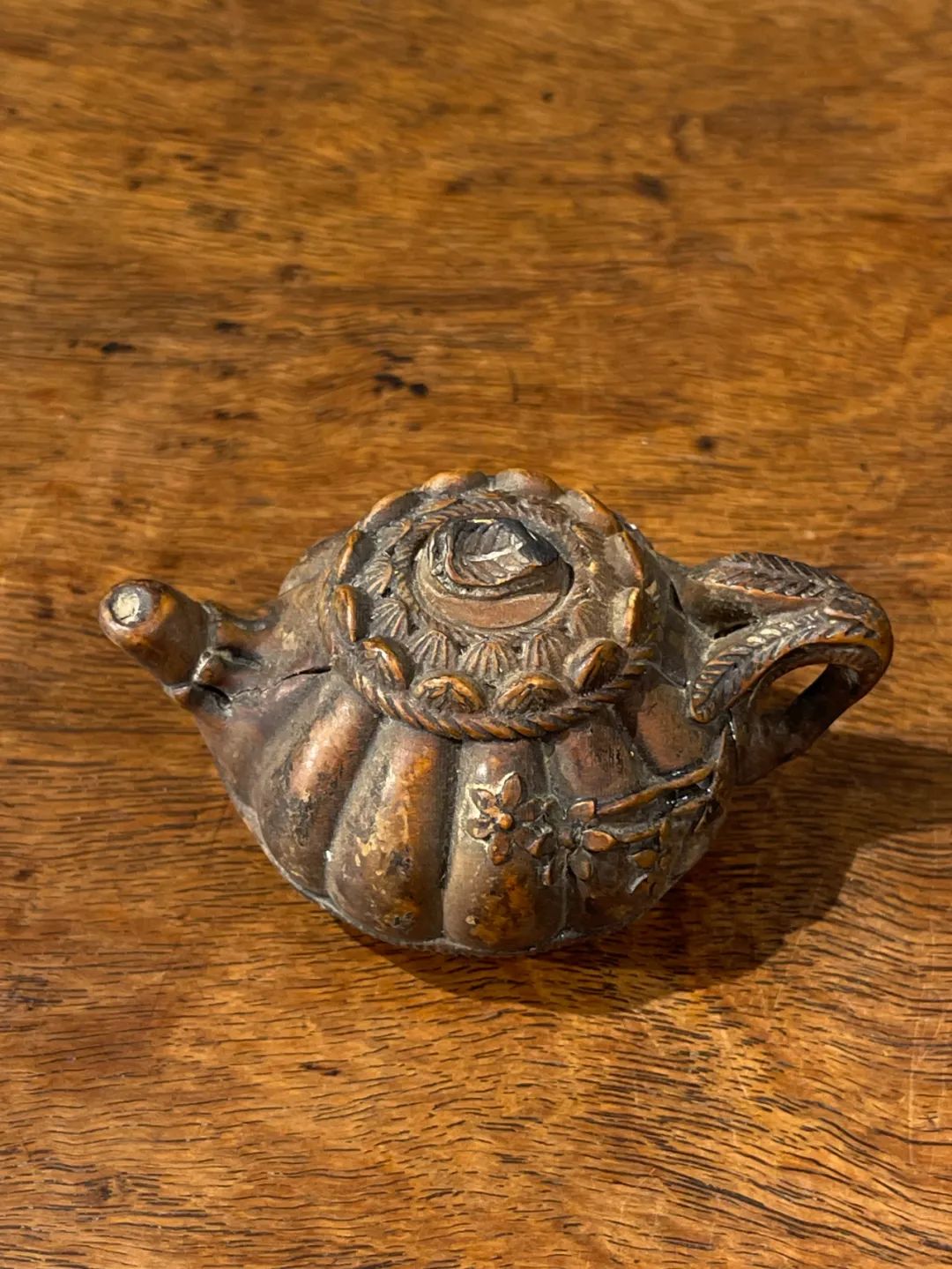 黄杨木雕梅花纹茶壶形摆件