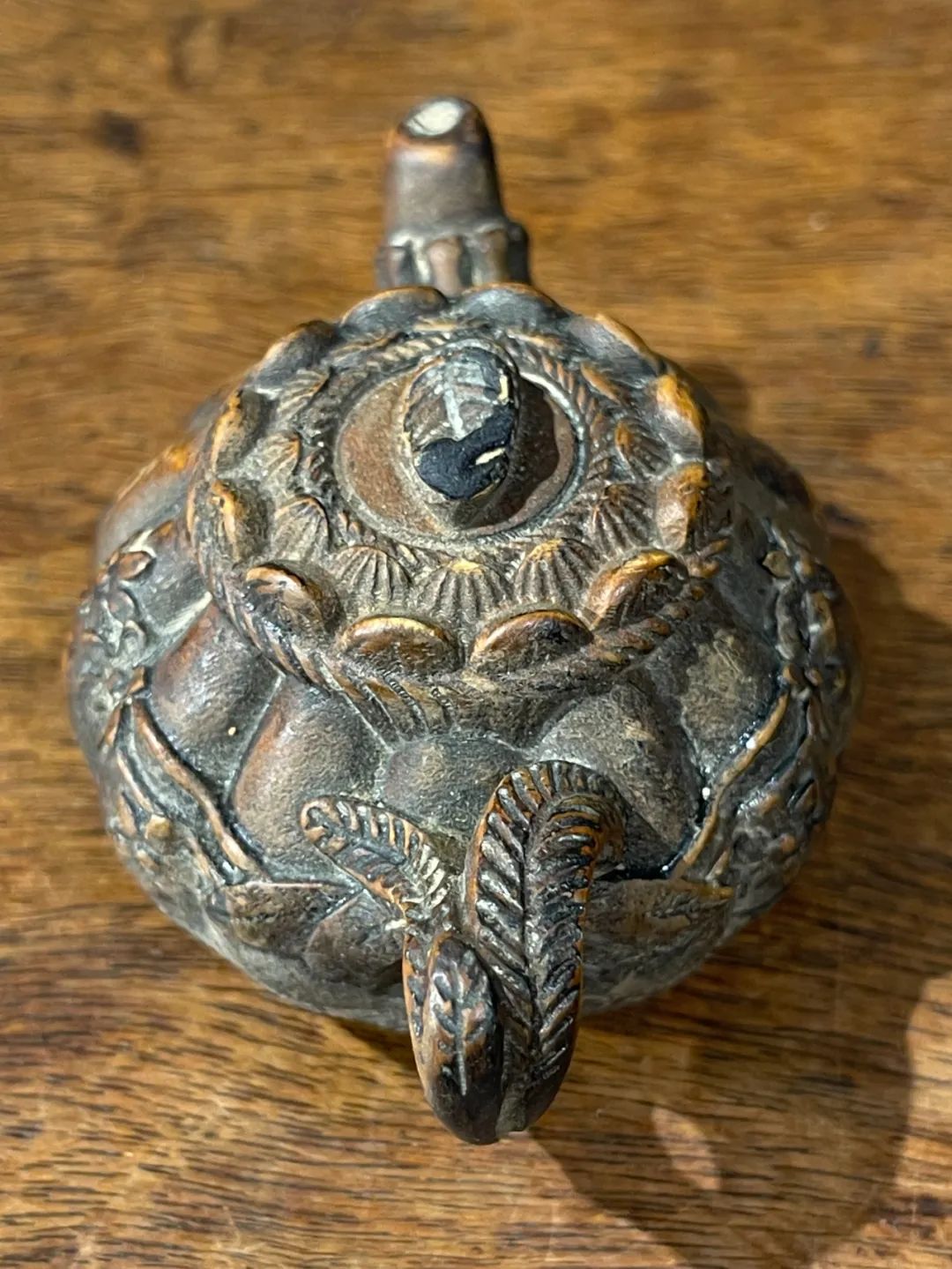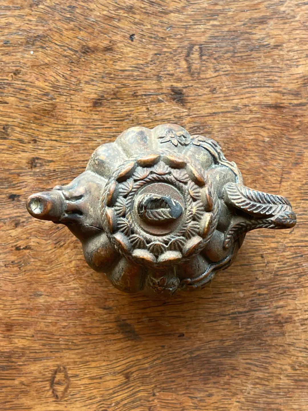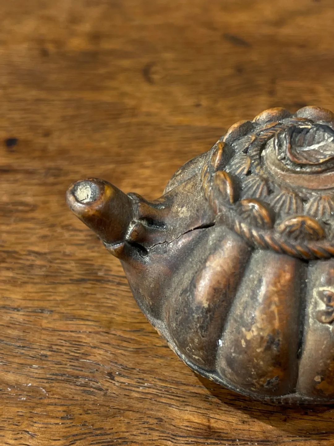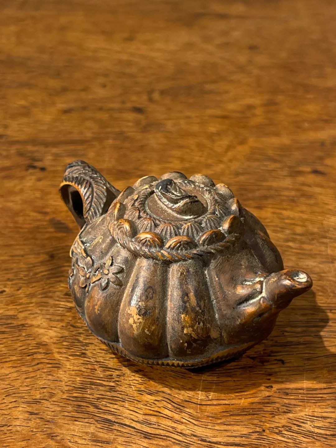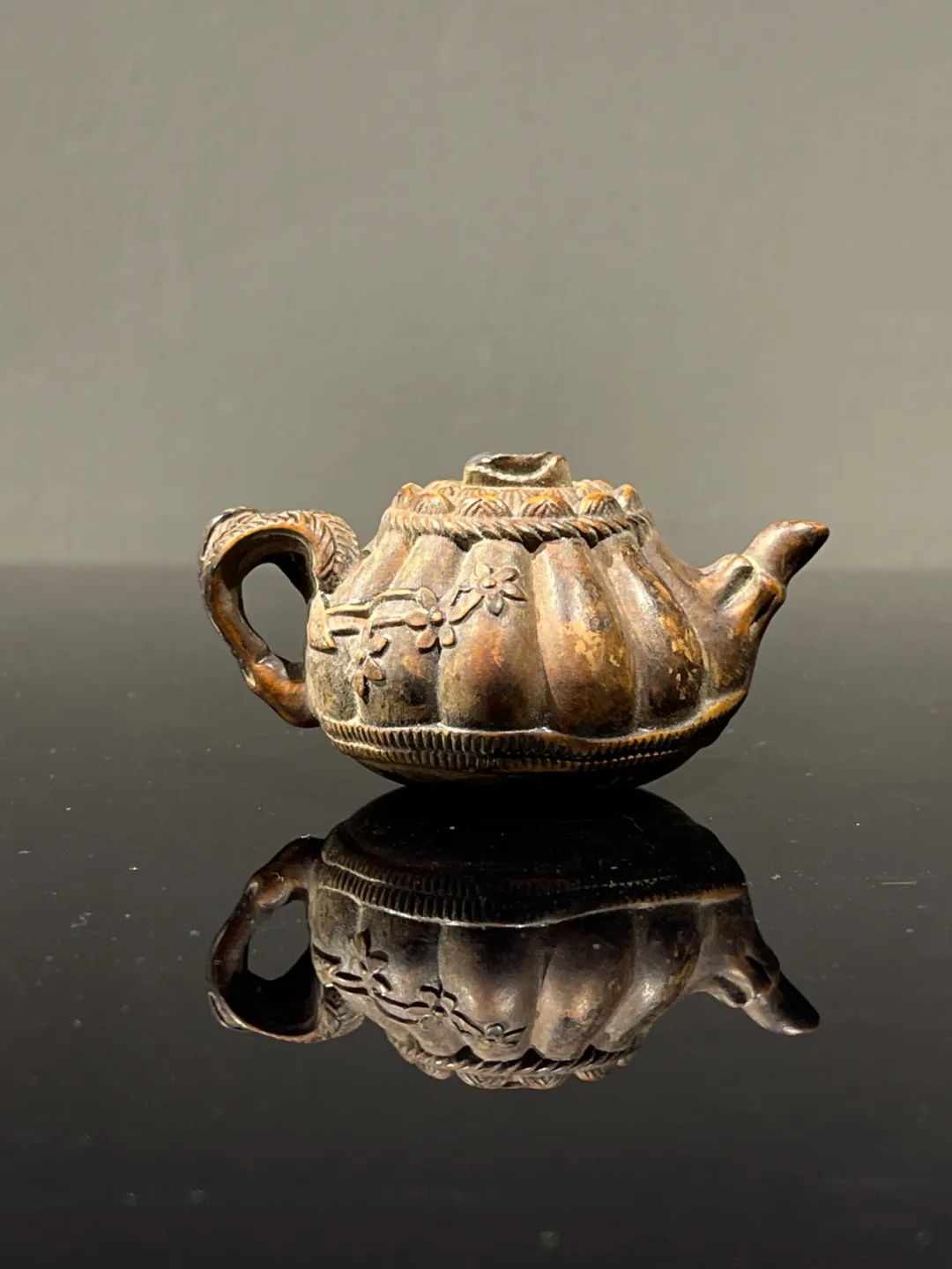 黄杨木雕梅花纹茶壶形摆件