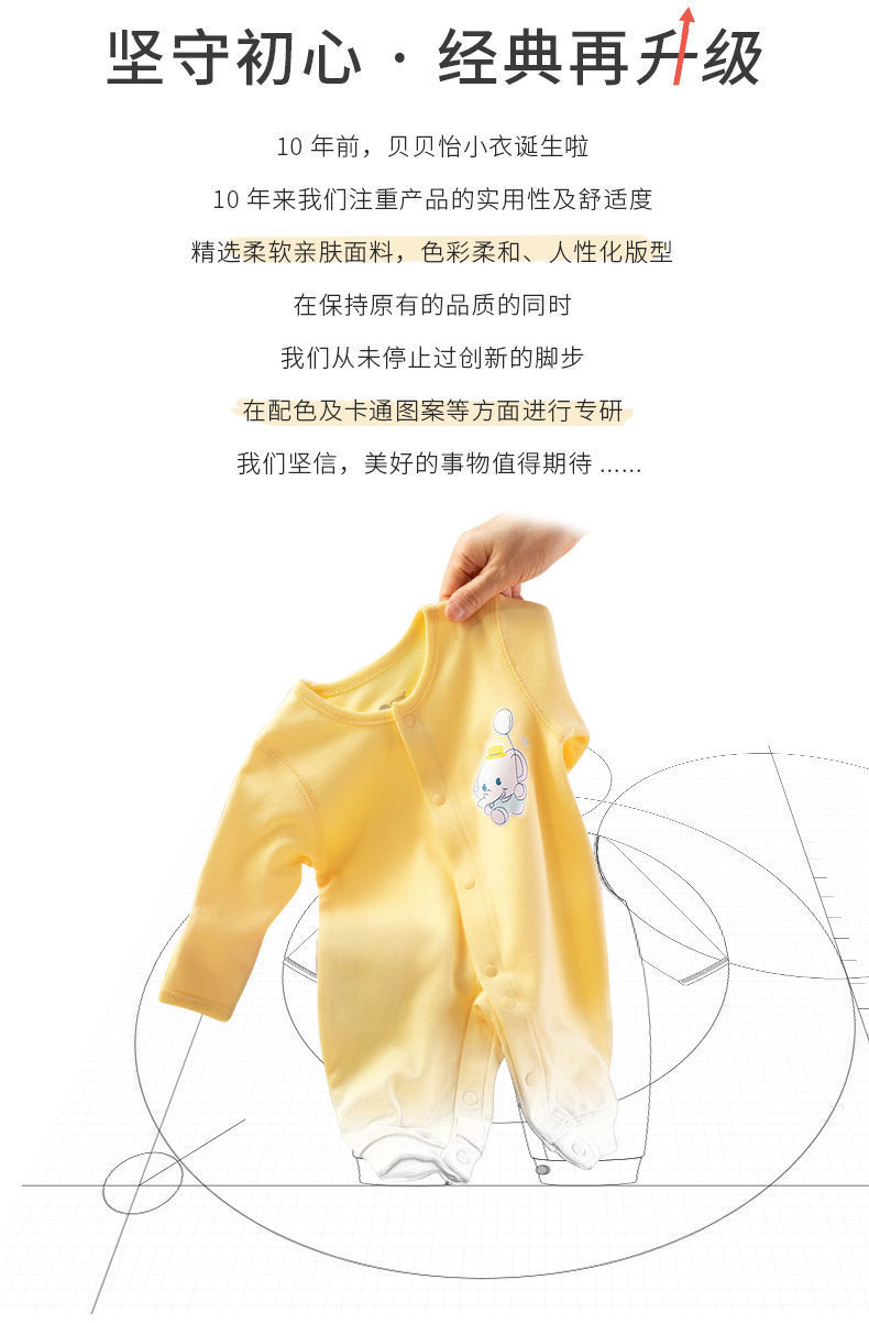- 贝贝怡专注0-6岁婴幼儿服饰,坚持安全、柔软、舒适的产品理念,为千万中国家庭提供超高品质、安全可靠的婴幼儿服饰产品,妈妈放心,宝宝开心!