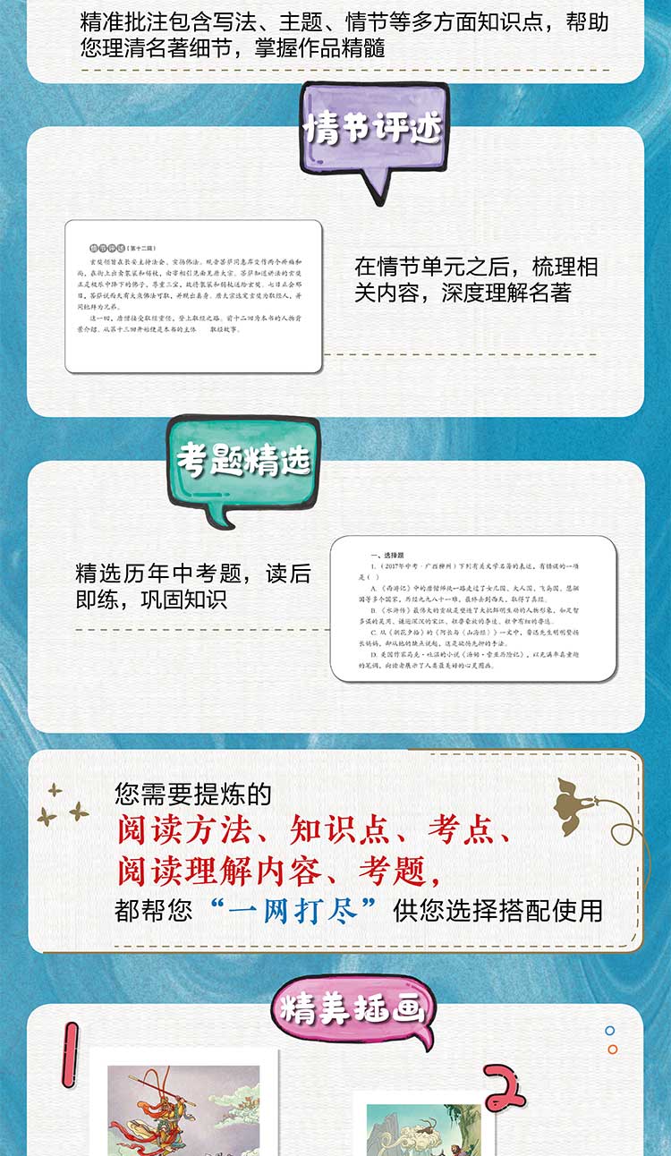 本书不但选取全本无删减版本,更有区别于其他同类品种的课程化这一体系。书中设置;阅读规划;全书导读;随文批注;章节总结诸板块,更附上历年中考题。学生可按照课程化要求精读全本名著,学习阅读方法,增强探究意识,感受经典文学的魅力;也可泛读书前导读、旁批、章节总结,完成*后的中考题,轻松备考。教师可依托相关板块,轻松完成名著阅读课程教学,解决新时期语文教学中一大难题。可以说,本书从阅读能力、课程建构、精准备考等方面,全方位满足了师生需求。