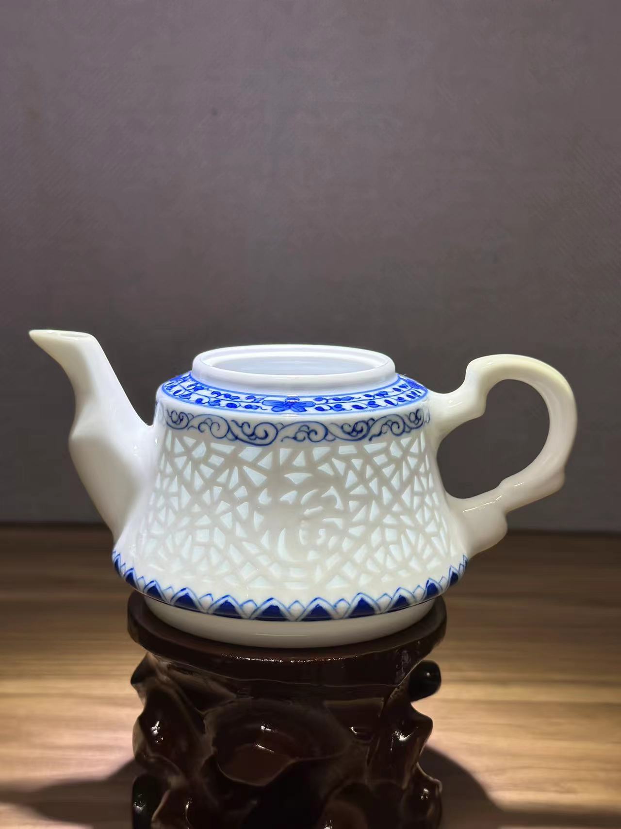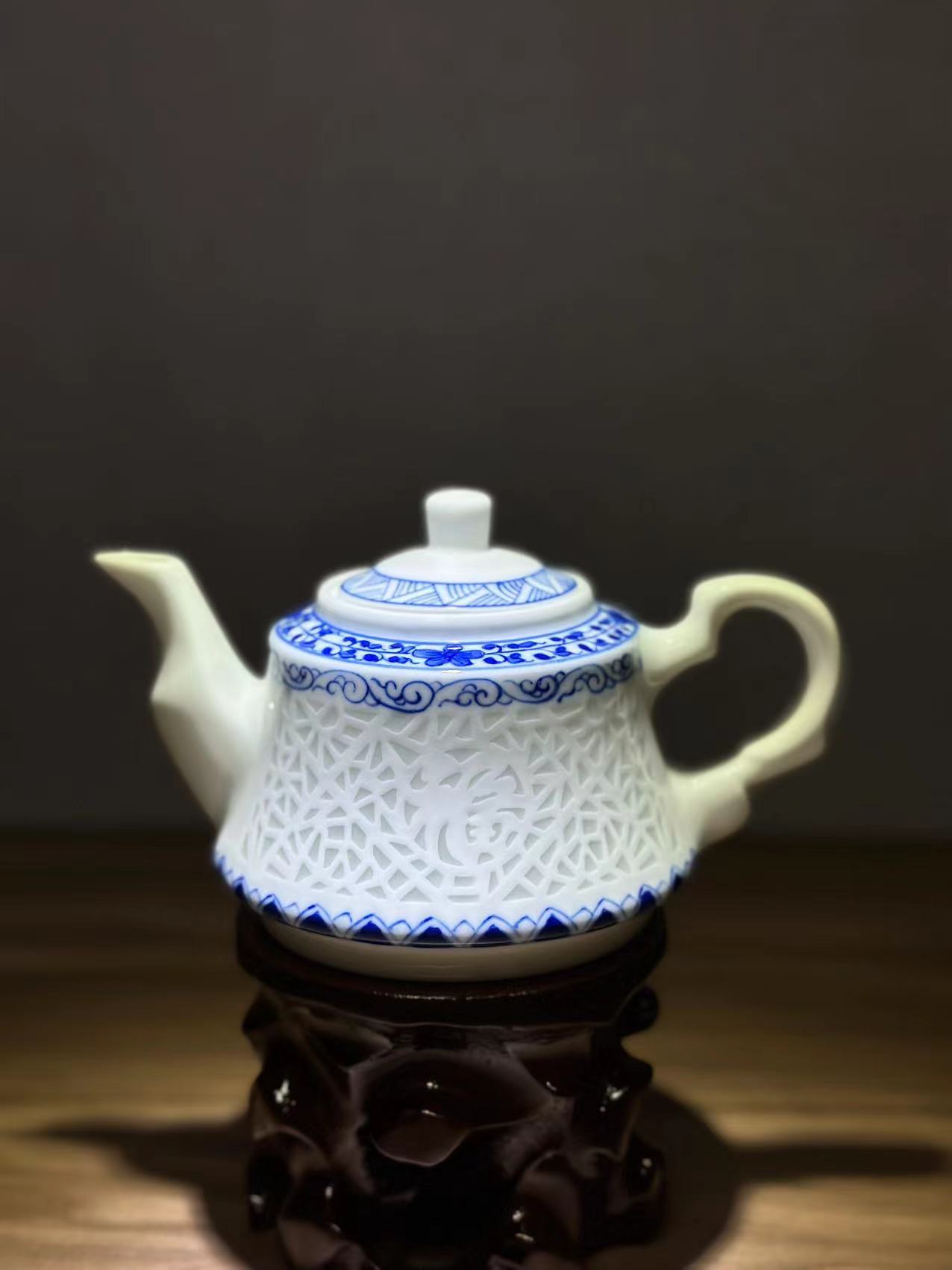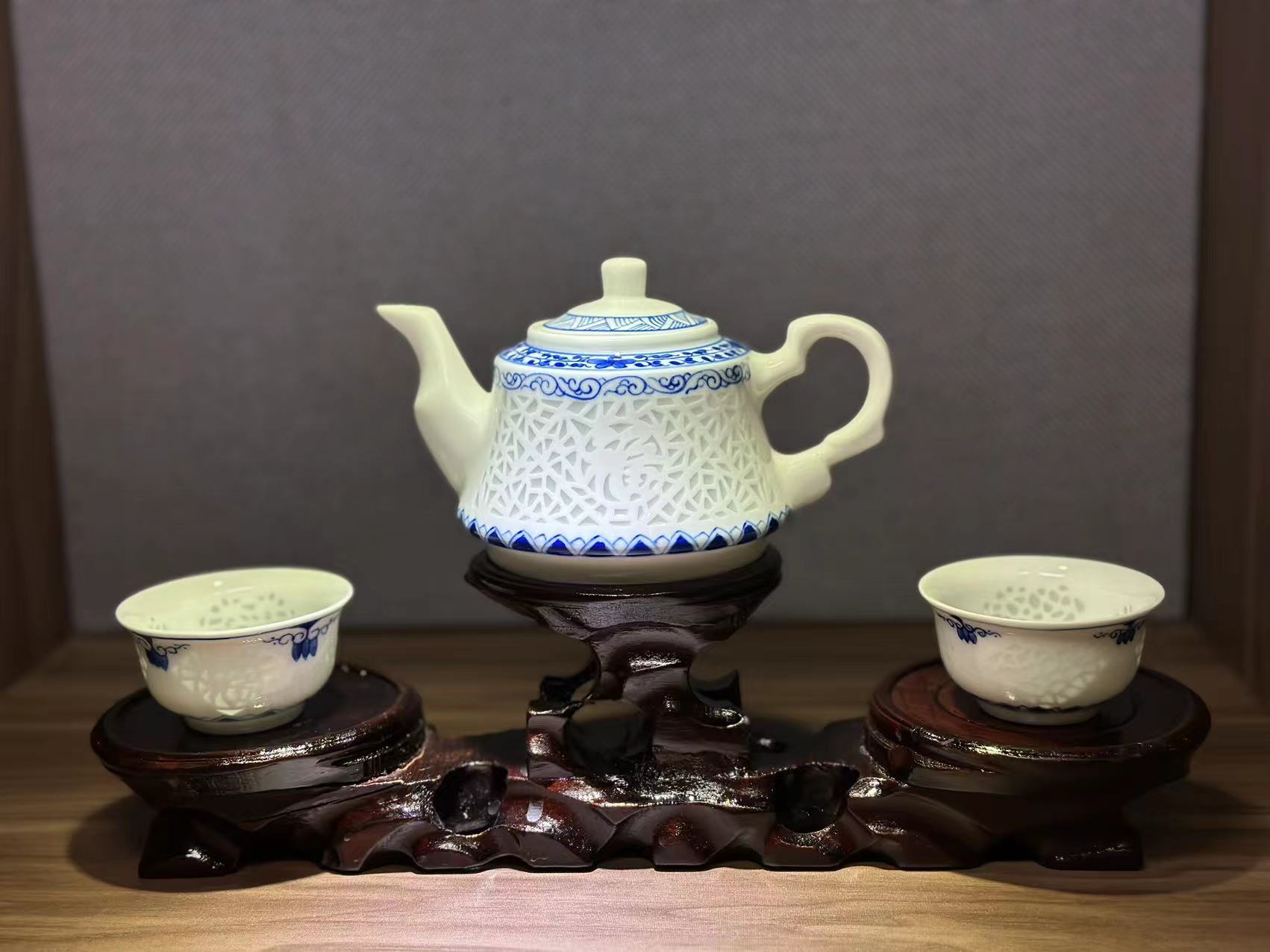 景德镇陶瓷 国瓷红叶 8头玲珑茶具钻石福