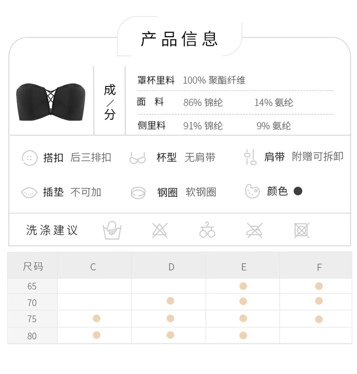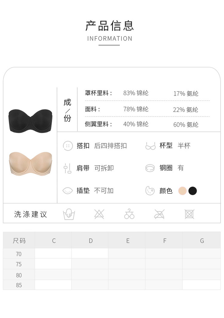 抹胸半杯无肩带