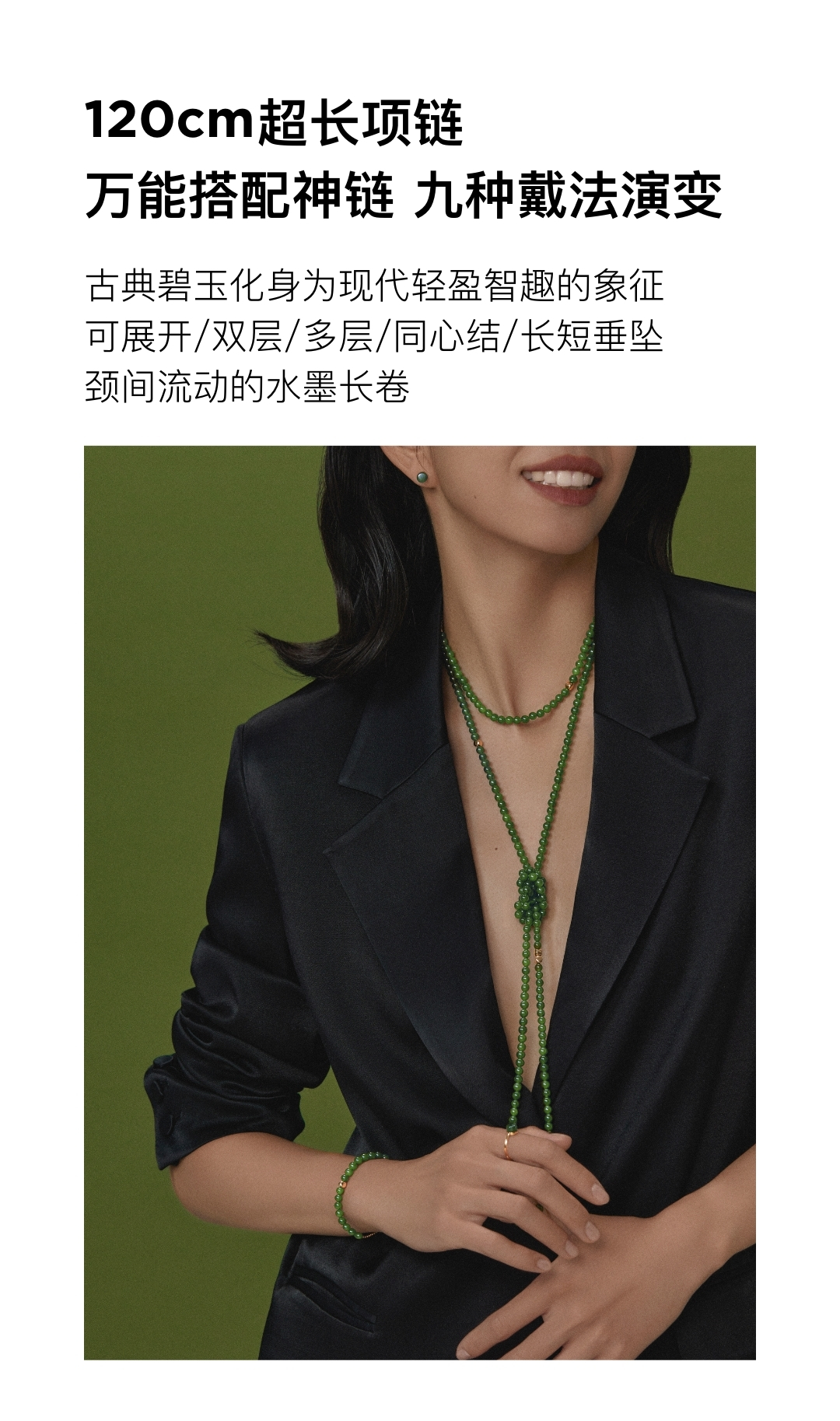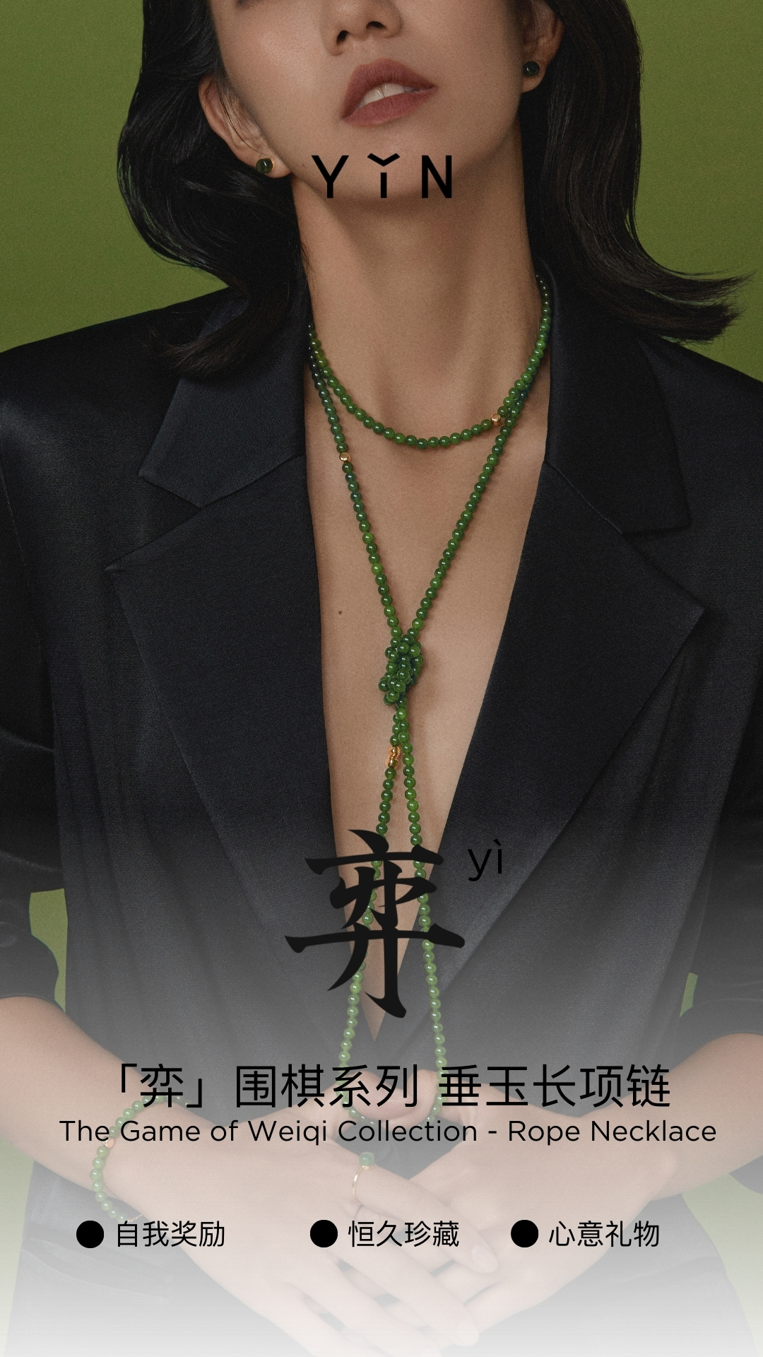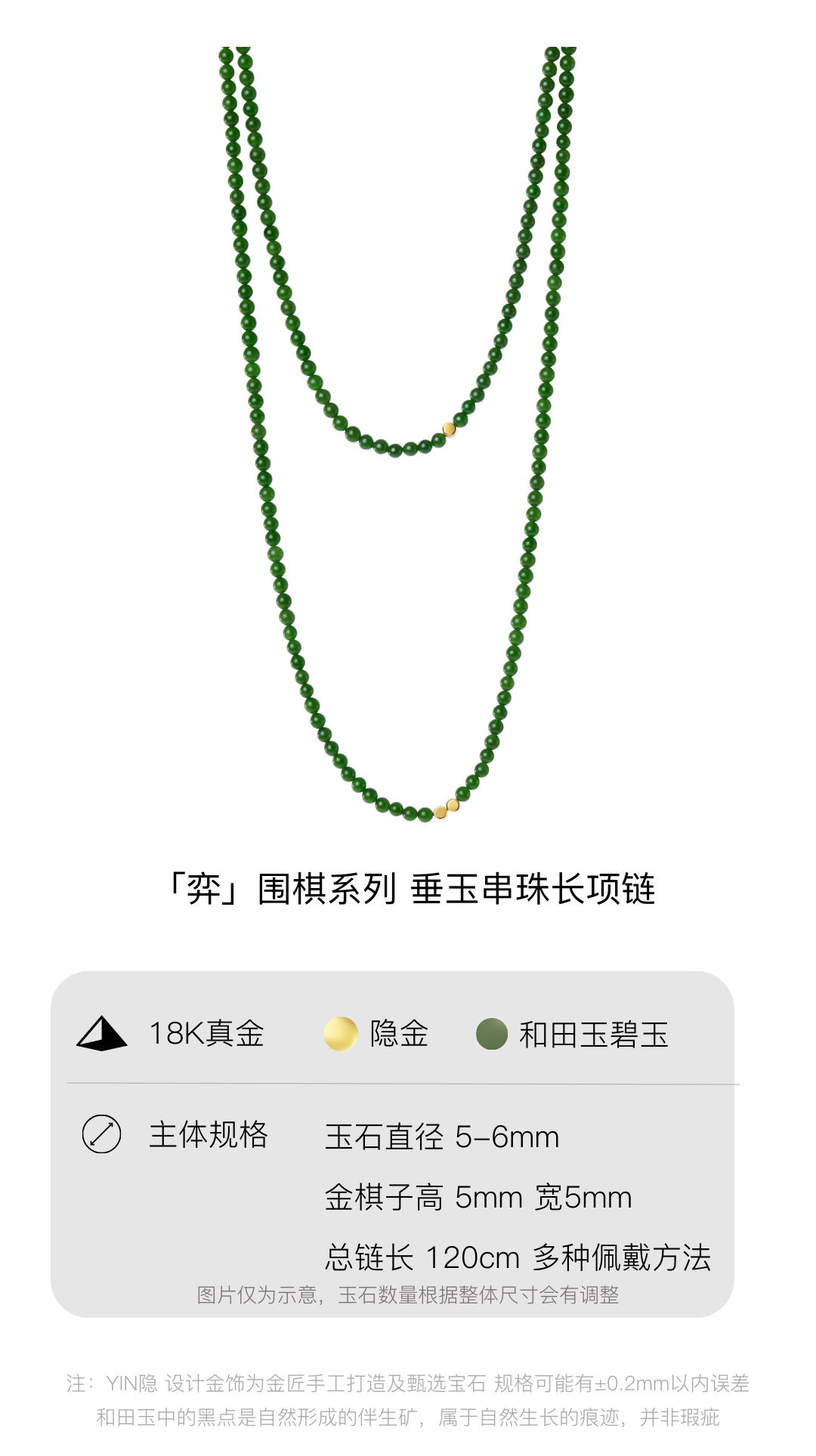 「弈」系列围棋串珠长项链-金绿