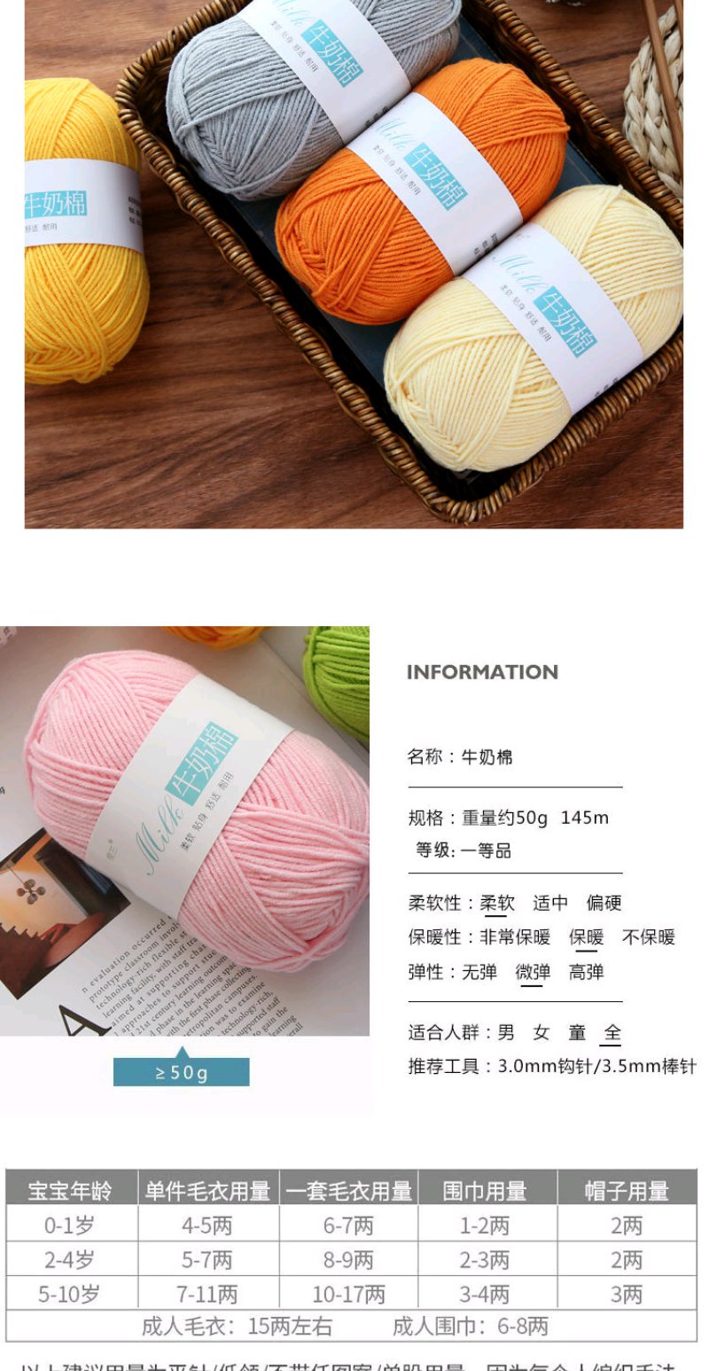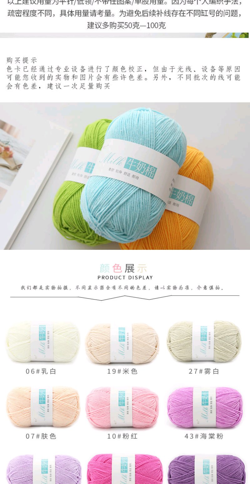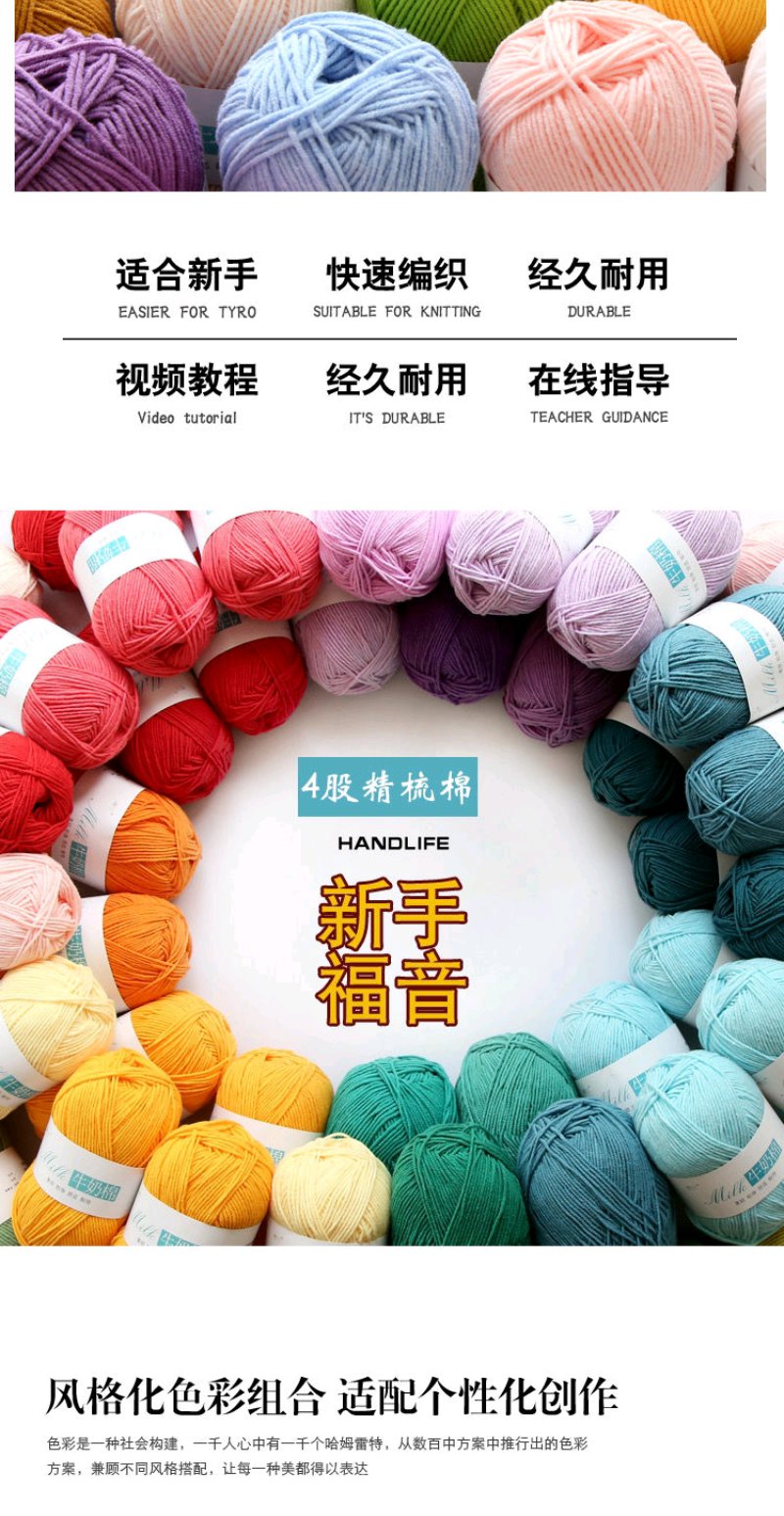 Diy毛线团自织毛衣中粗线手工编织材料包4股牛奶棉长绒棉