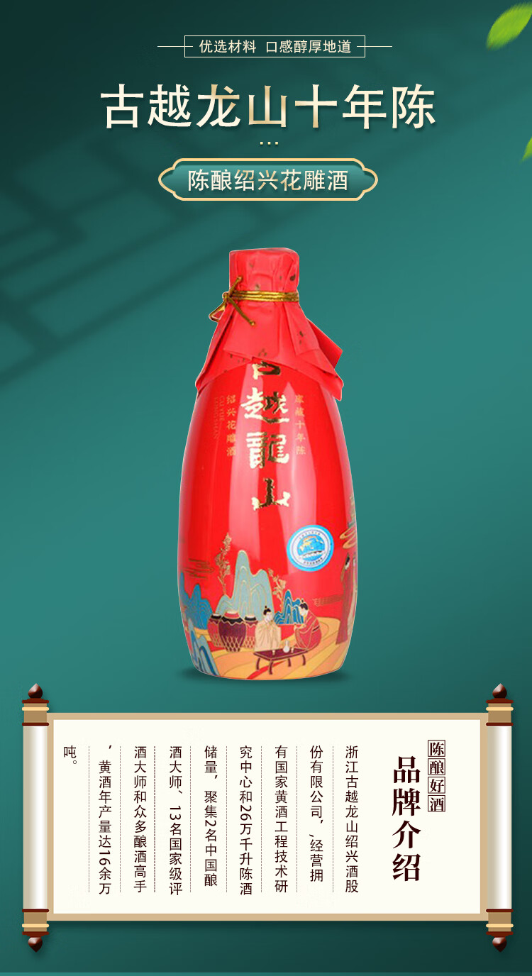 古越龙山 国潮(库藏)十年 花雕酒 黄酒 680ml 15.0%VOL