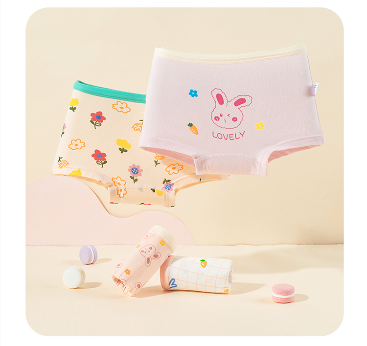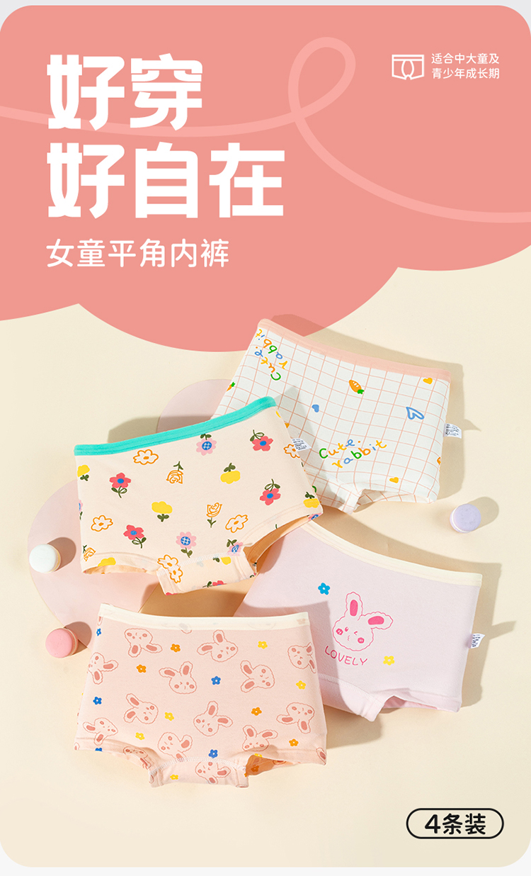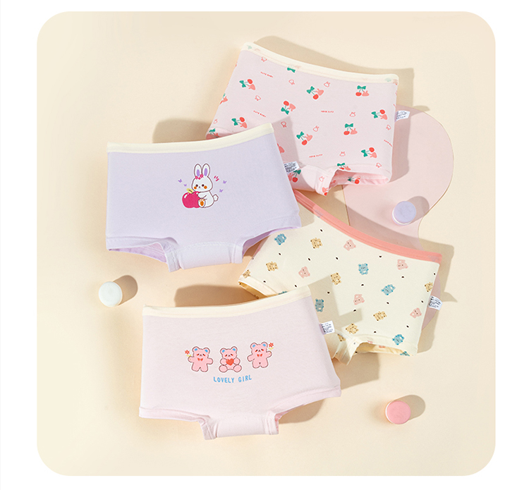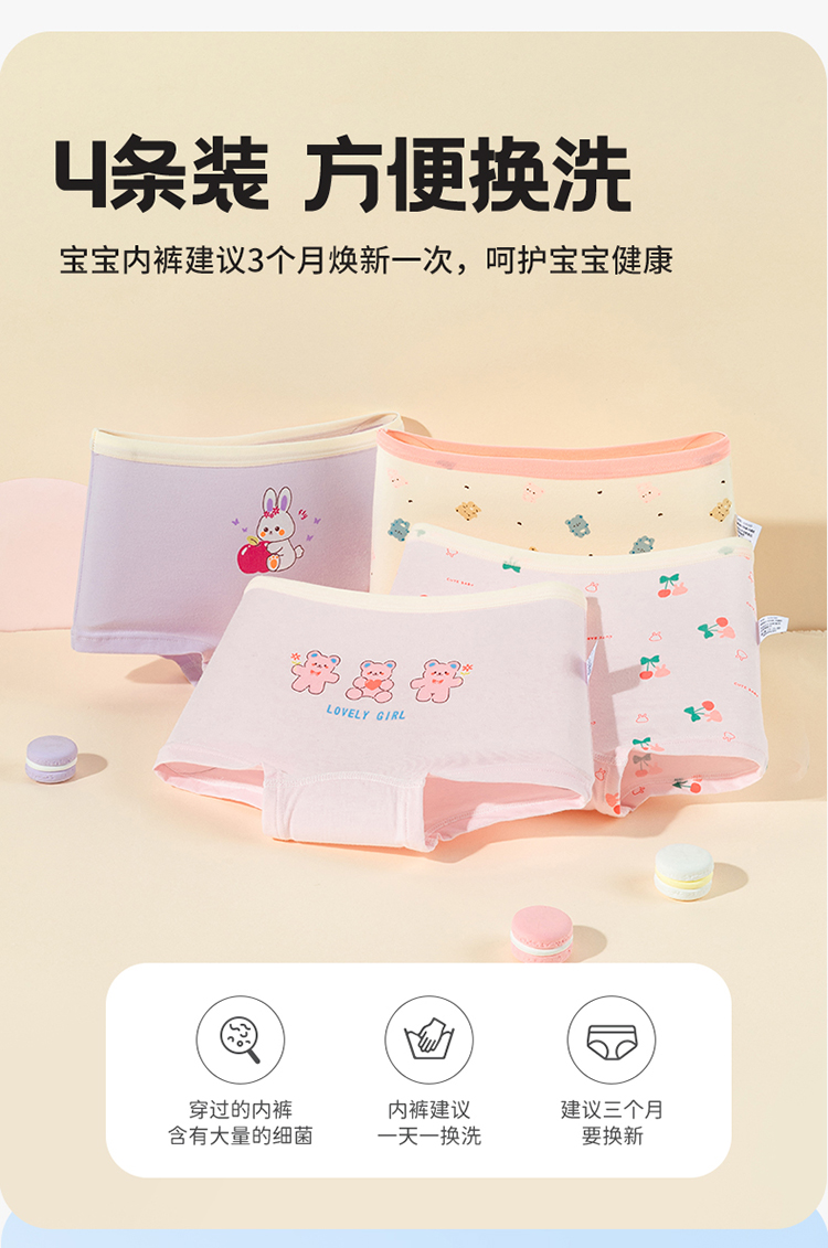 贝贝怡女童内裤春夏新款平角短裤宝宝卡通小女孩四角裤头底裤(4件装)ZB5EP017