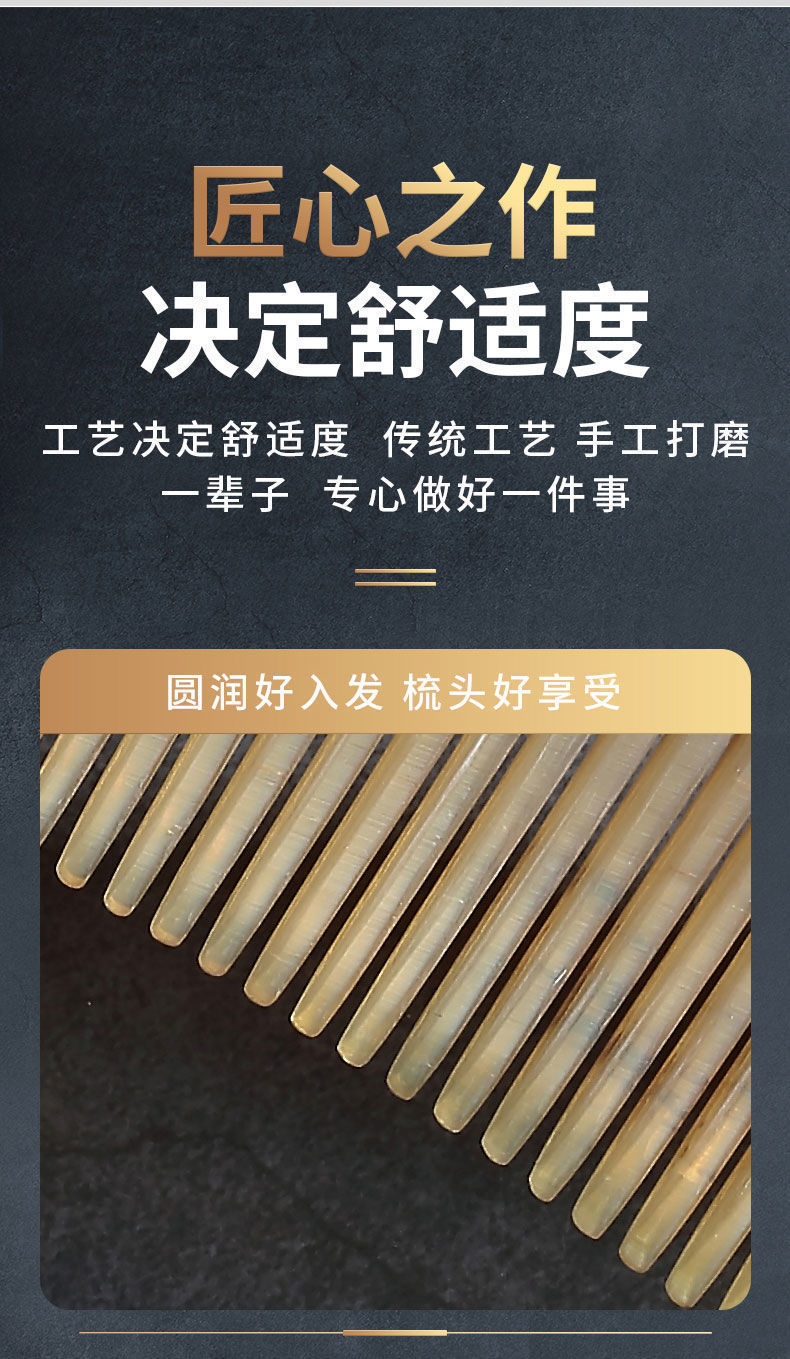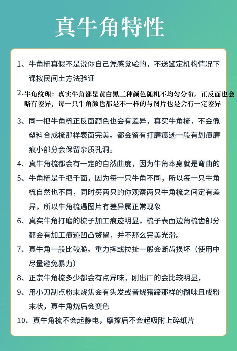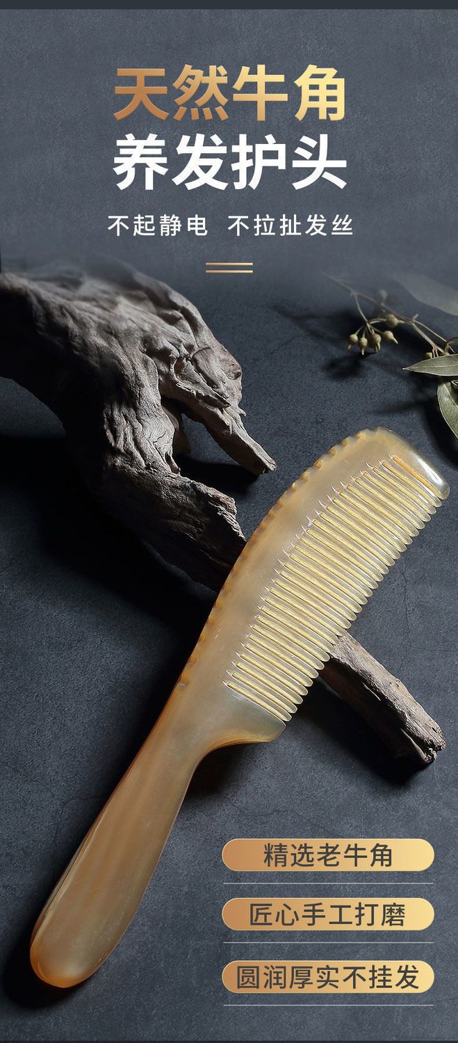 家用牛角梳子女士男士耐用按摩梳头发便携非木梳蓬松密齿宽齿梳