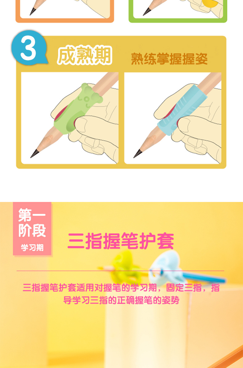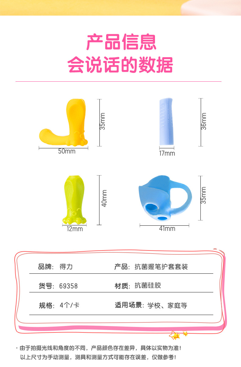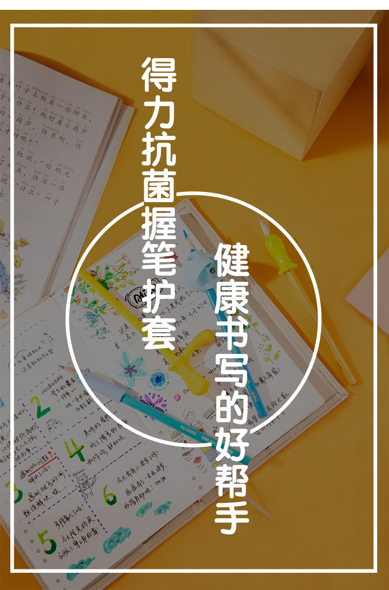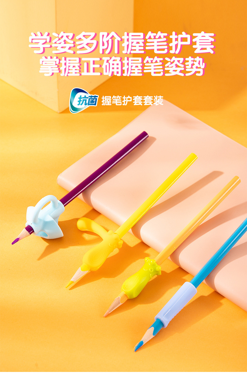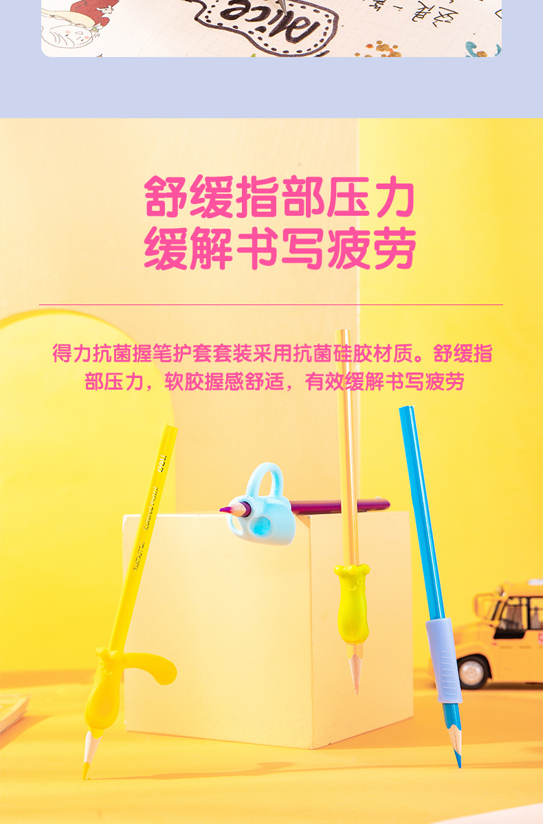 得力文具握笔器3个/袋 颜色随机 69357铅笔笔套抓笔器保护套小学生握姿巩固款