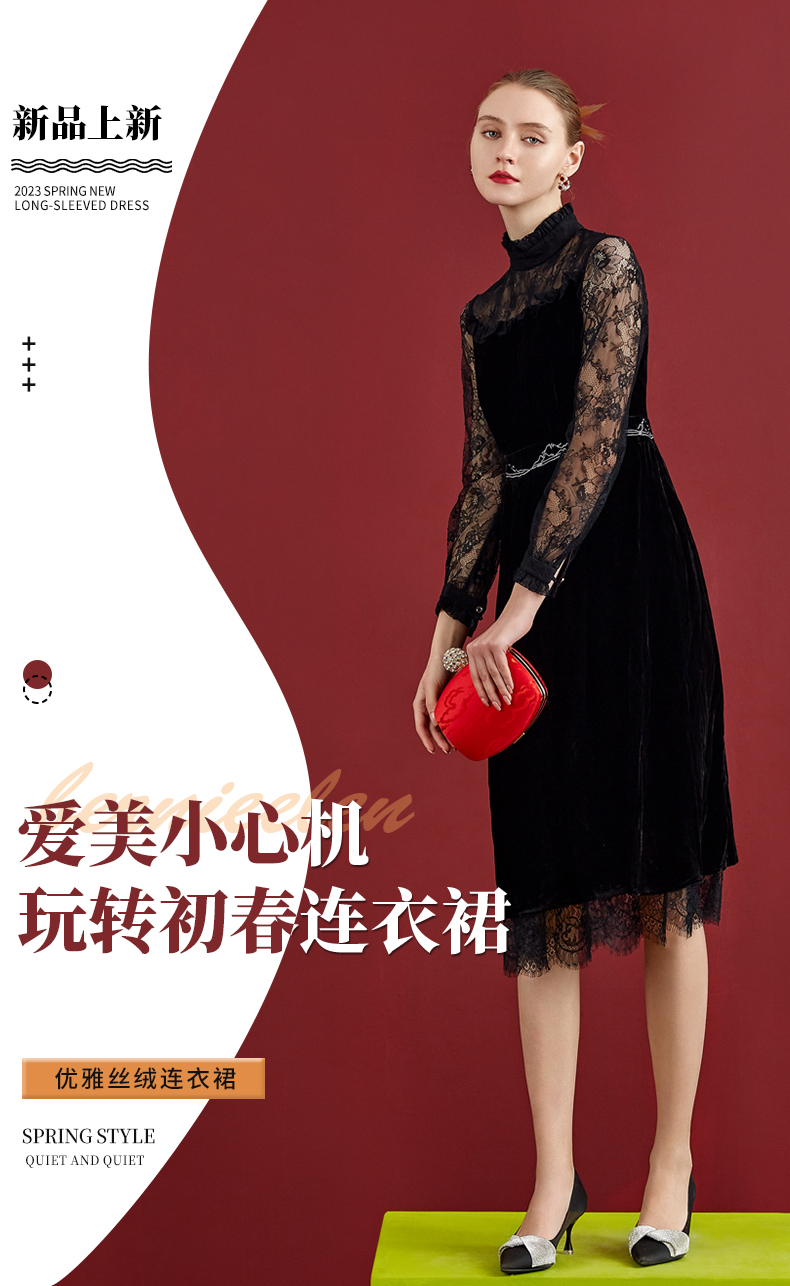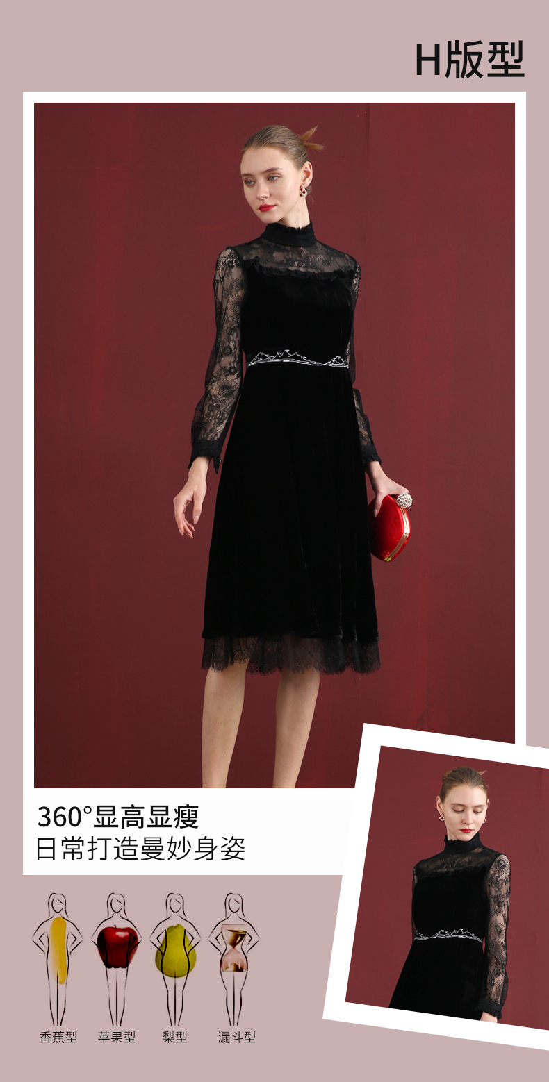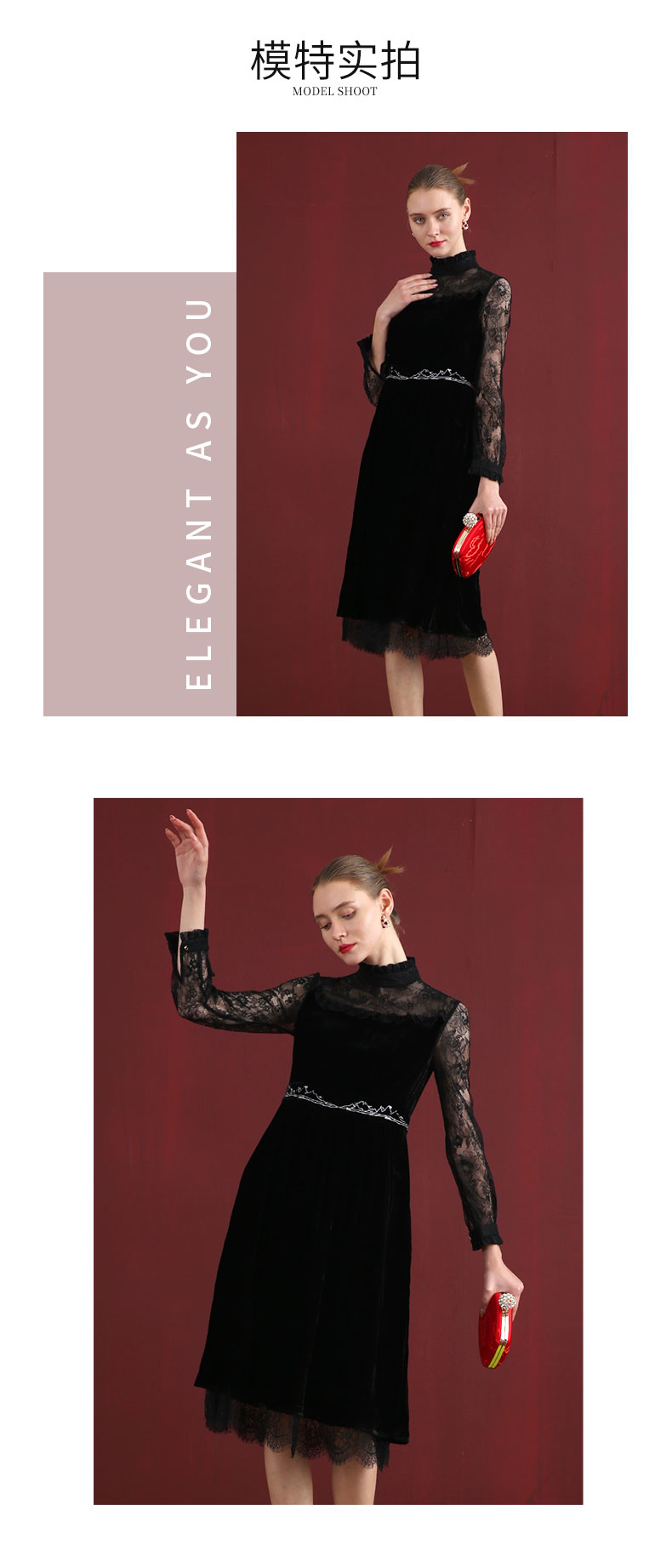 【伯妮斯茵】优雅丝绒连衣裙 1S5288