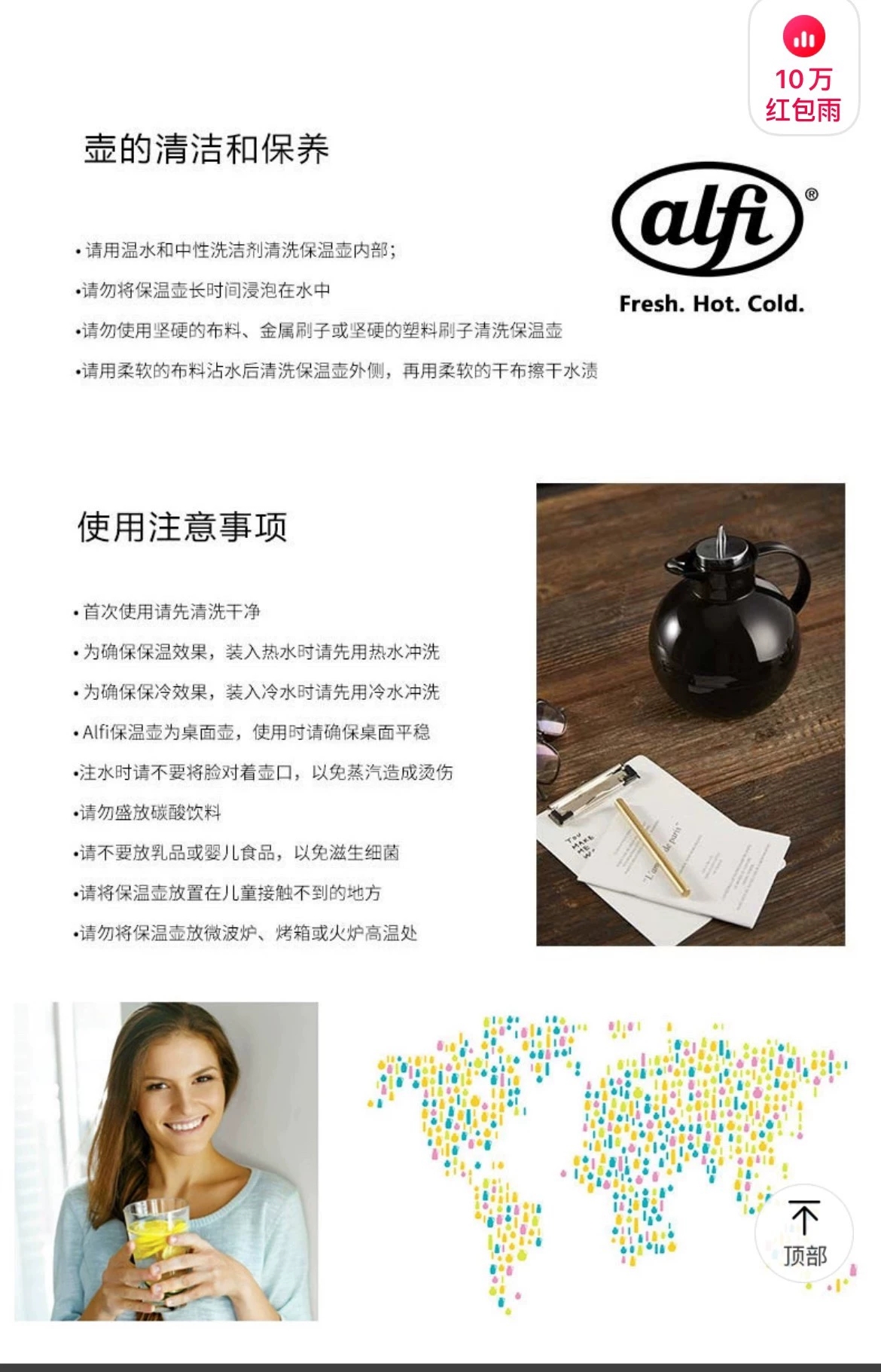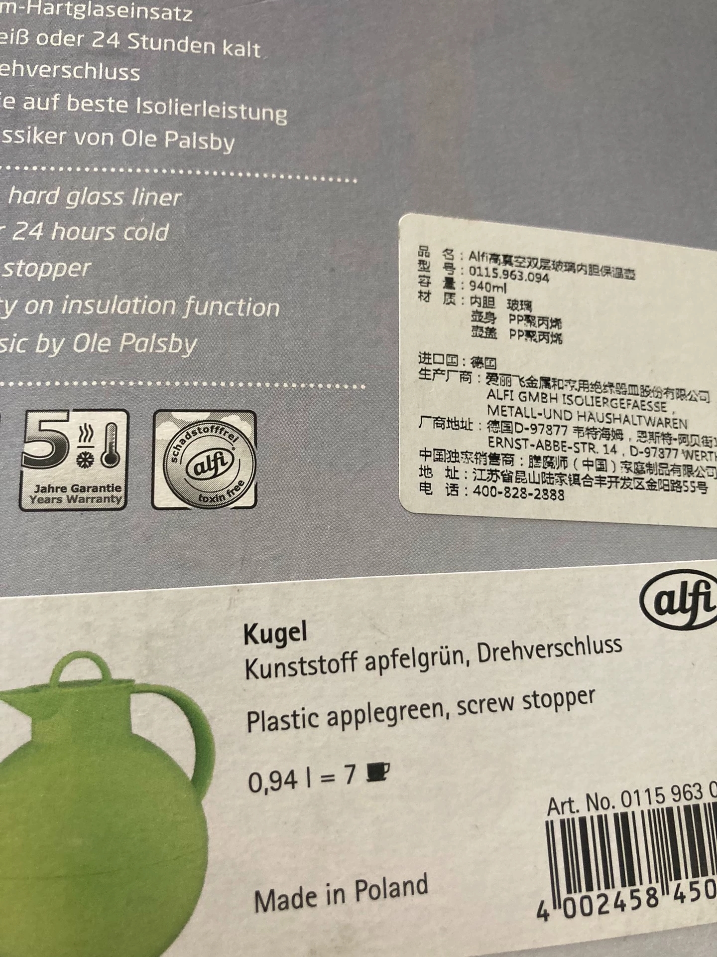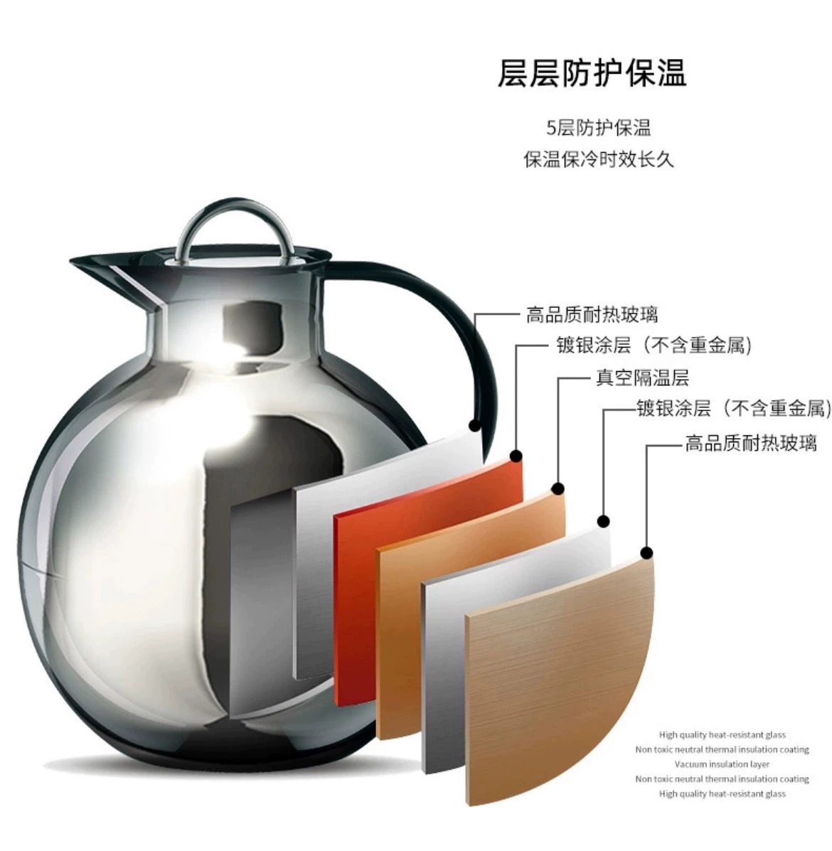 爱丽飞Kugel玻璃内胆保温壶水壶容量1L家用正品进口德国水鸭