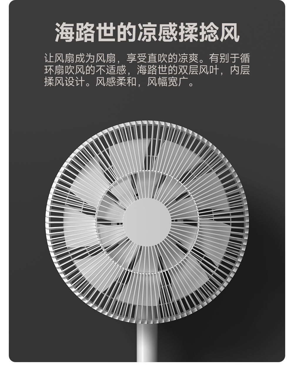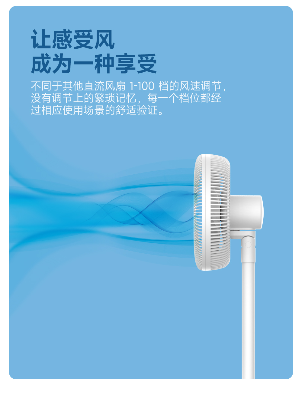 看似简单,但配置了直流电机。要知道,市面上一般的桌面扇都是搭载交流电机的。