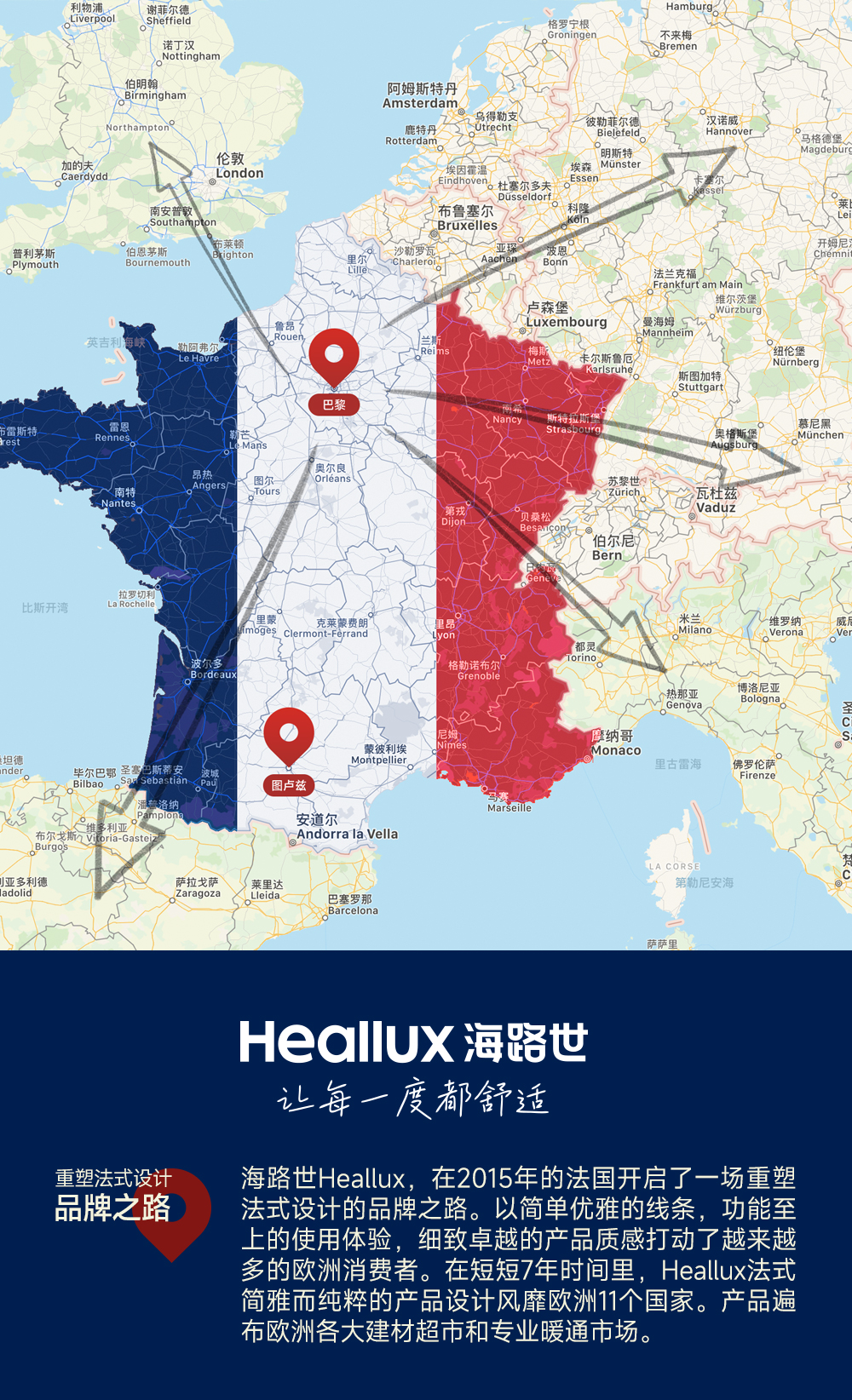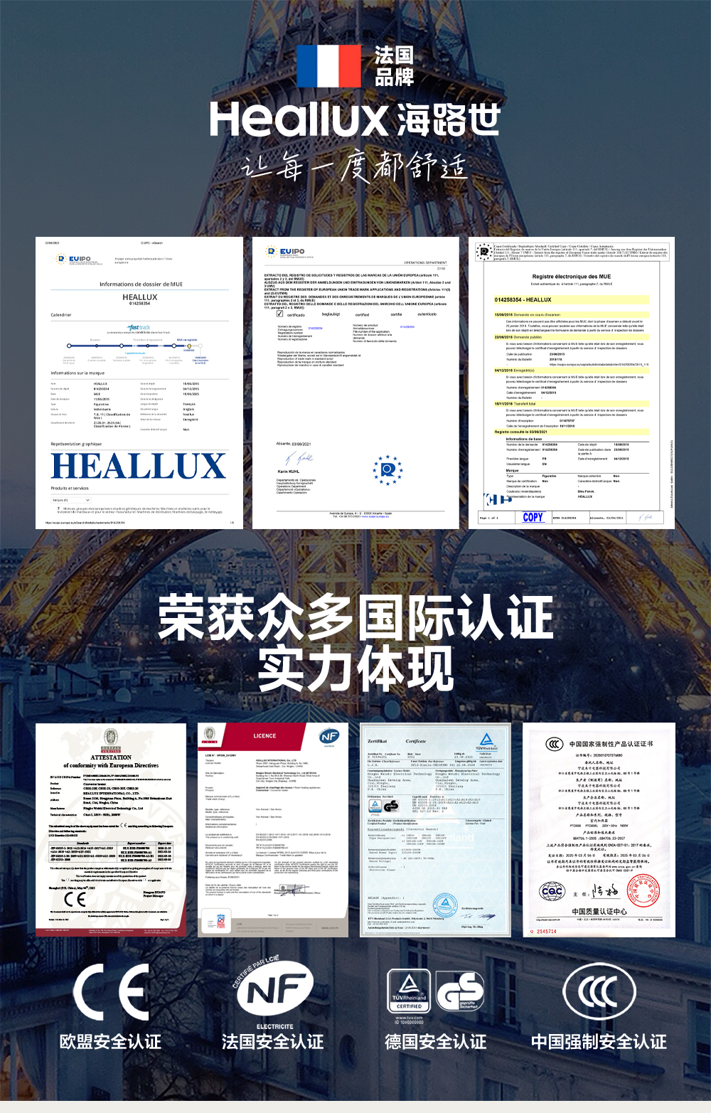 他举例说:“我们公司生产的加热毛巾架,在欧洲有绝对的市占率,每三个法国家庭就有一家用的是Heallux,能取暖、烘干、杀菌”。