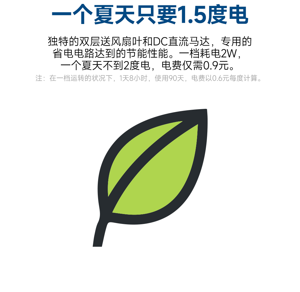 1.节能。直流电机非常省电,如果按照运转一挡,每天运转4小时,一个夏天使用3个月,只消耗了0.8度电。