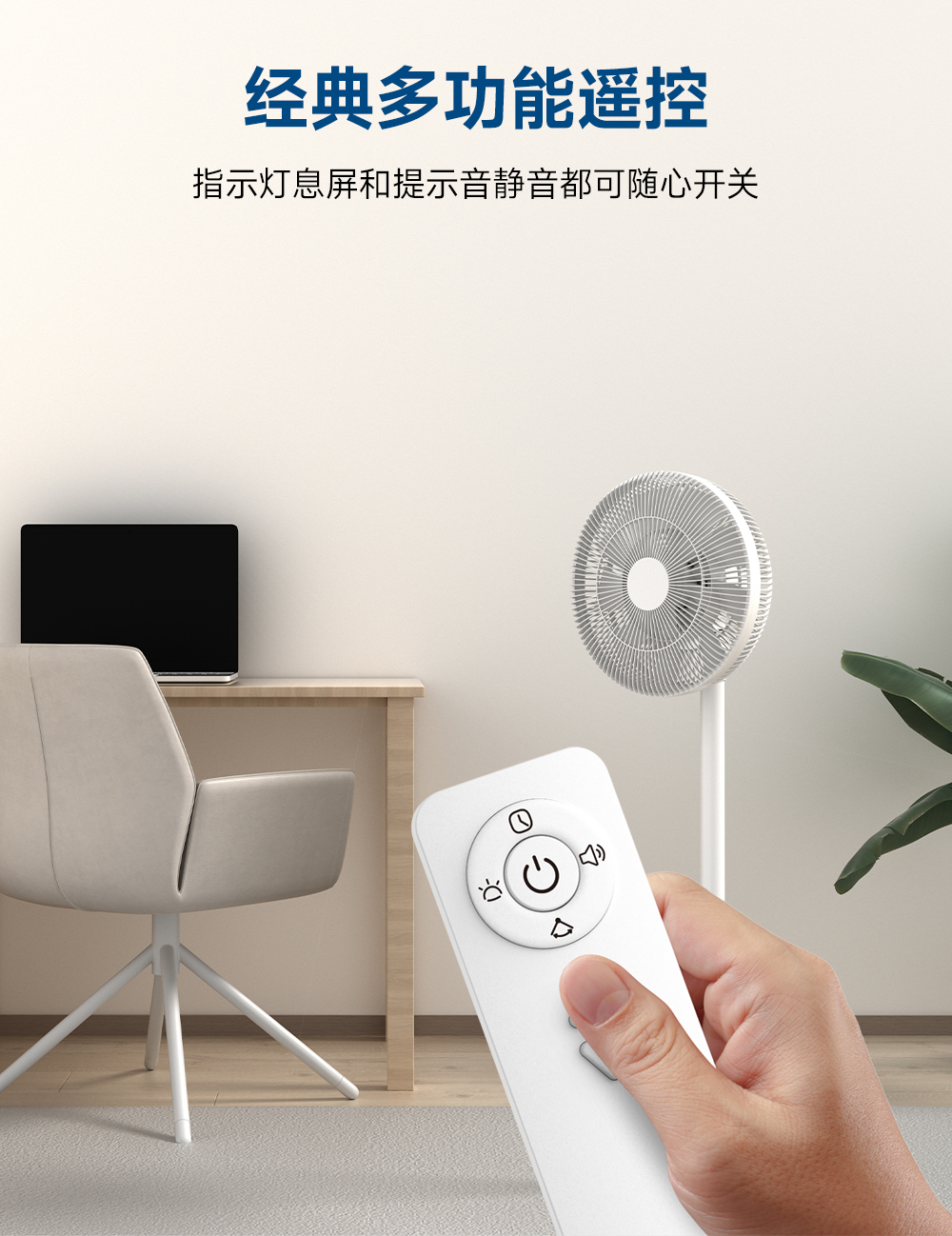 这款电风扇极简设计,有着满满的质感,随便放在家里的哪个角落,颜值都很赞。
