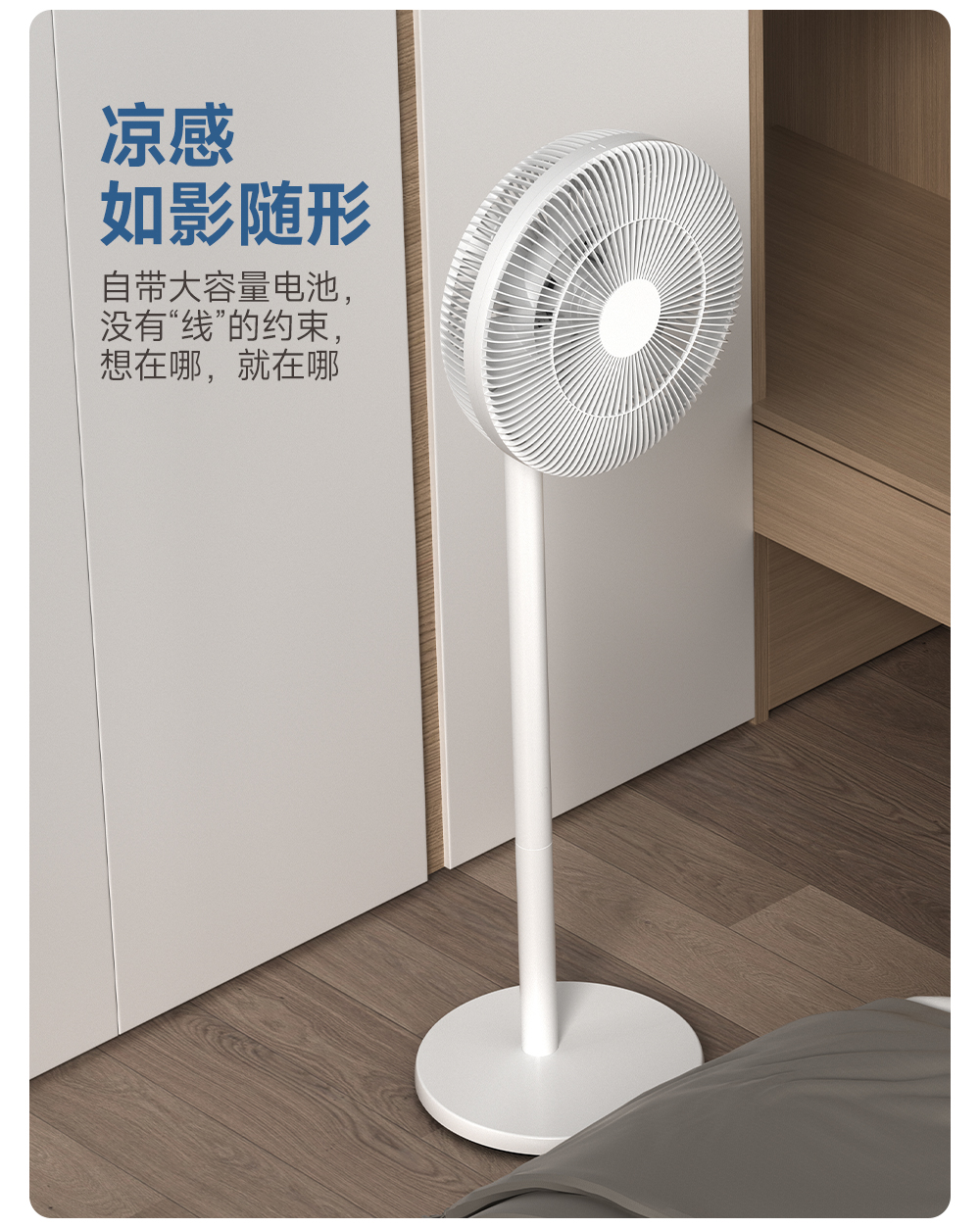 因为自带电池,电风扇可以随便搬,很方便。不管是颜值,还是使用感受,都让家人赞不绝口。