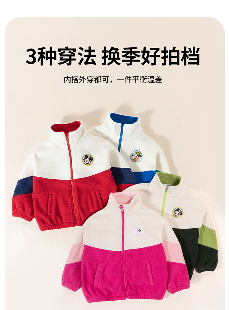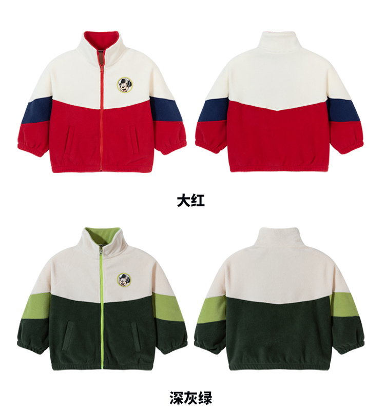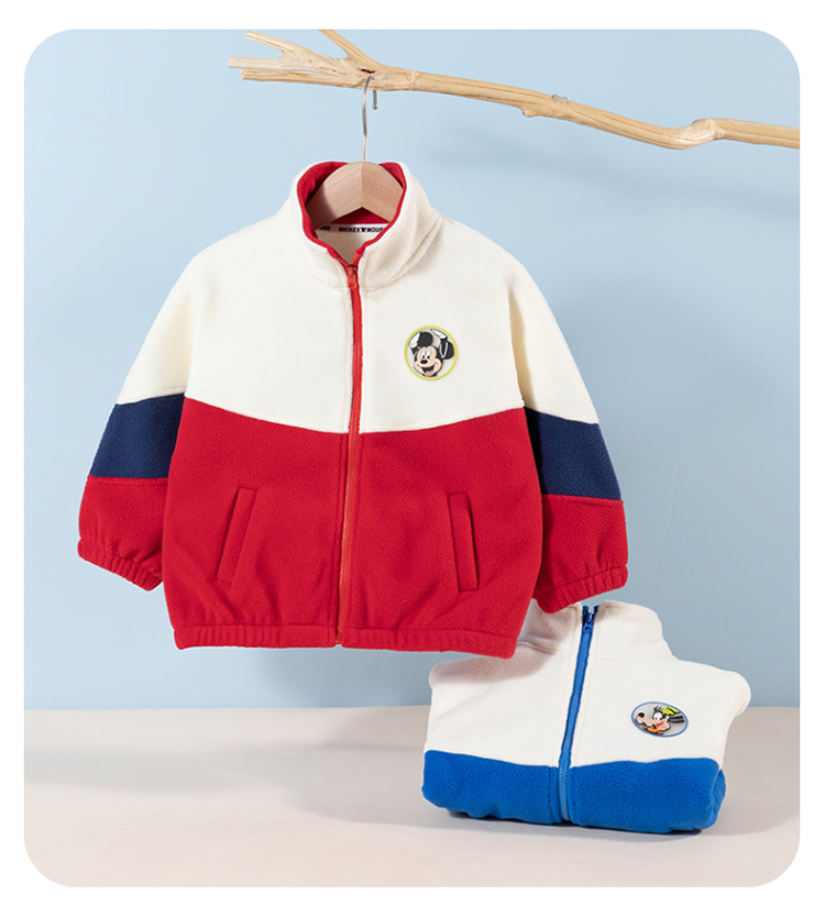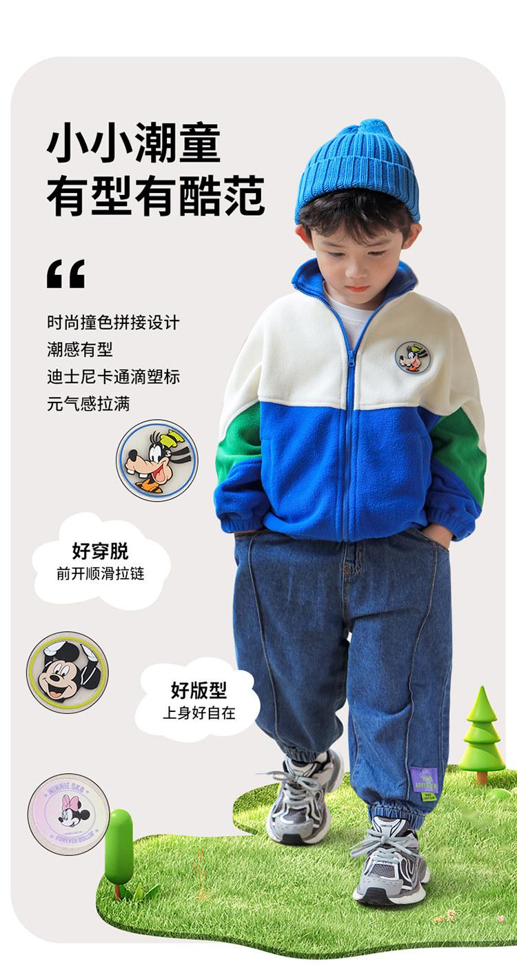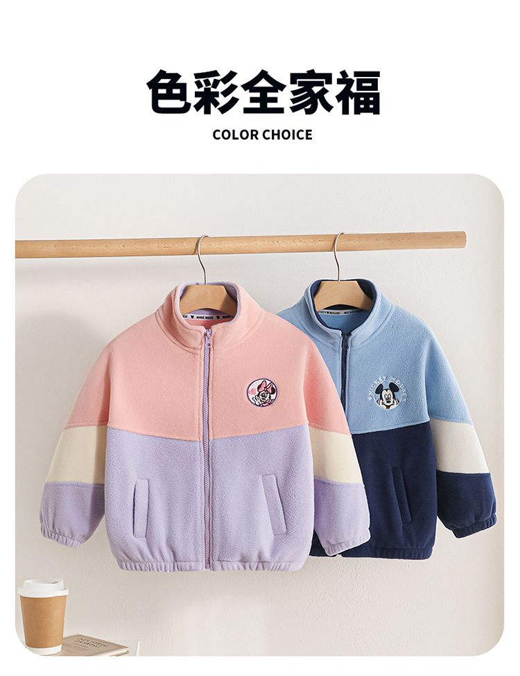 迪士尼秋冬时尚撞色休闲中小童摇粒绒保暖外套233S1853