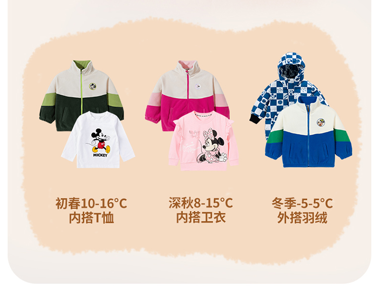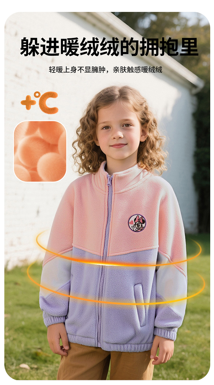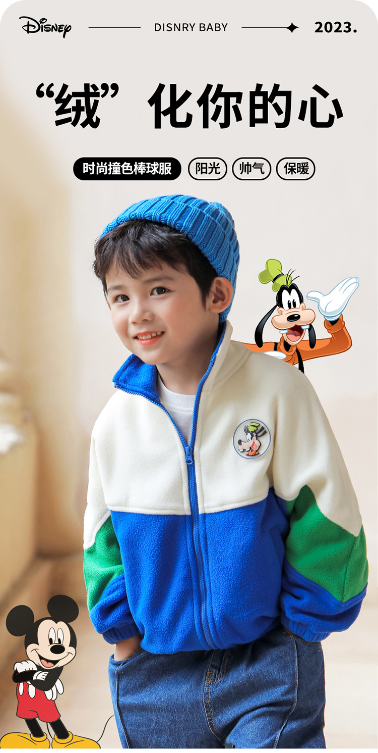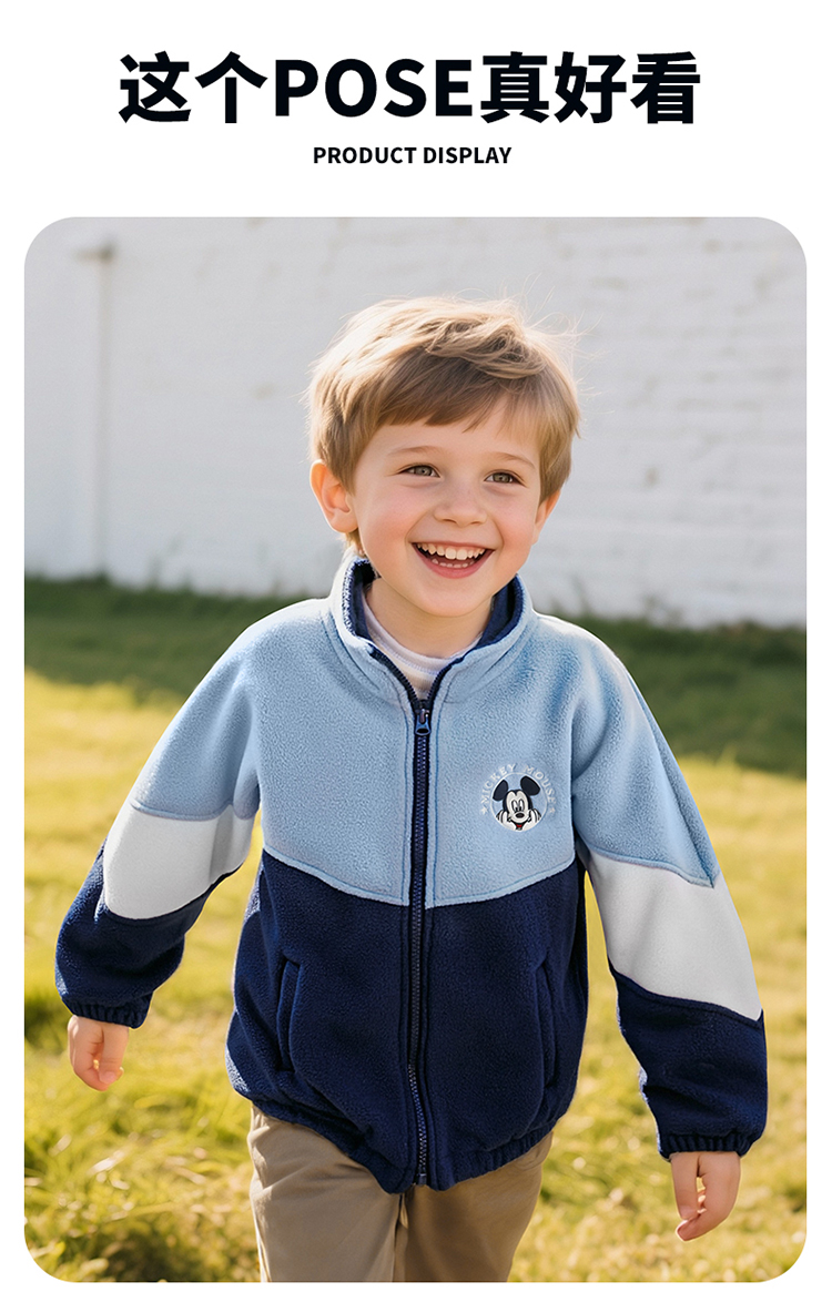 迪士尼秋冬时尚撞色休闲中小童摇粒绒保暖外套233S1853