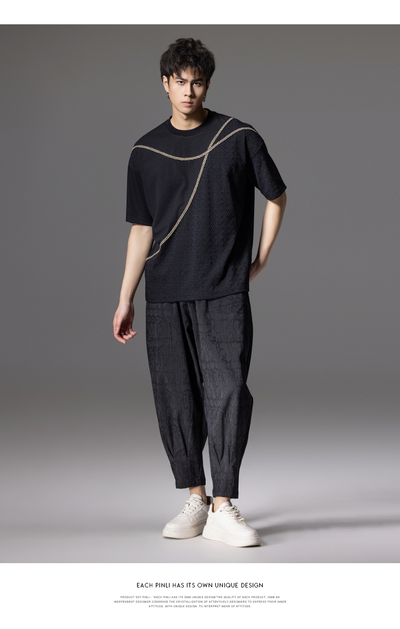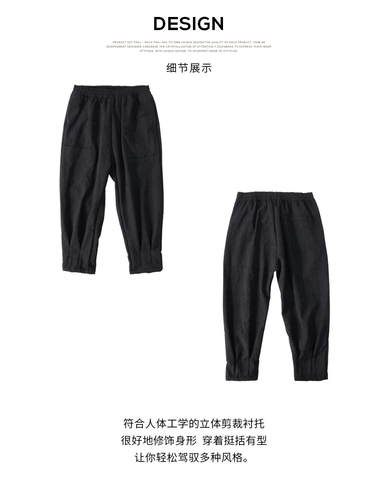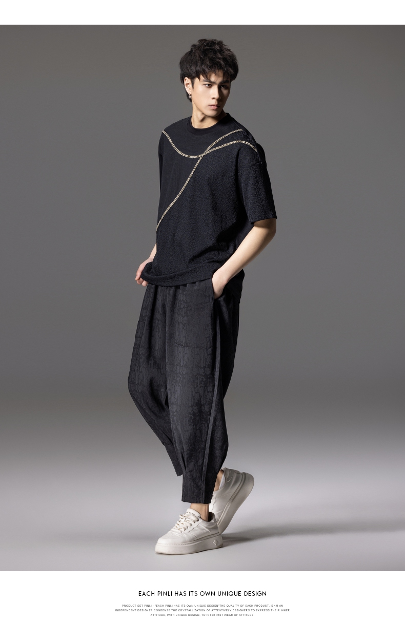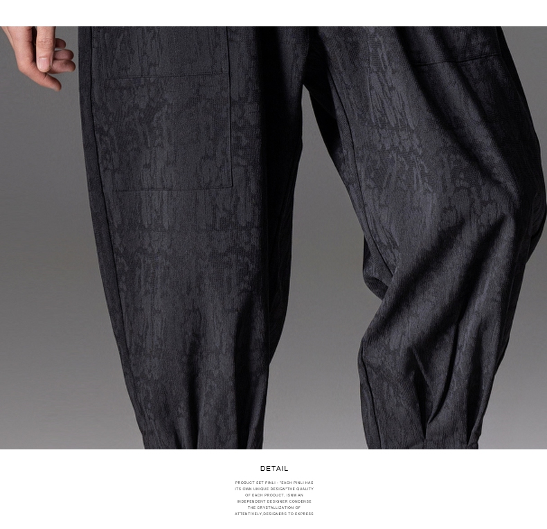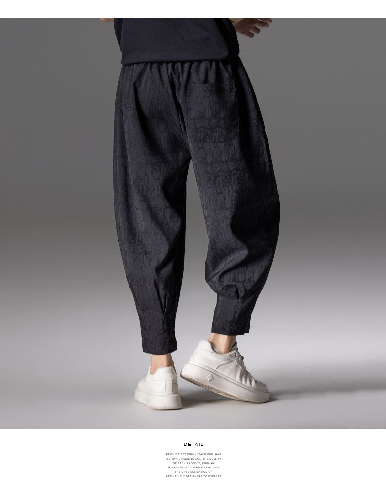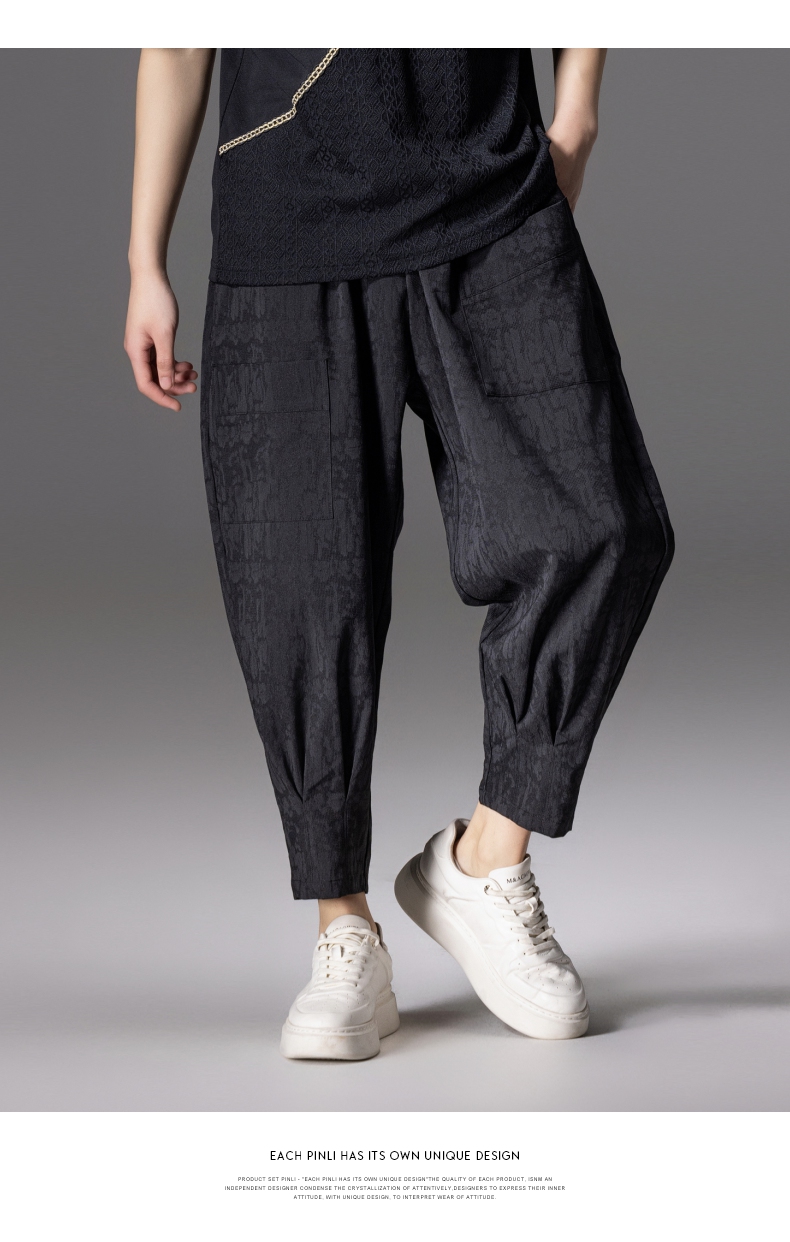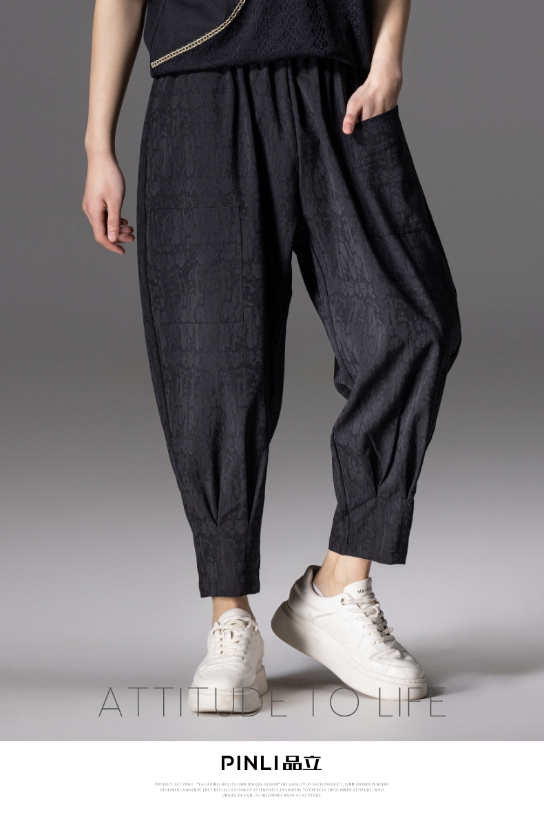 PINLI品立春夏新款暗纹束脚九分裤男士潮牌时尚宽松休闲裤子B242117150