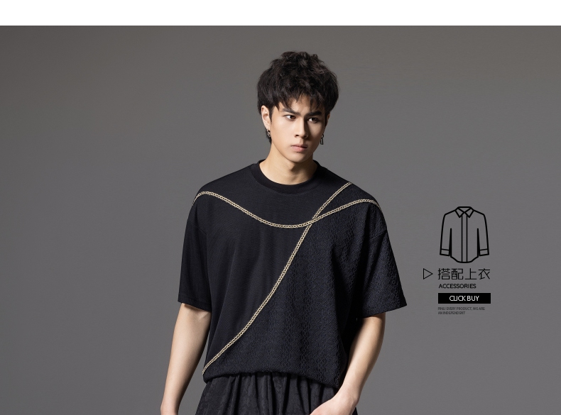 PINLI品立2026春季新款男士圆领宽松落肩袖烫钻套头休闲上衣上衣潮牌BG262109006