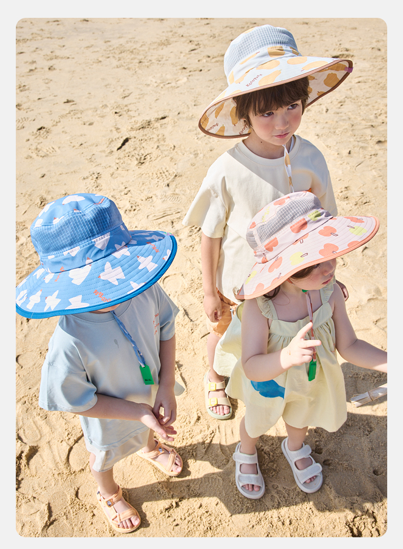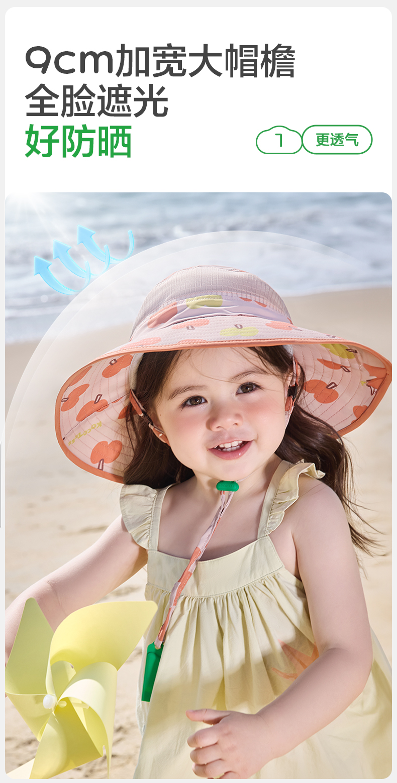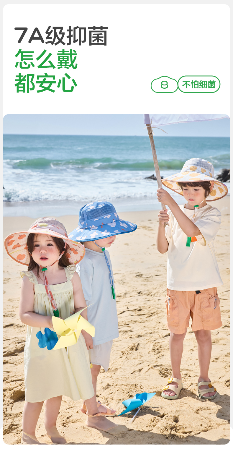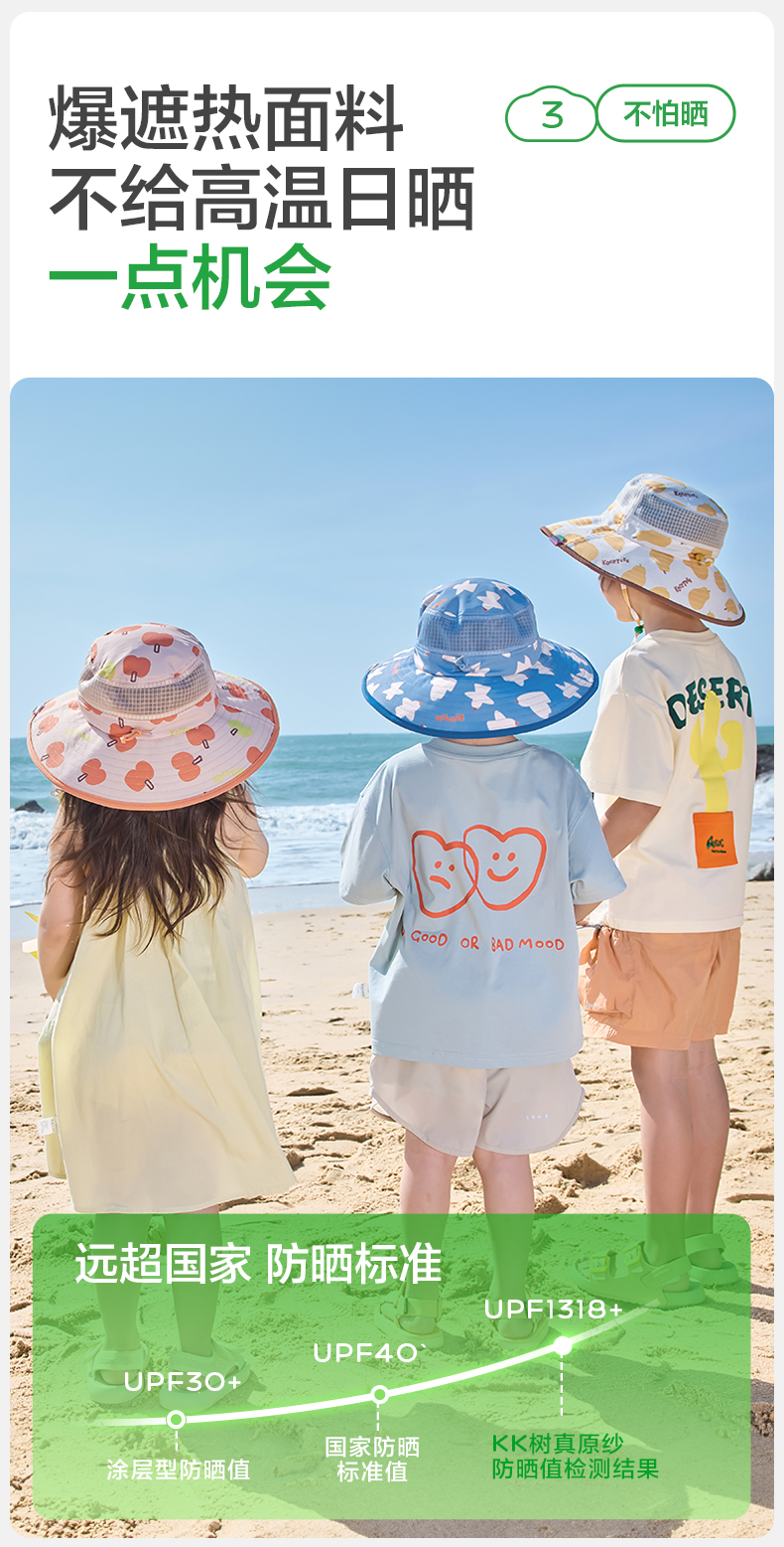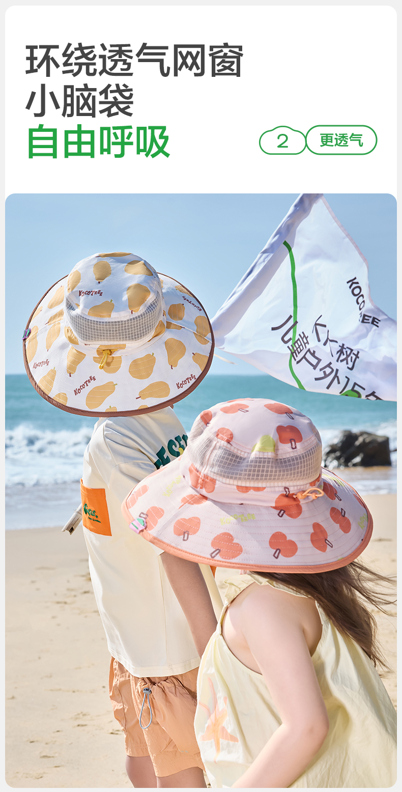 [屁侠推荐]KK树儿童防晒帽防紫外线宝宝遮阳帽夏季男童女孩渔夫帽原纱大帽檐果果岛呼吸盆帽