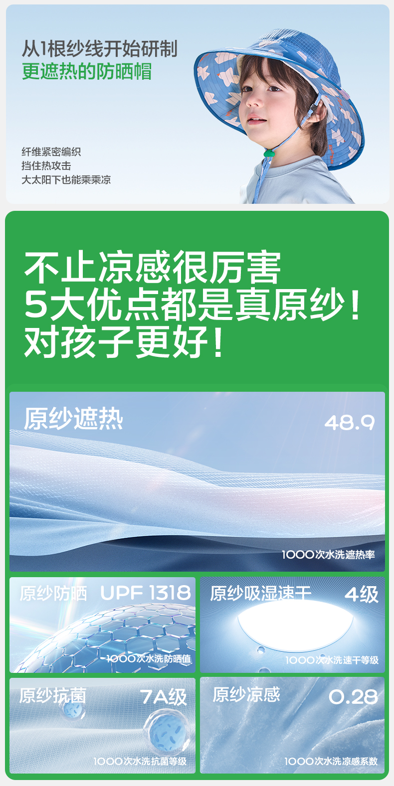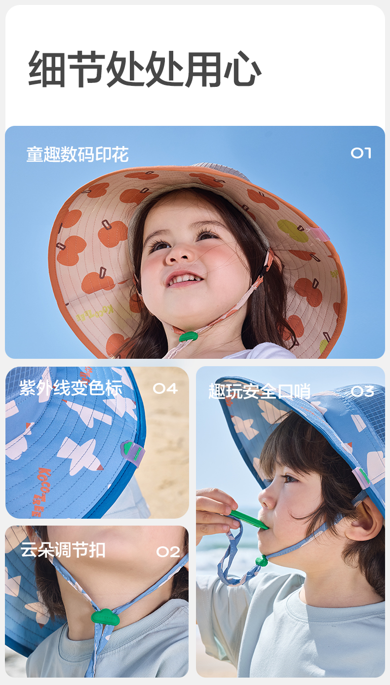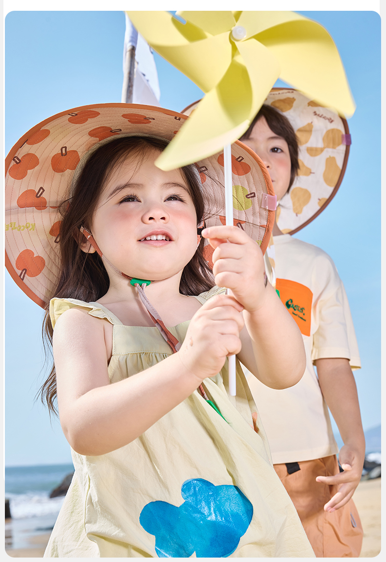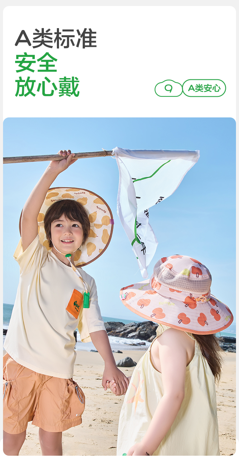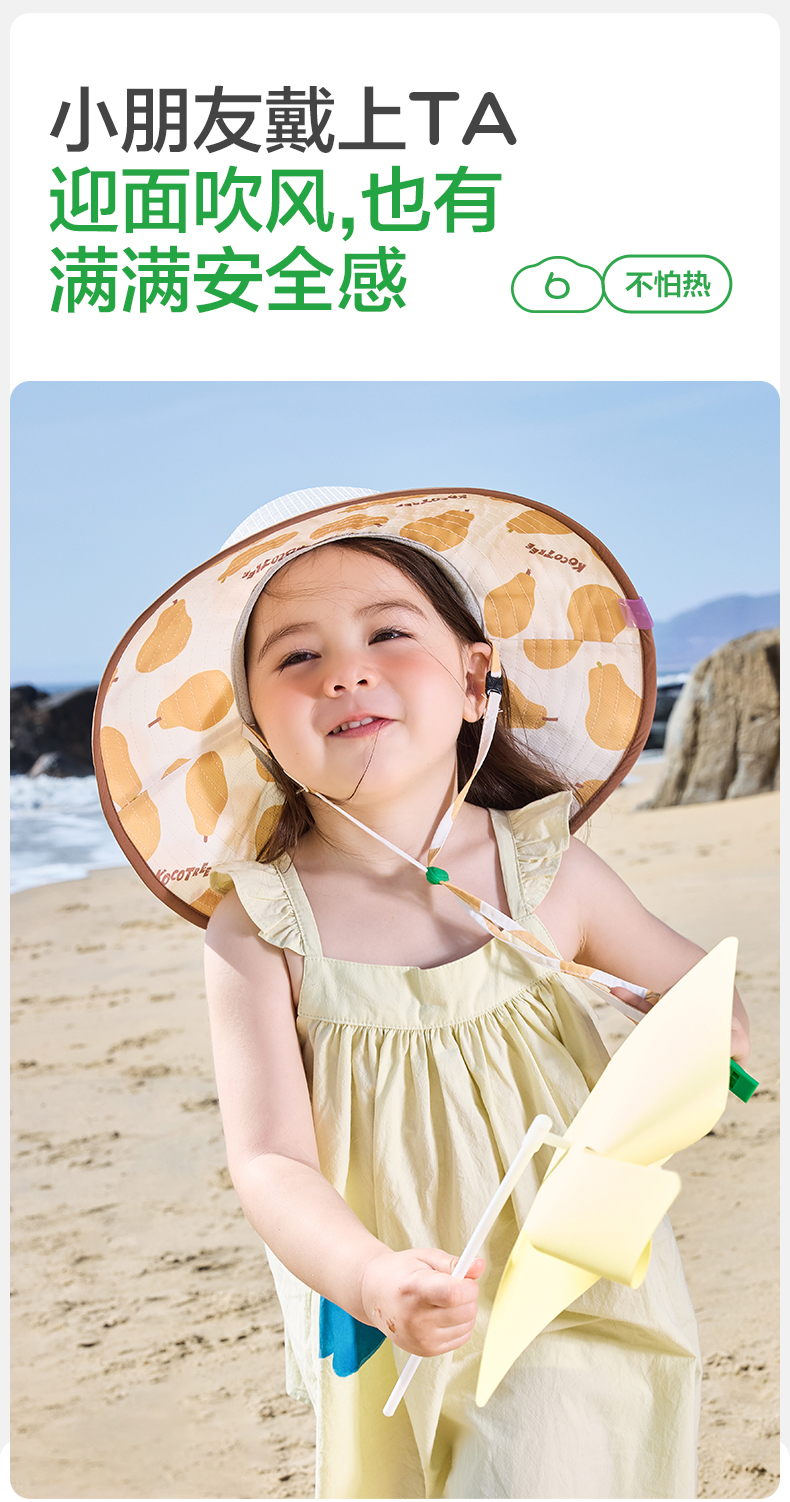 [屁侠推荐]KK树儿童防晒帽防紫外线宝宝遮阳帽夏季男童女孩渔夫帽原纱大帽檐果果岛呼吸盆帽