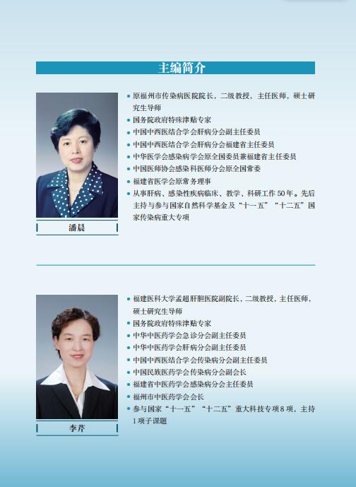 潘晨,原福州市传染病医院院长,二级教授,主任医师,硕士研究生导师。国务院政府特殊津贴专家。中国中西医结合学会肝病分会副主任委员,中国中西医结合学会肝病分会福建省主任委员,中华医学会感染病学会原全国委员兼福建省主任委员,中国医师协会感染科医师分会原全国常委,福建省医学会原常务理事,从事肝病、感染性疾病临床、教学、科研工作 50 年。先后主持与参与国家自然科学基金及“十一五”“十二五”国家传染病重大专项。