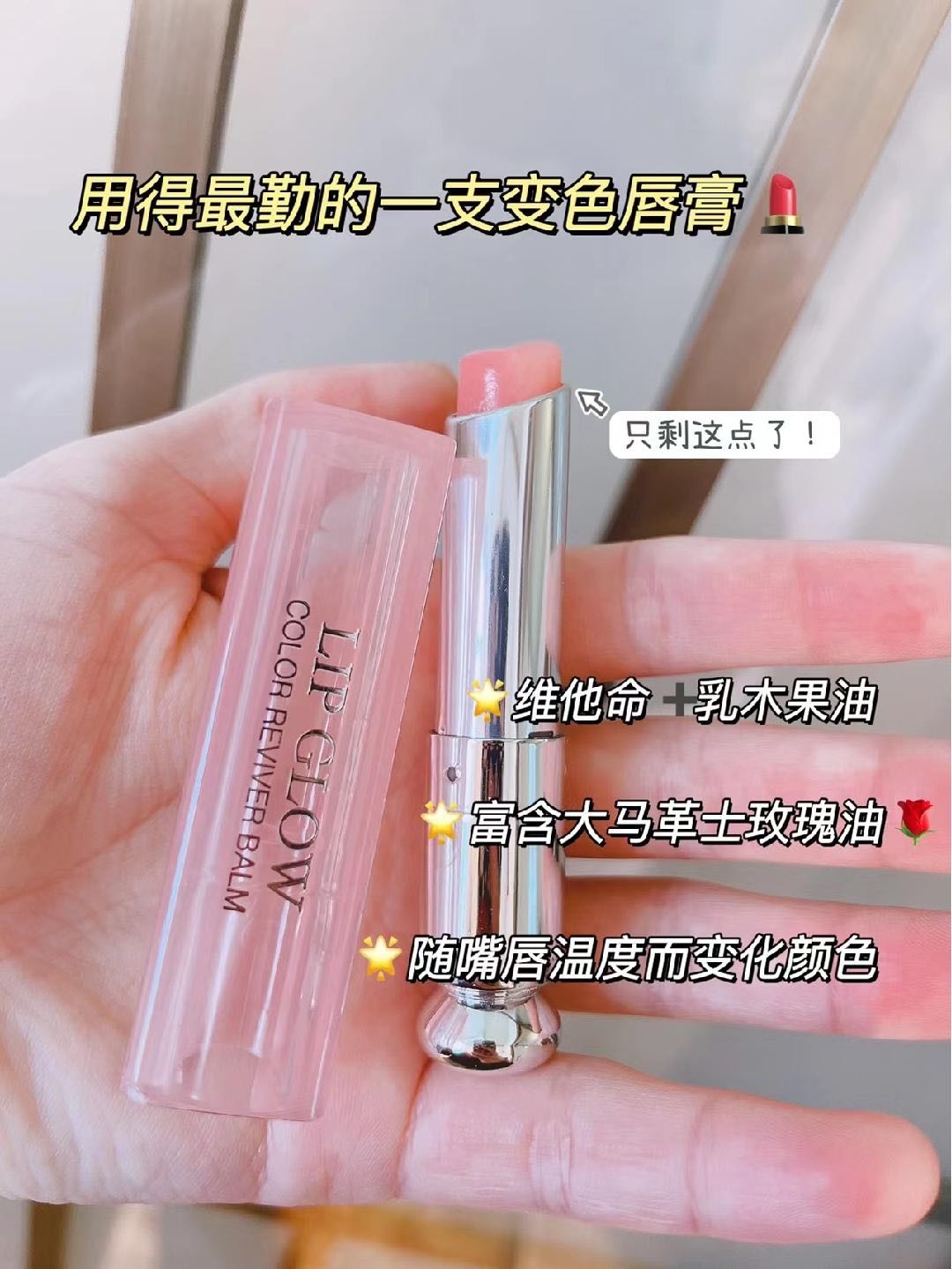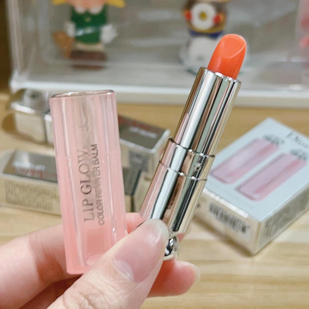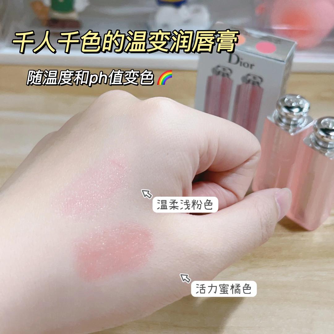 冬天超爱用的一款润唇膏!迪奥dior润唇膏,两个色系,001号粉色,004号橘色,可以当裸色口红,也可以用来打底,提升一个滋润度,根据体温而变色,可以改善唇色和唇纹!!