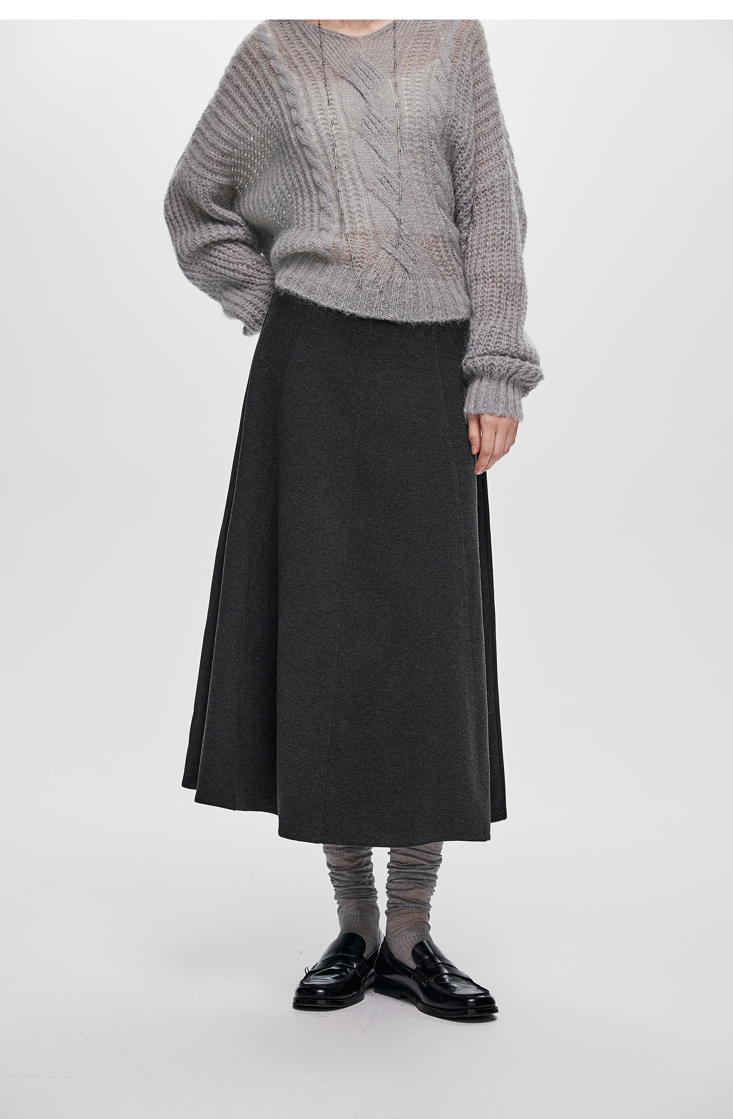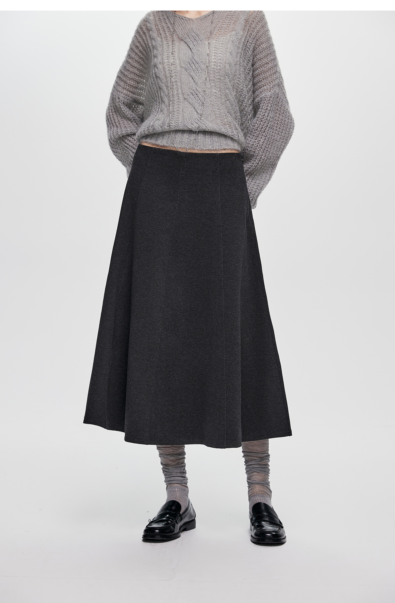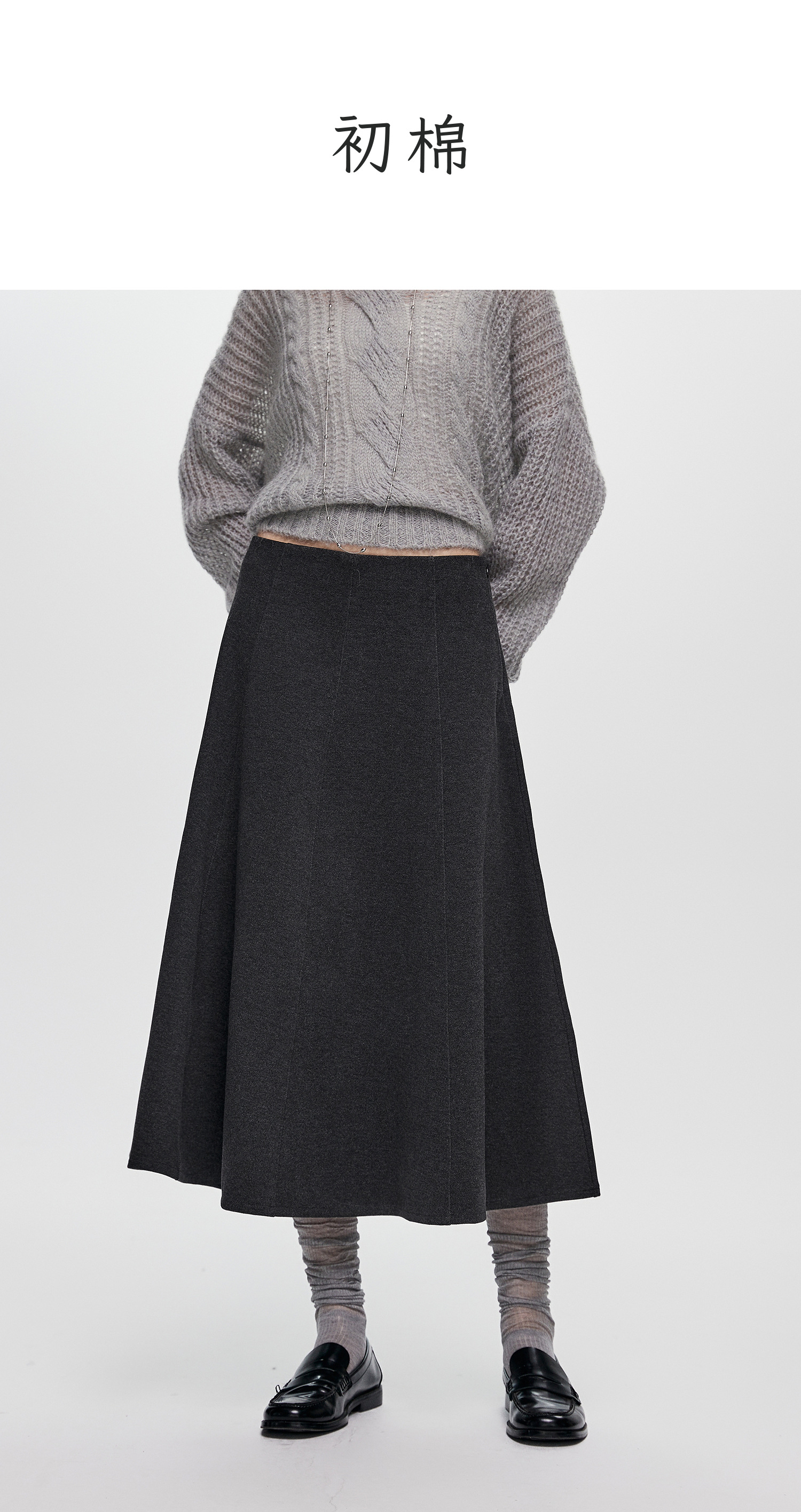 棉仓366617005-立体拼裁哑光针织A字半身裙女25秋新品促垂坠感微弹显瘦半裙
