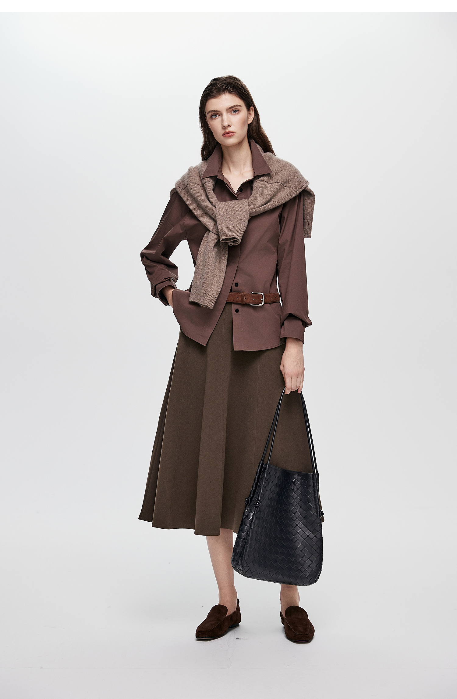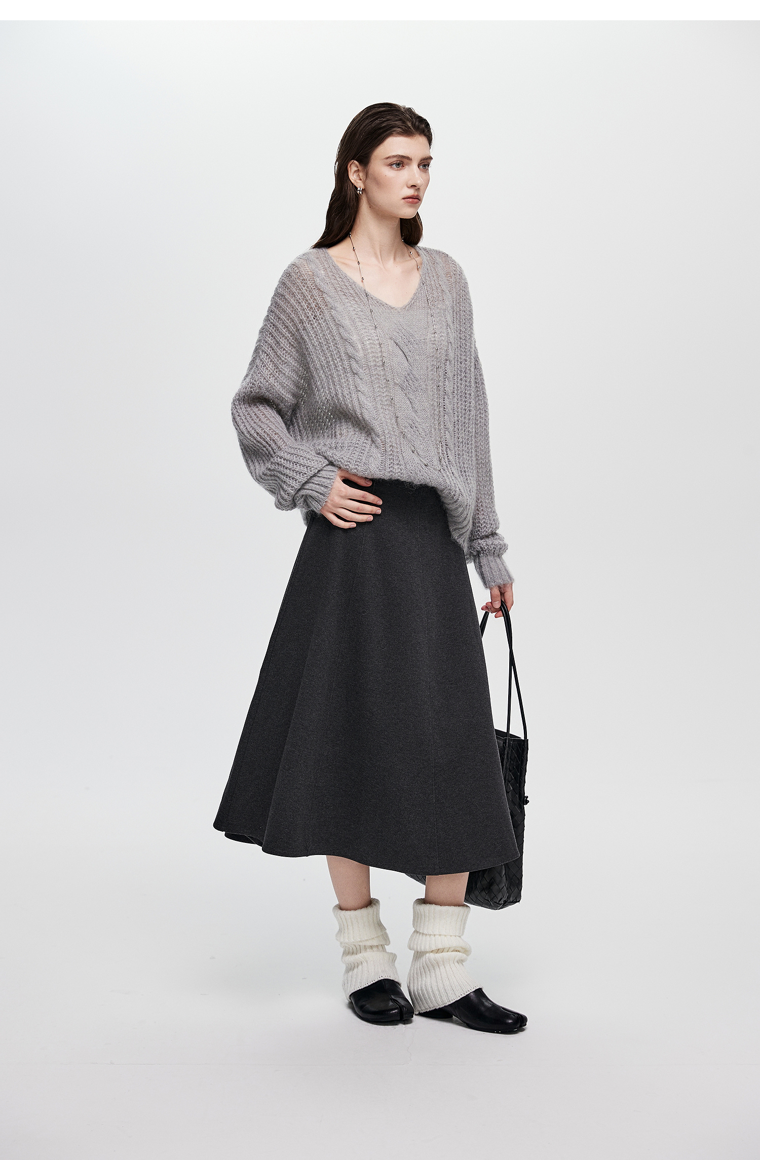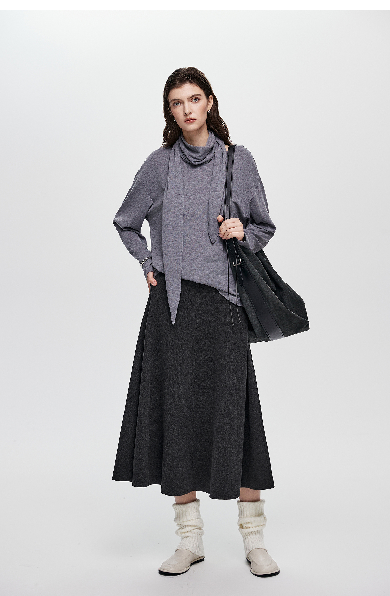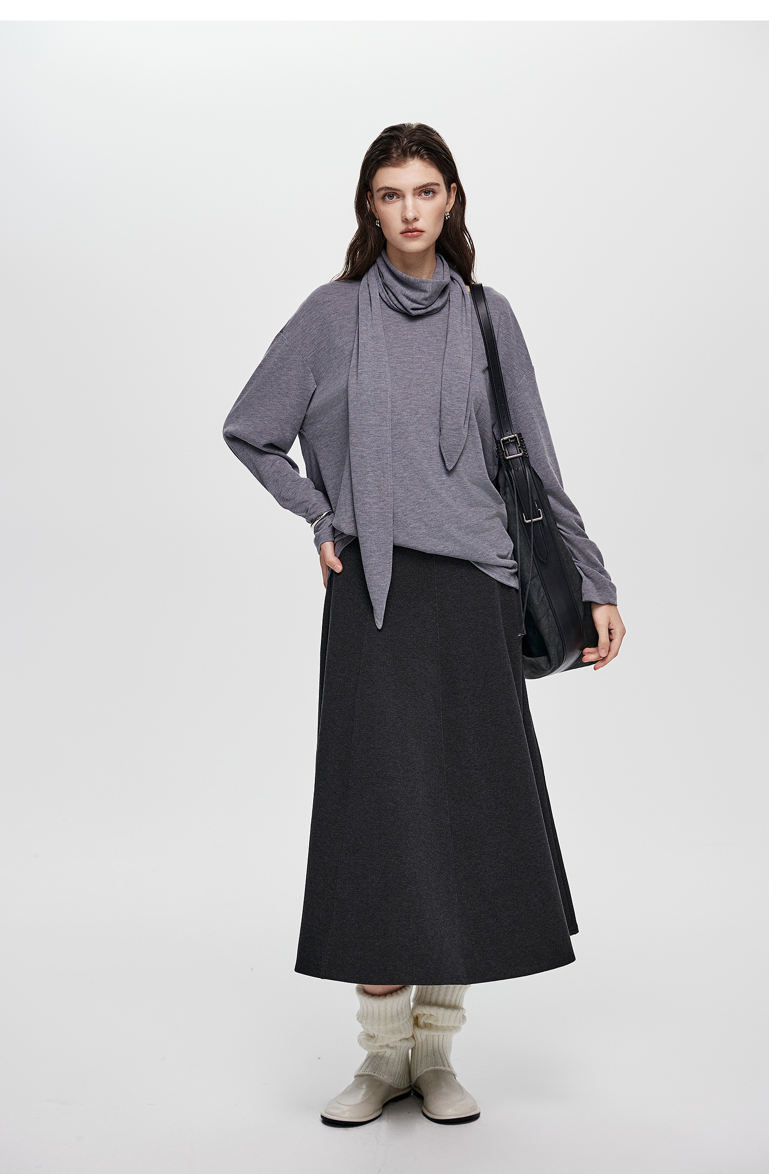 棉仓366617005-立体拼裁哑光针织A字半身裙女25秋新品促垂坠感微弹显瘦半裙