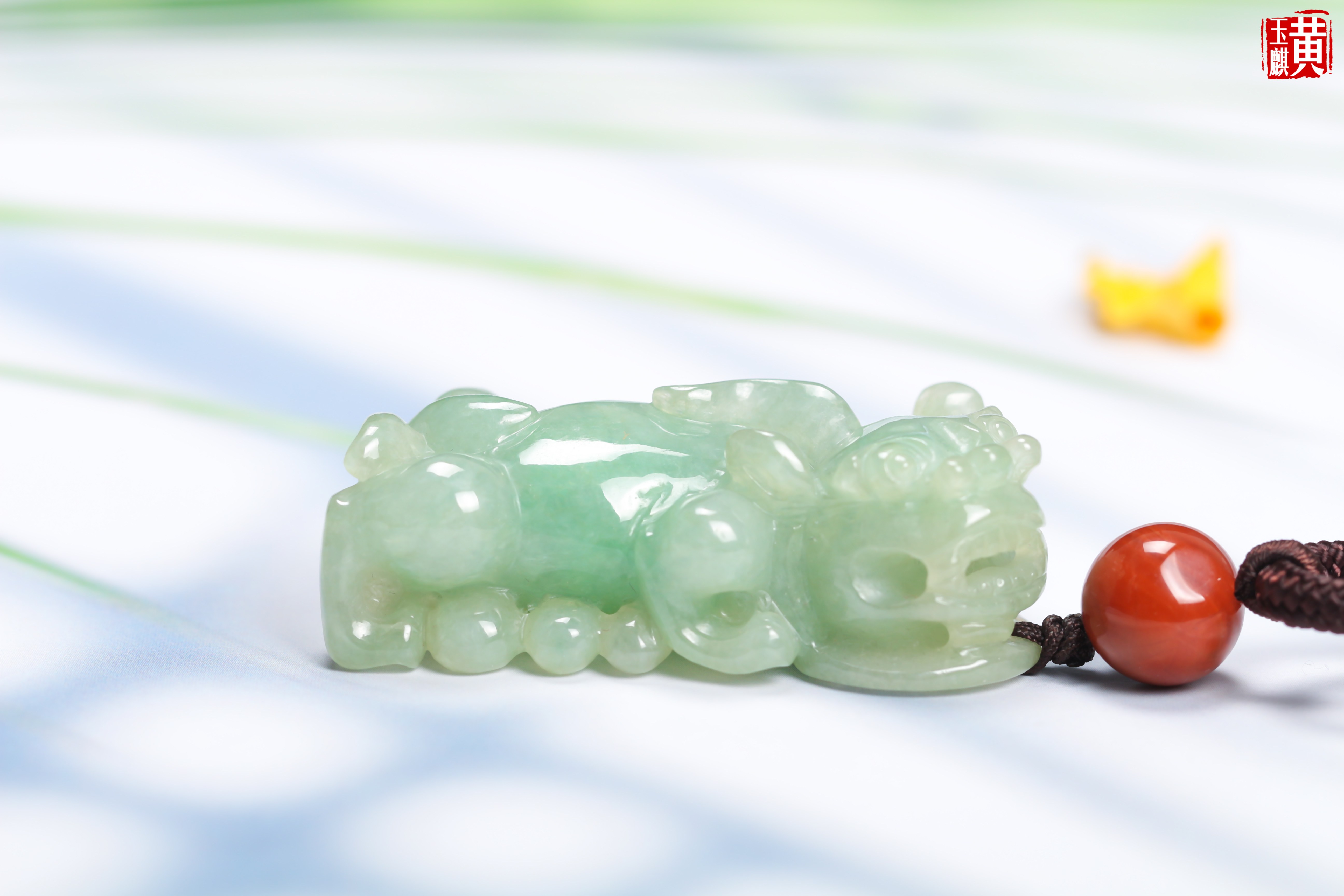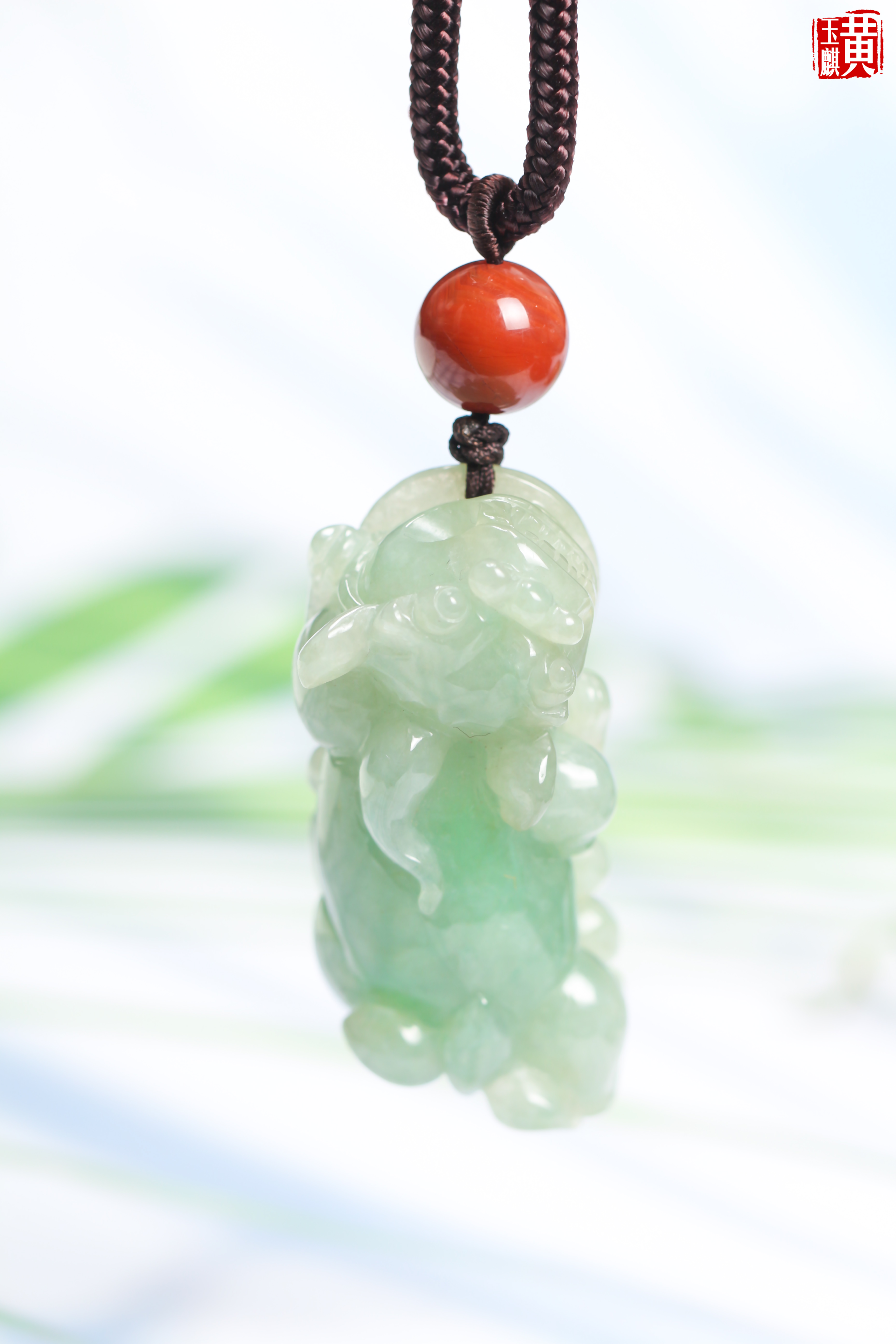天然翡翠【貔貅】吊坠 配编织挂绳