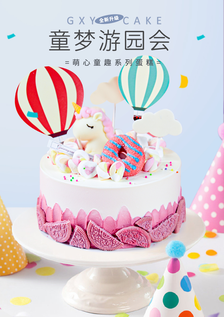 【童梦游园会】 新款趣味生日蛋糕—纯乳脂与牛奶奶油混合,夹层口味升级,细腻香甜