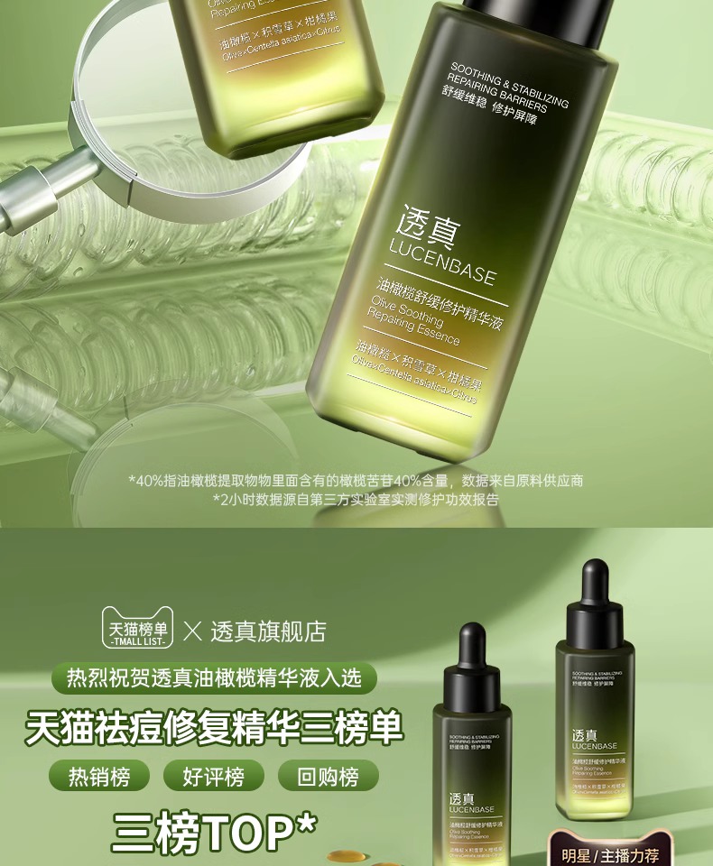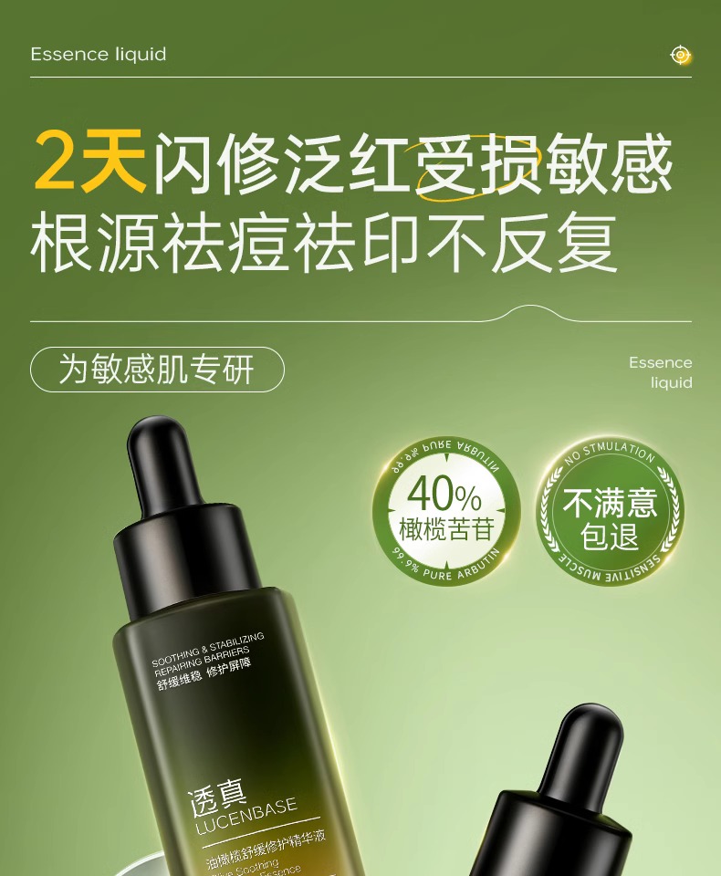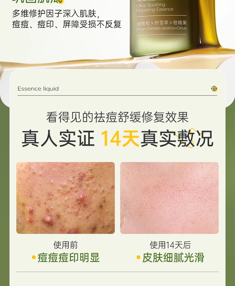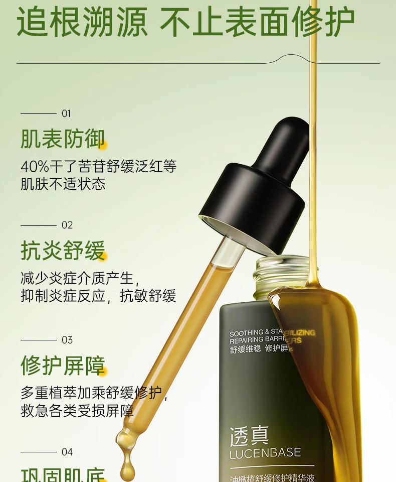 【烂脸救星 舒缓褪红修复】油橄榄舒缓修护精华液 30g(四方滴管瓶)#油橄榄精华液紧致抗皱面部补水祛痘舒缓修复褪红