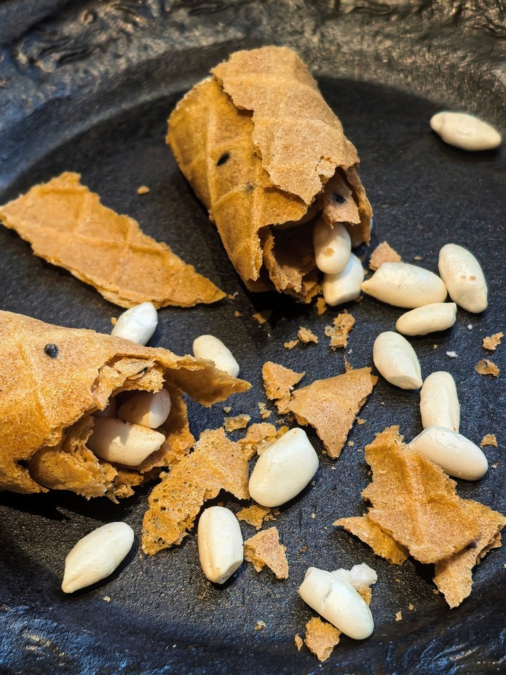 每一根蛋卷还都是拥有十几年经验的老师傅手作哦,面糊的比例、铁板的温度、烘烤的时长,甚至卷制的力度,全靠经验精准拿捏,多一秒容易烤焦,少一秒又不够酥脆,正是这份手工慢烤的执着,才造就了蛋卷“一咬就碎”的绝佳口感!