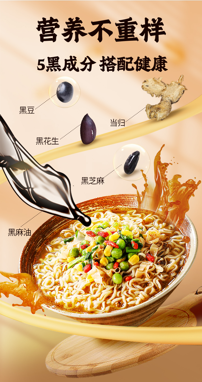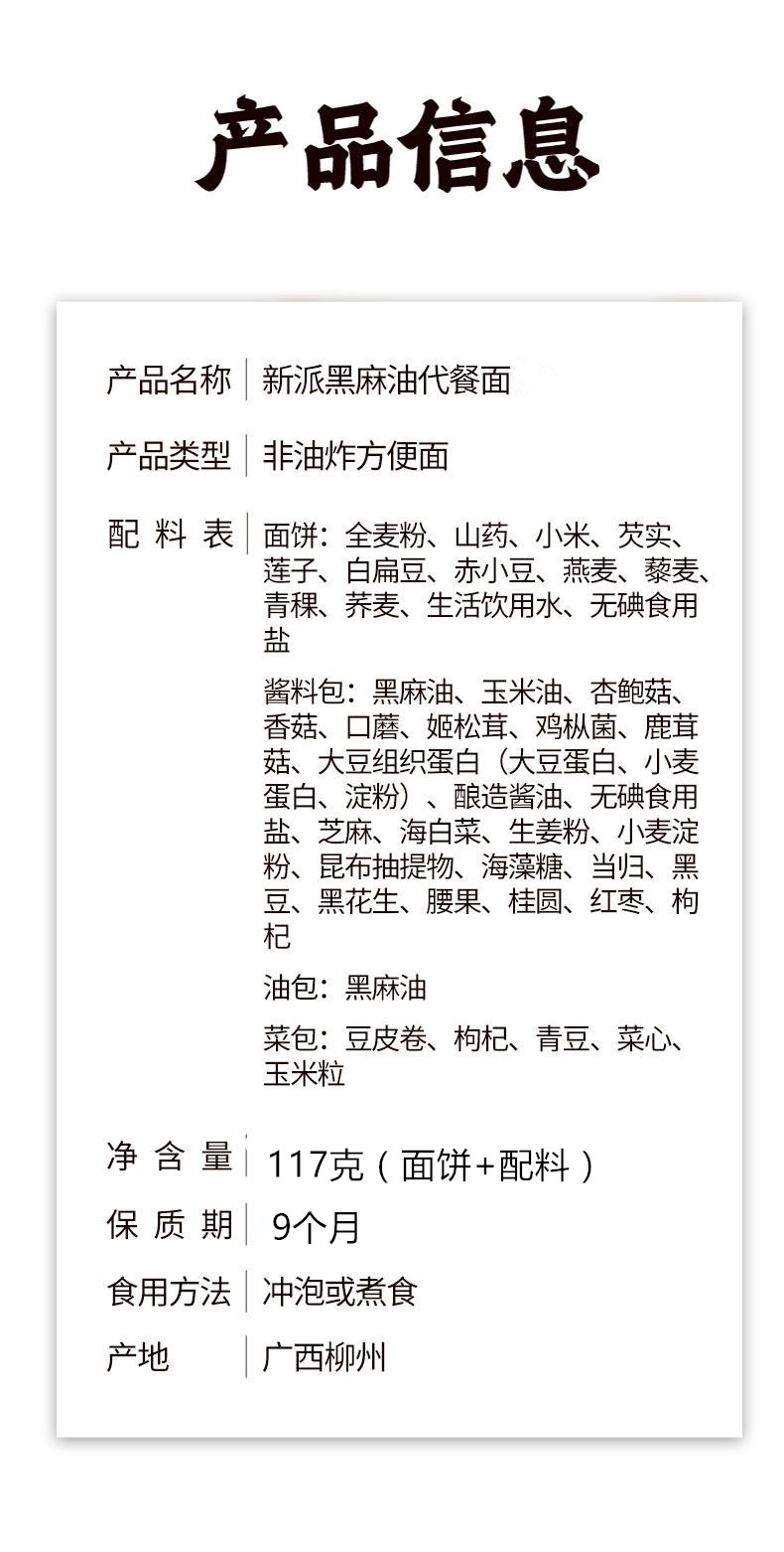 黑麻油当归代餐面 素食方便面非油炸 净素配方 冲泡速食