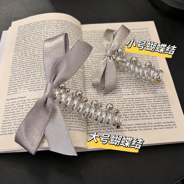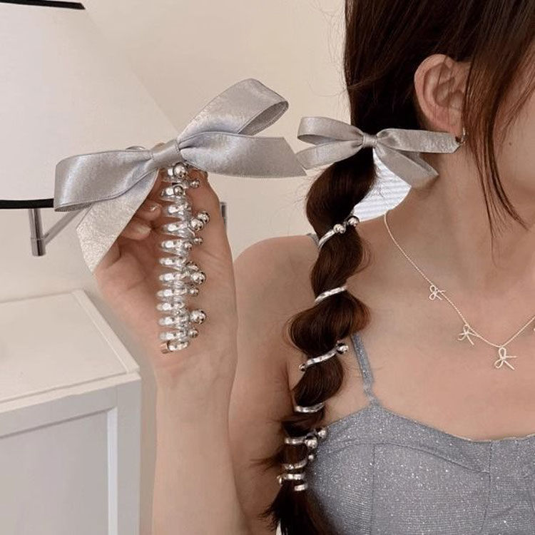 银光闪闪新款升级银灰色织带蝴蝶结珠珠电话线发绳爆款时尚气质