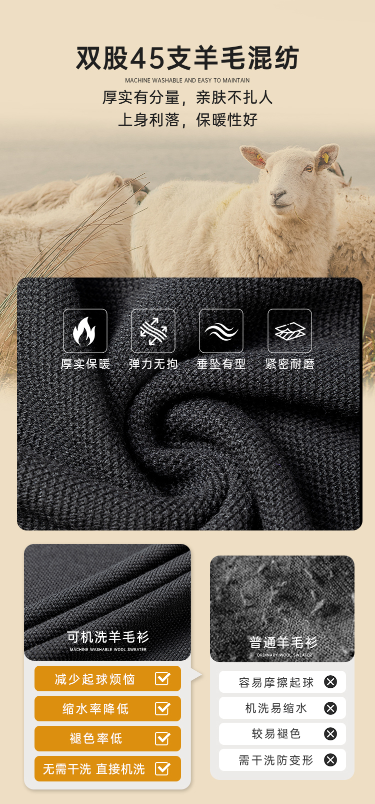 【可机洗双股保暖polo领毛衣】含绵羊毛保暖毛衫通勤休闲打底衫MT502