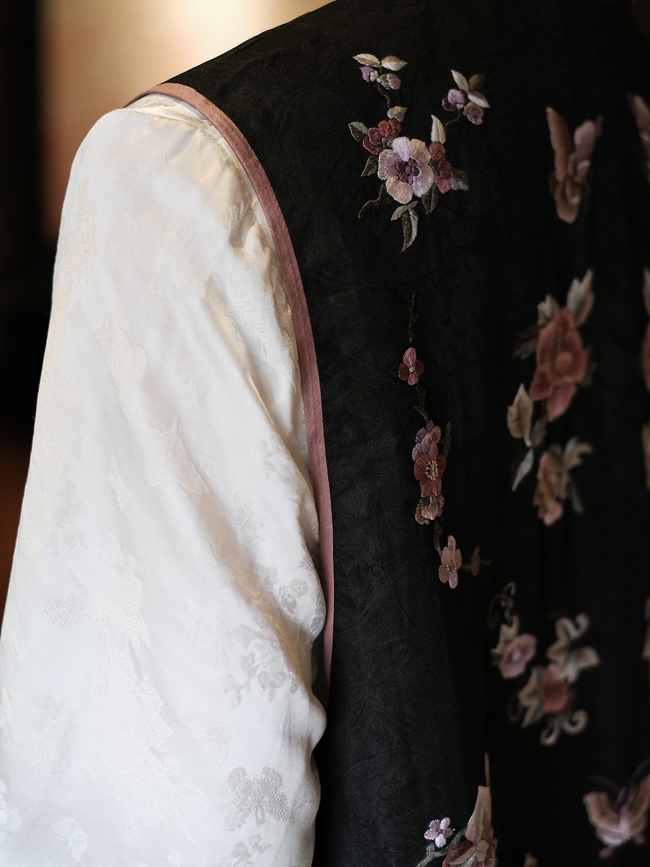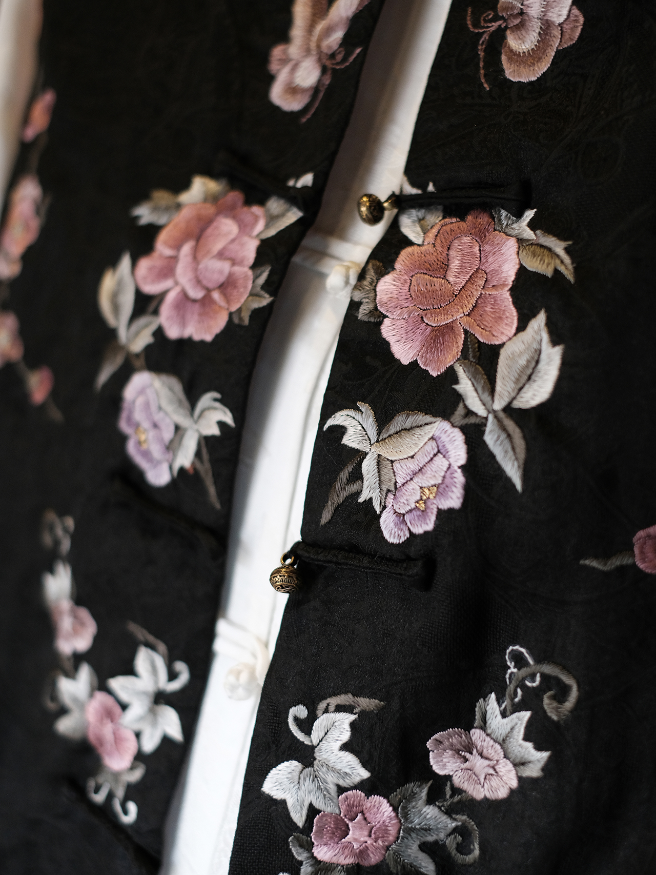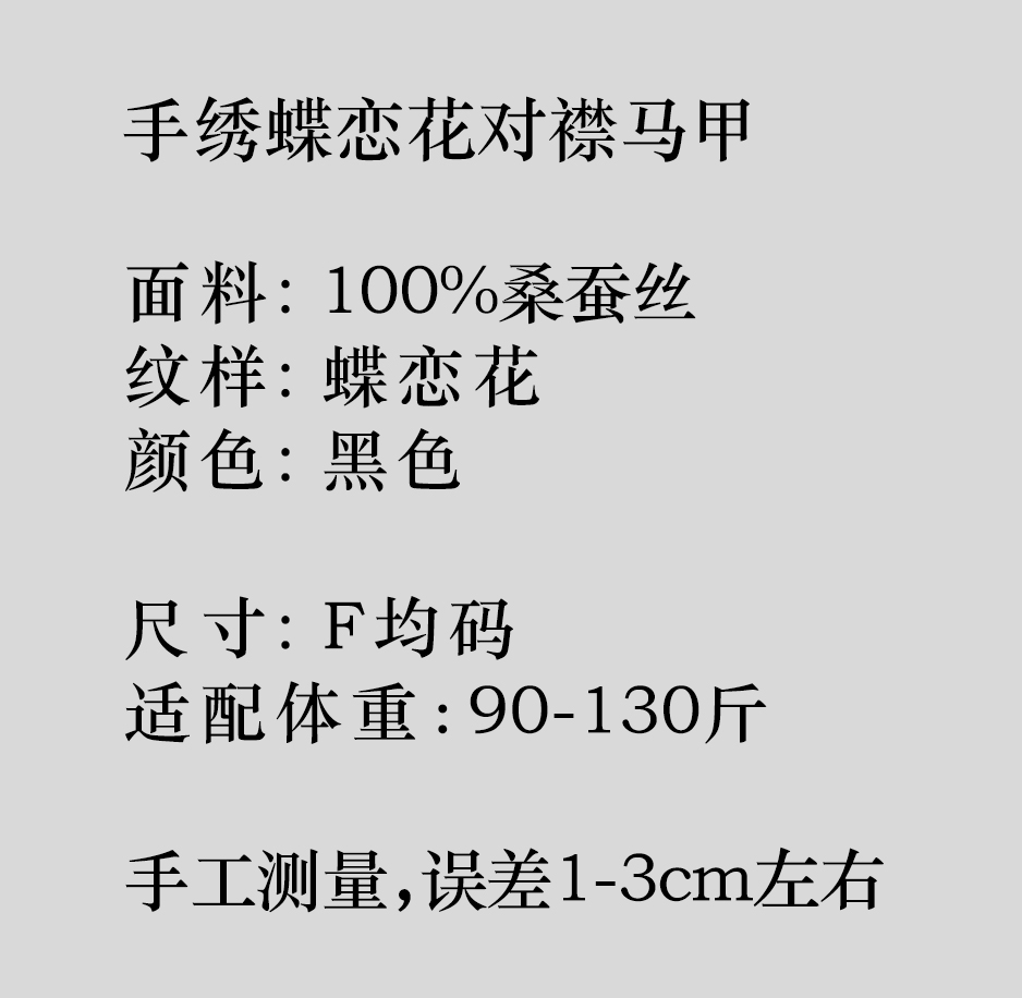 盛唐牡丹盛奢系列| 限量款| 高货-手绣蝶恋花对襟马甲-黑色(特殊商品不退不换)