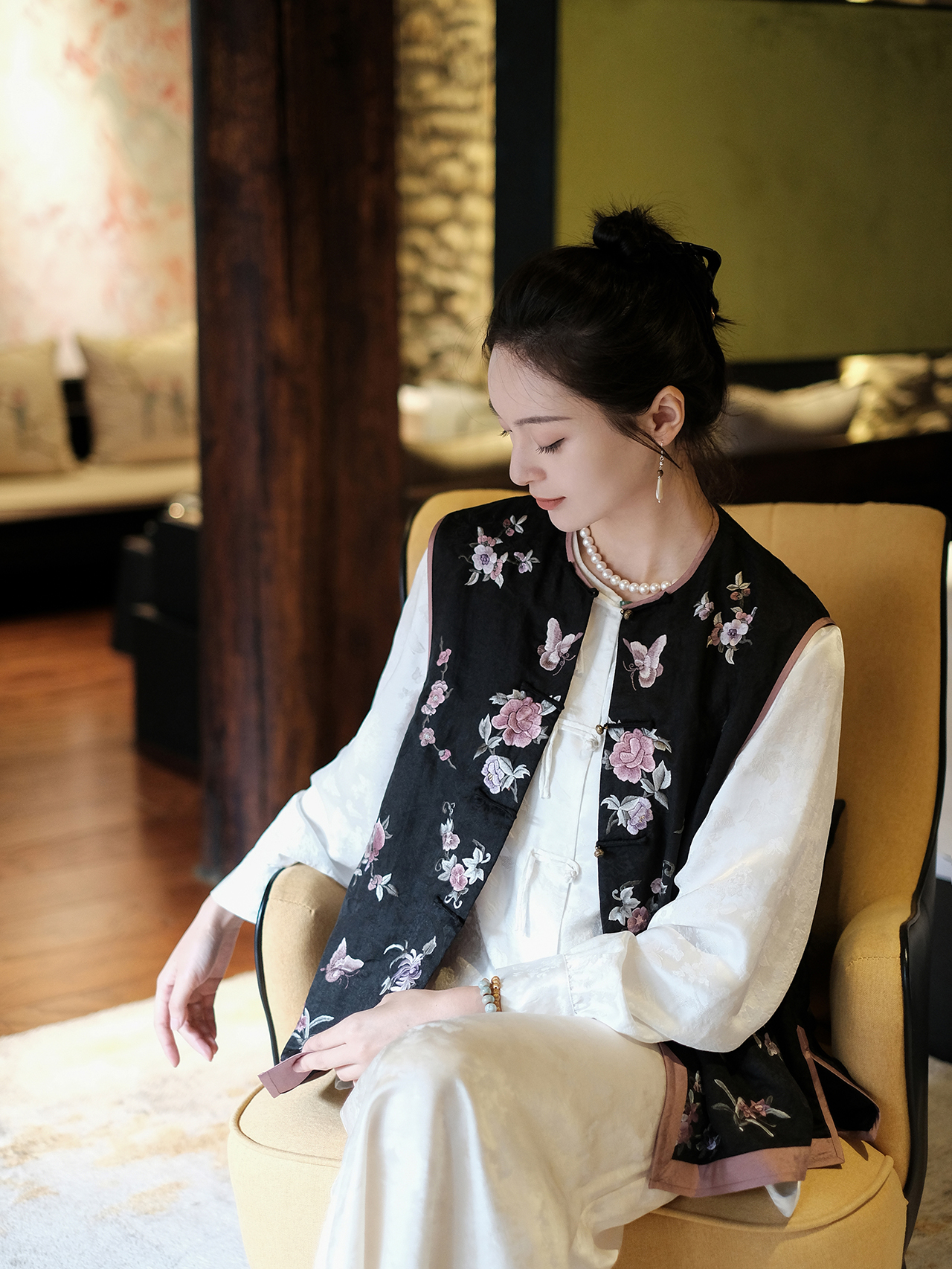 盛唐婧 |新中式真丝丝绒上衣