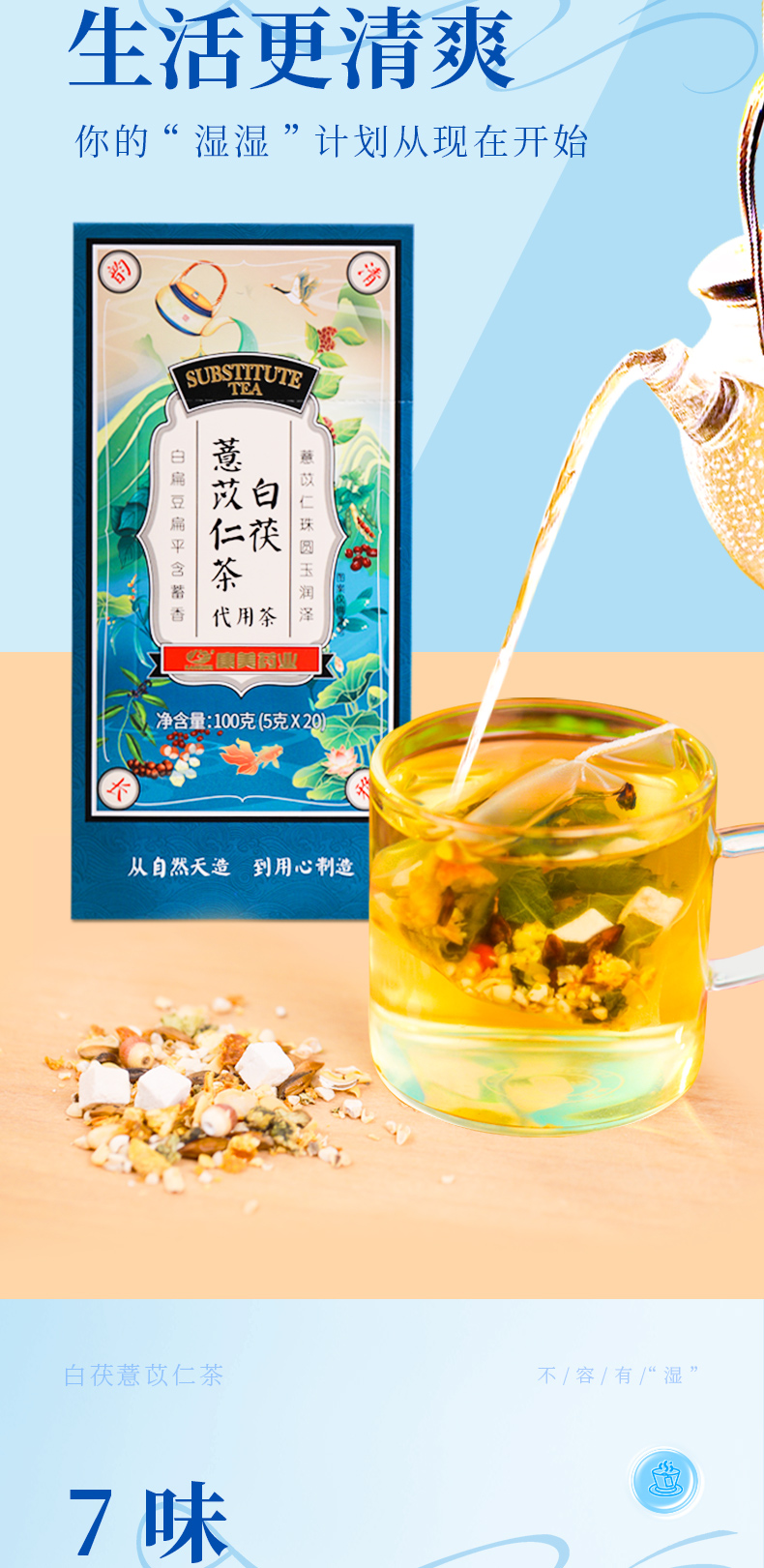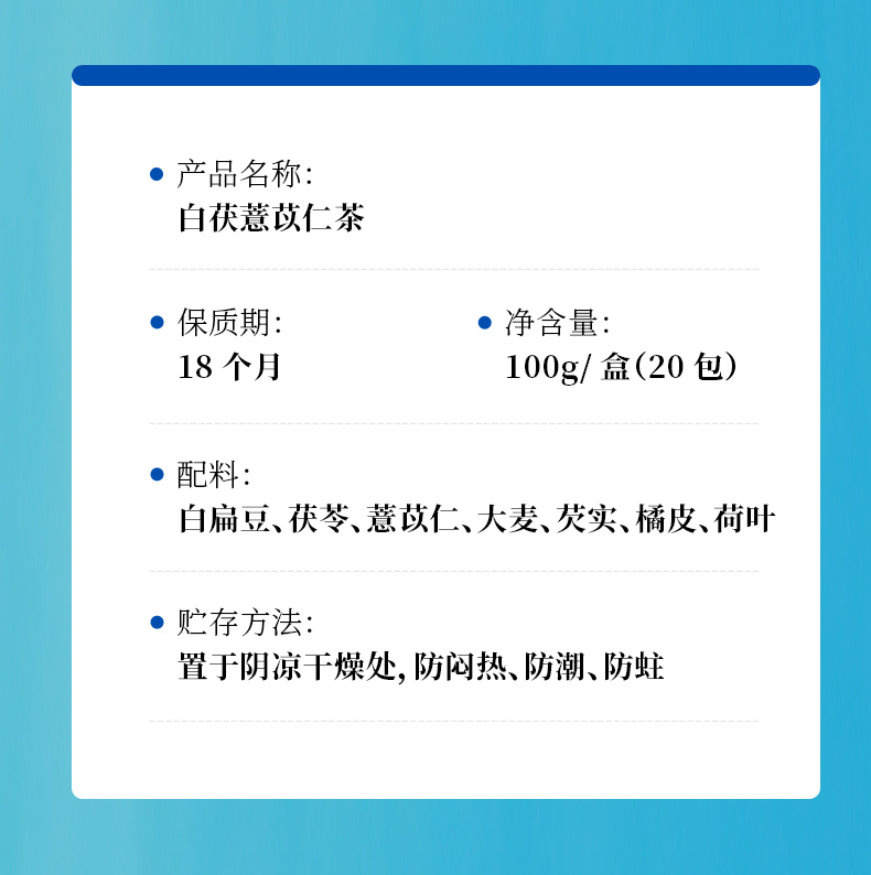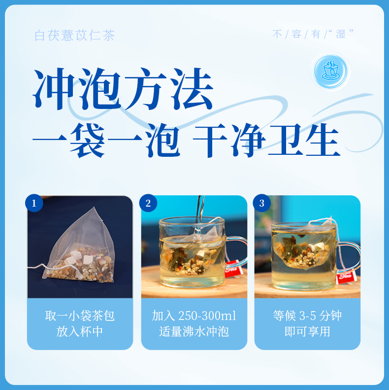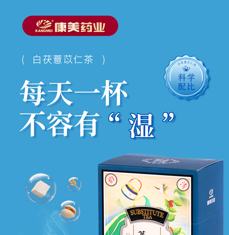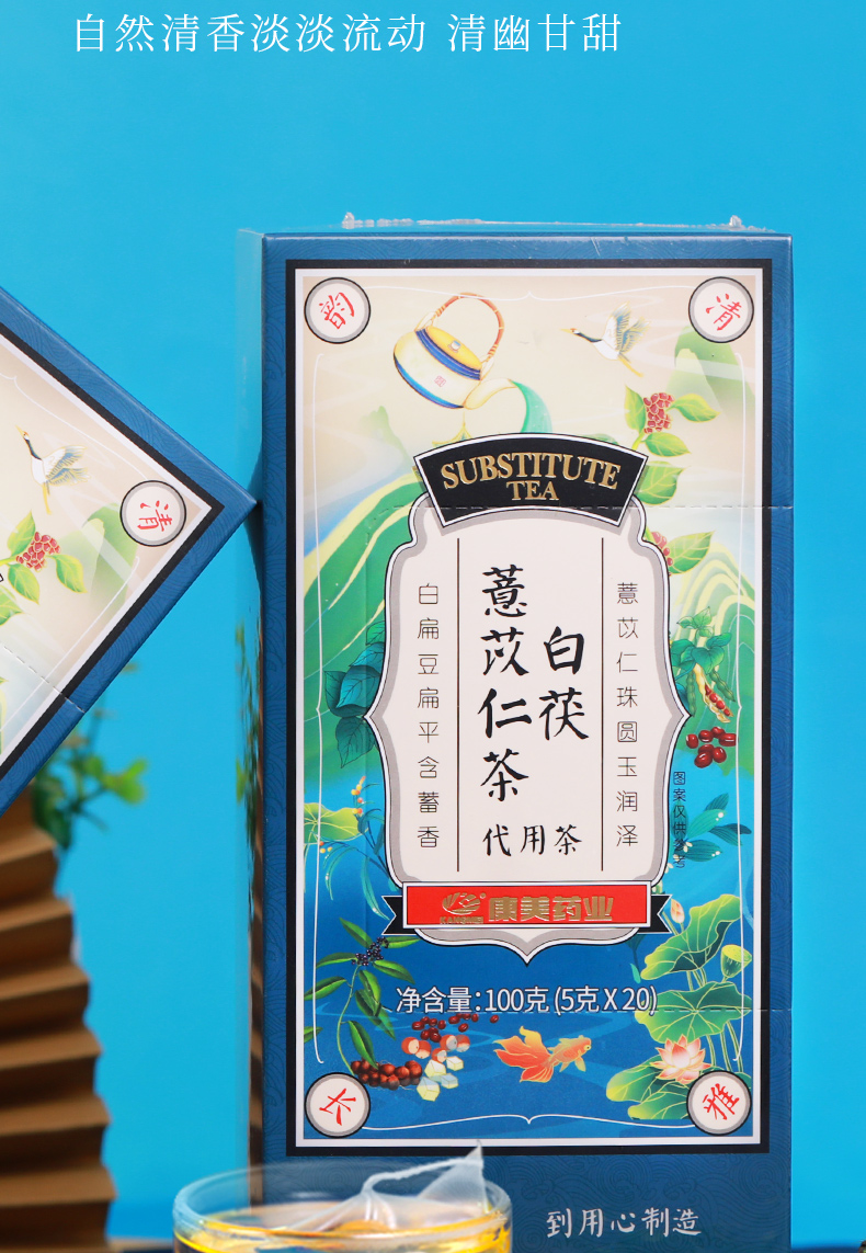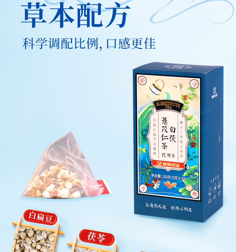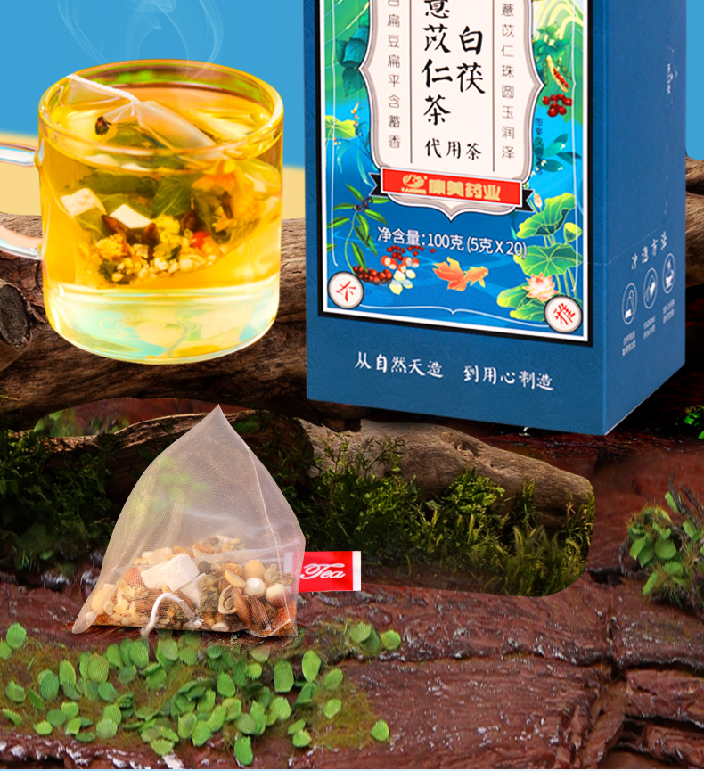 康美白茯薏苡仁茶5g*20袋/盒 养生茶饮代泡茶
