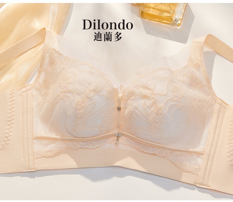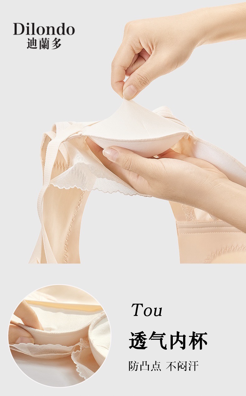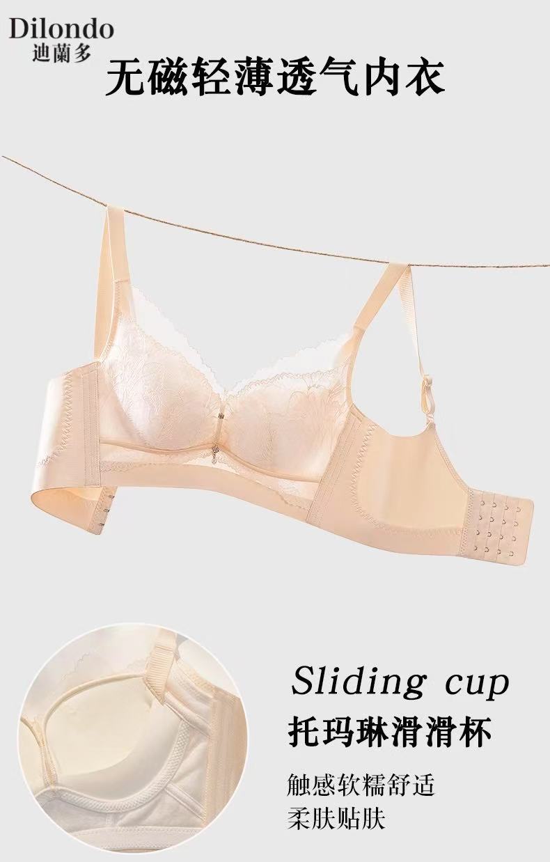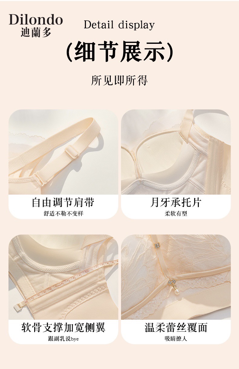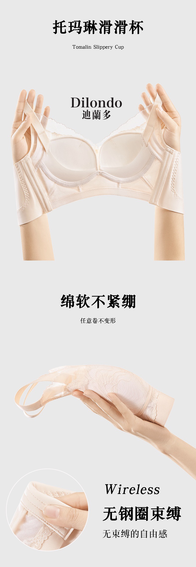 迪兰多夏季新款小胸中厚杯舒适无钢圈无磁内衣滑滑杯聚拢收副乳调整文胸2118453