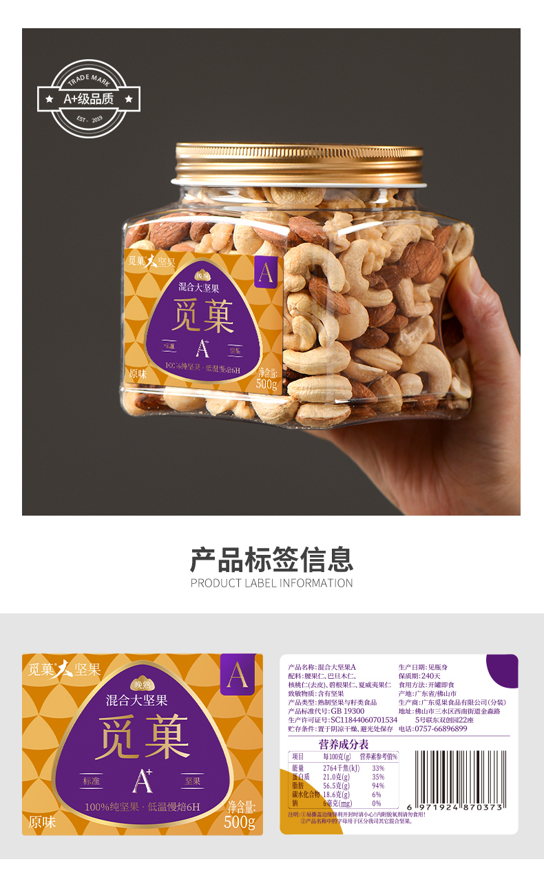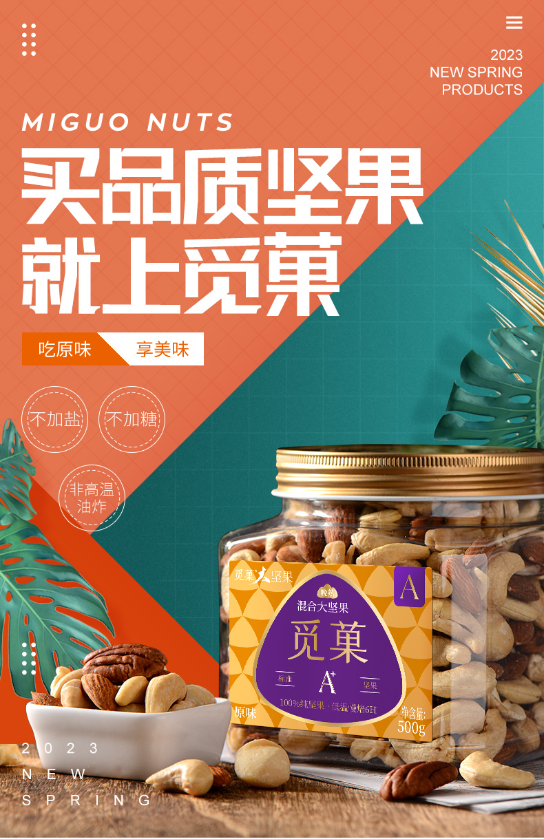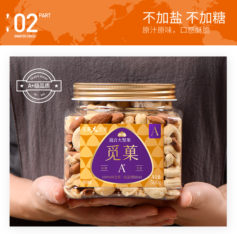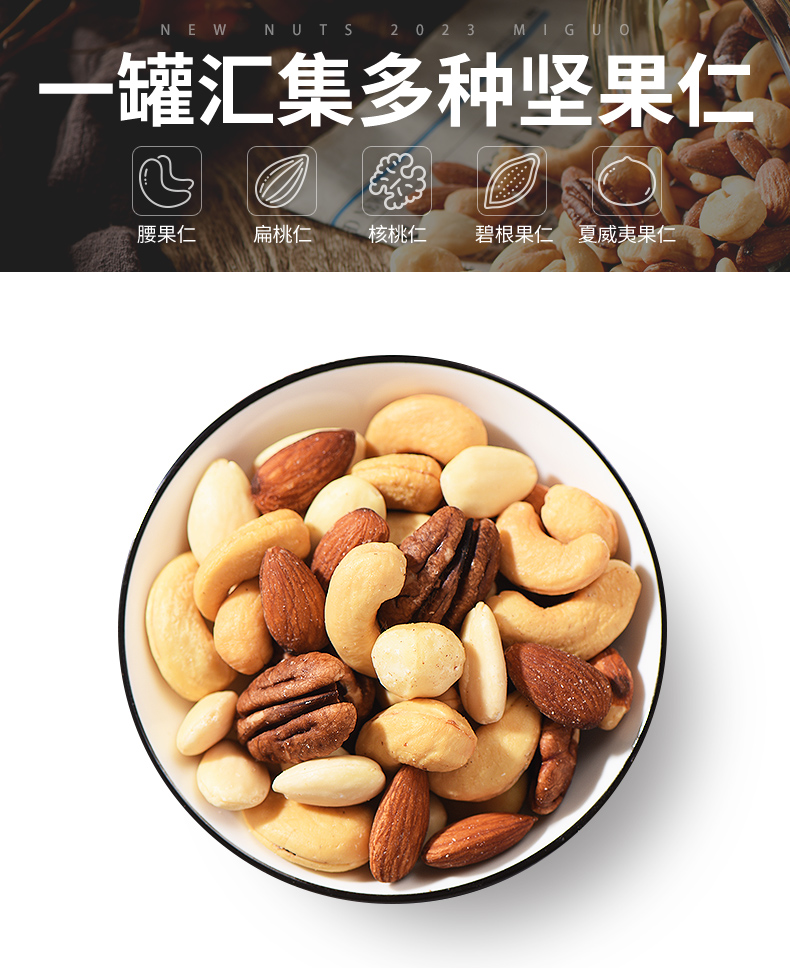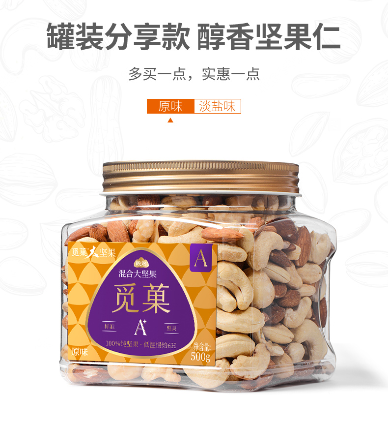 觅菓大坚果品质原味混合坚果孕期学生健身每日坚果罐装纯果仁干果